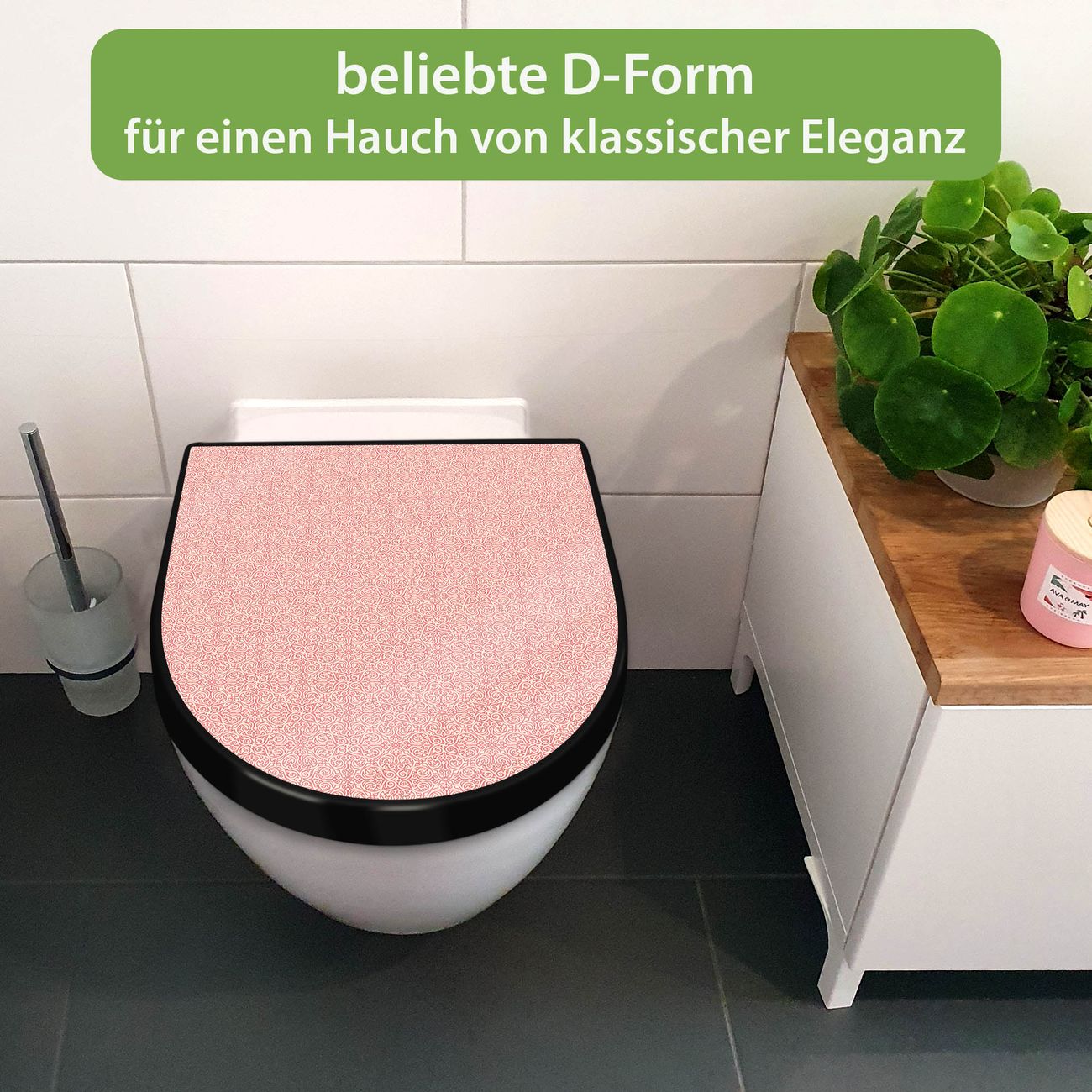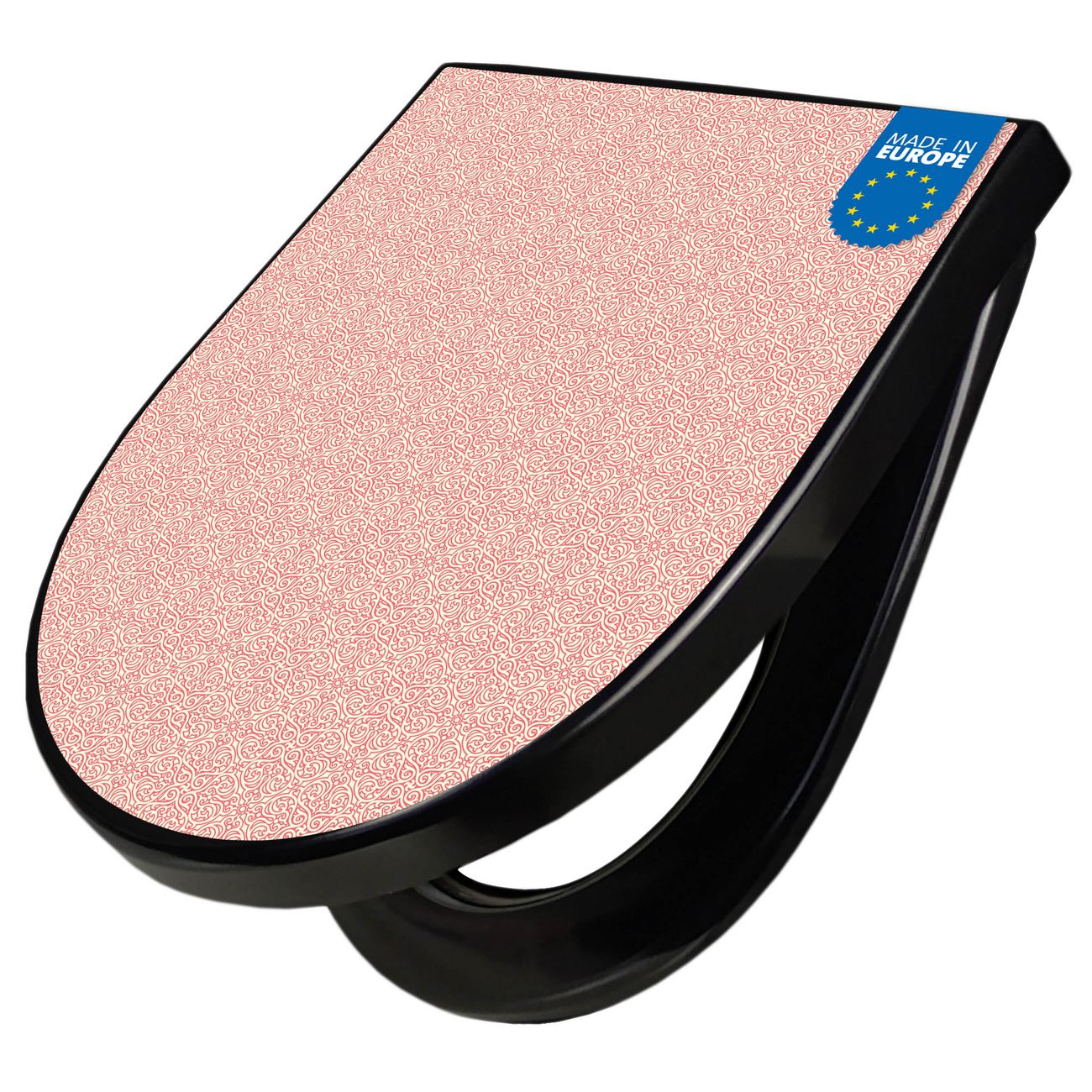WC Sitz D-Form Schwarz mit Absenkautomatik Motiv Rosa Arabesque