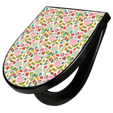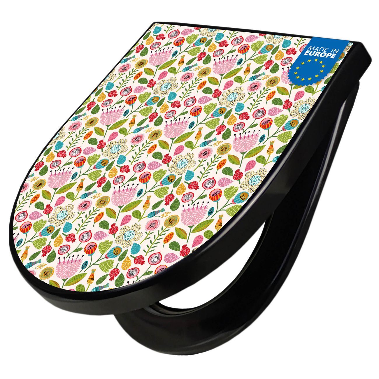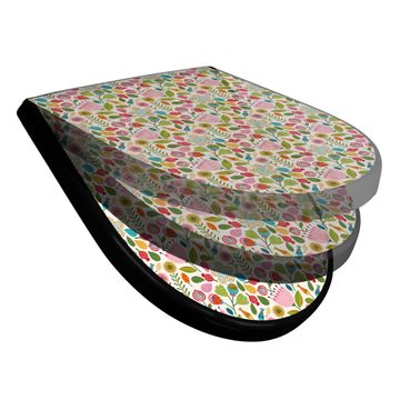 WC Sitz D-Form Schwarz mit Absenkautomatik Motiv Rosa Kelch Hell