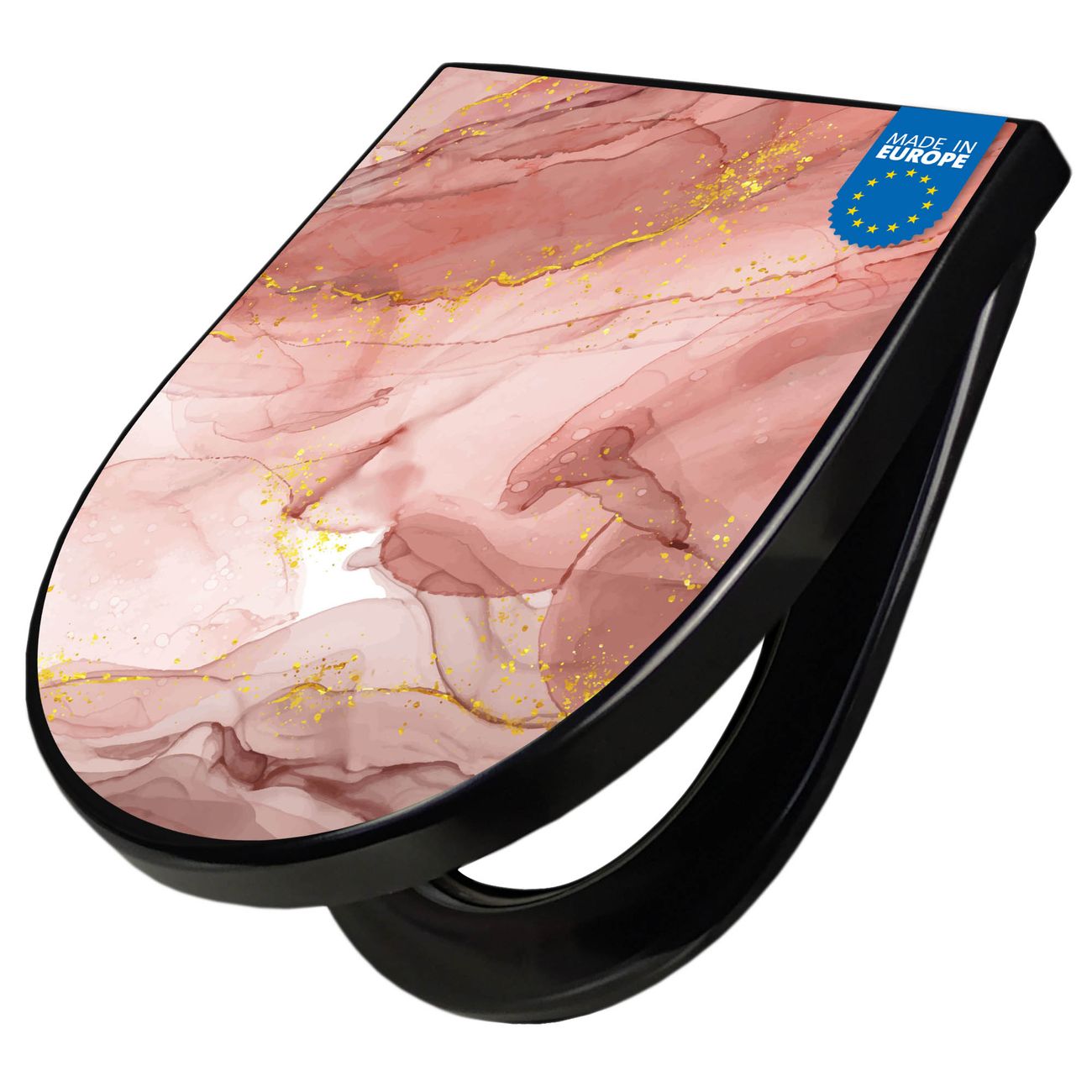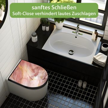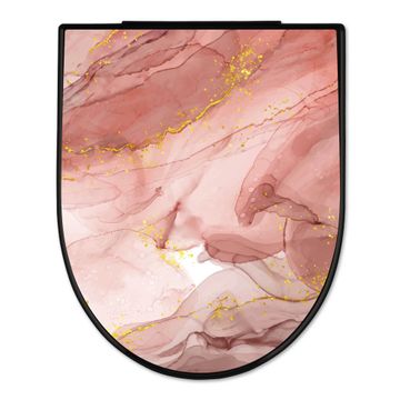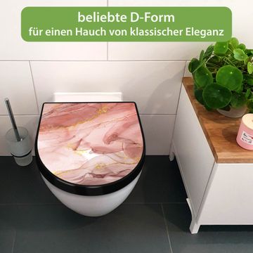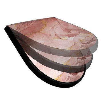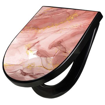 WC Sitz D-Form Schwarz mit Absenkautomatik Motiv Rosa Marmor mit Gold 1