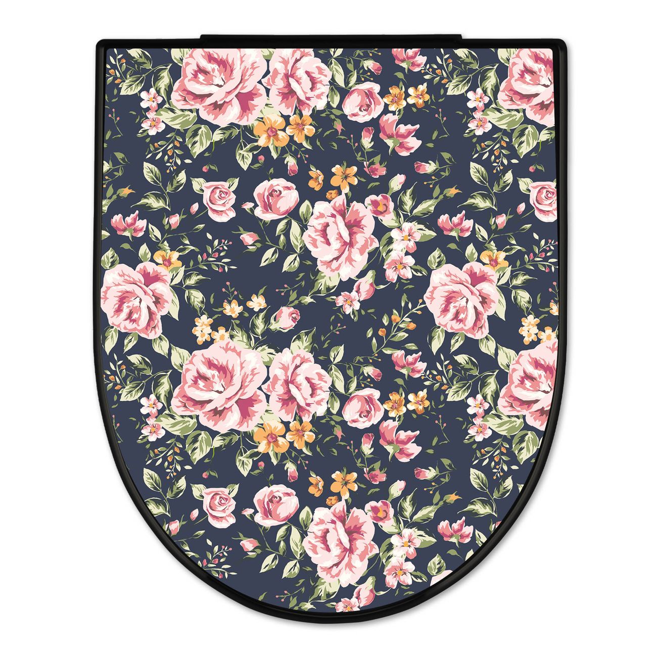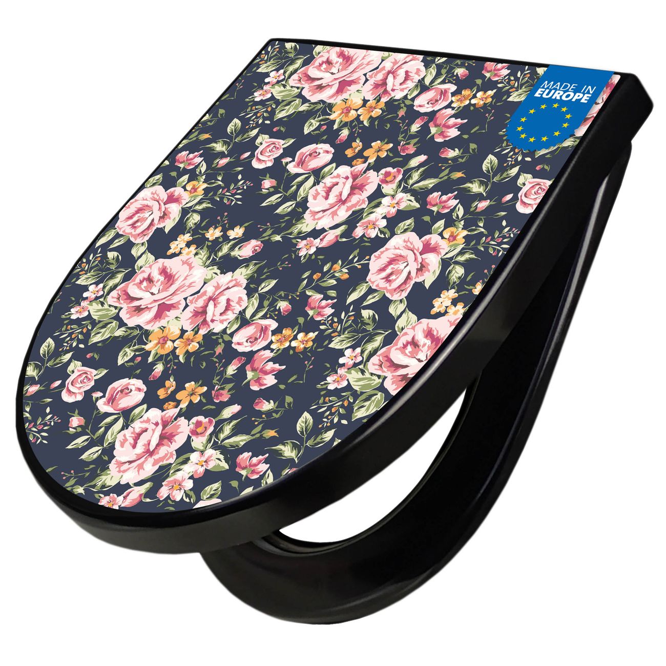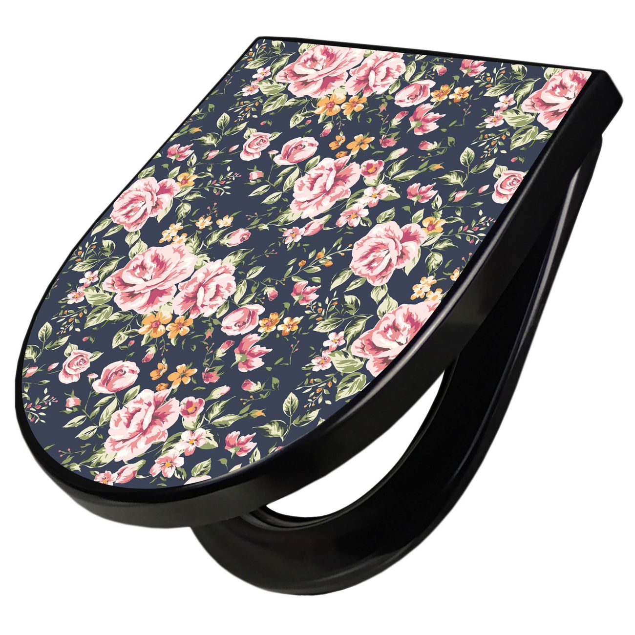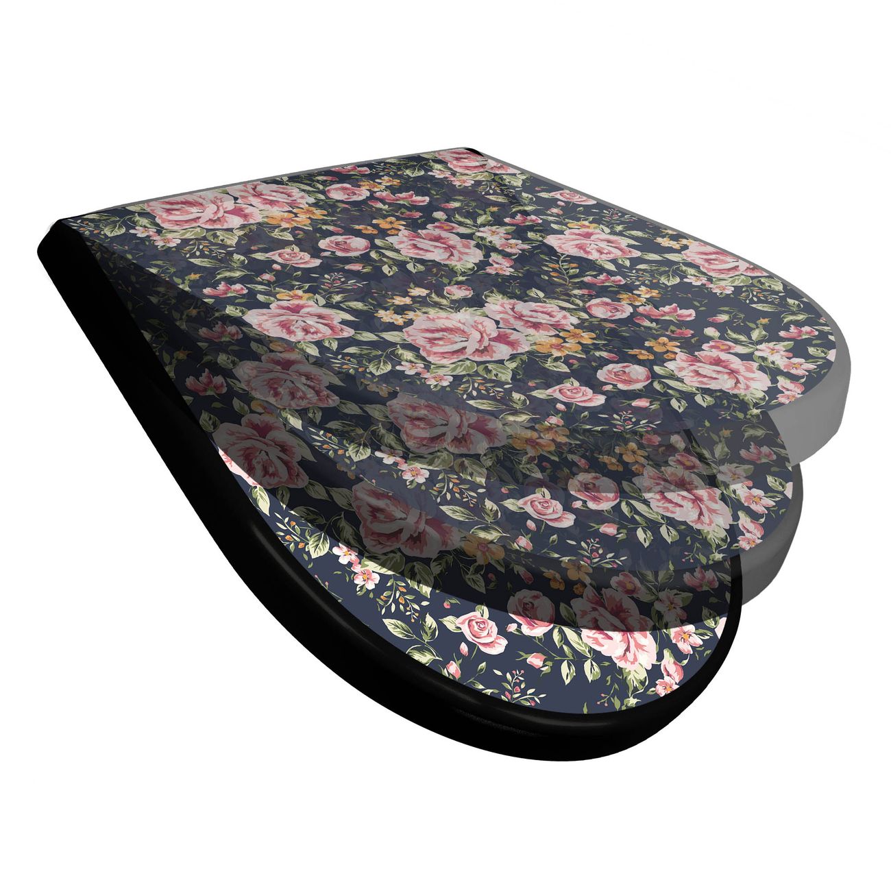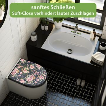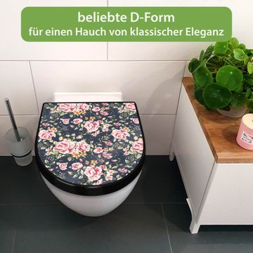 WC Sitz D-Form Schwarz mit Absenkautomatik Motiv Rosen Auf Anthrazit