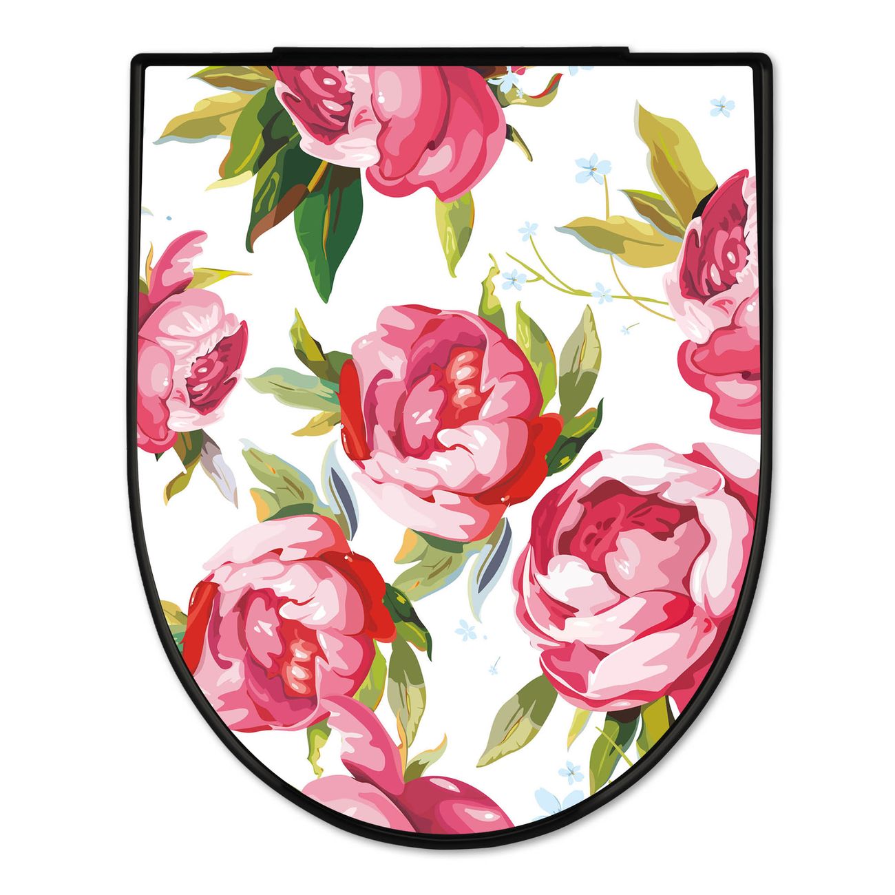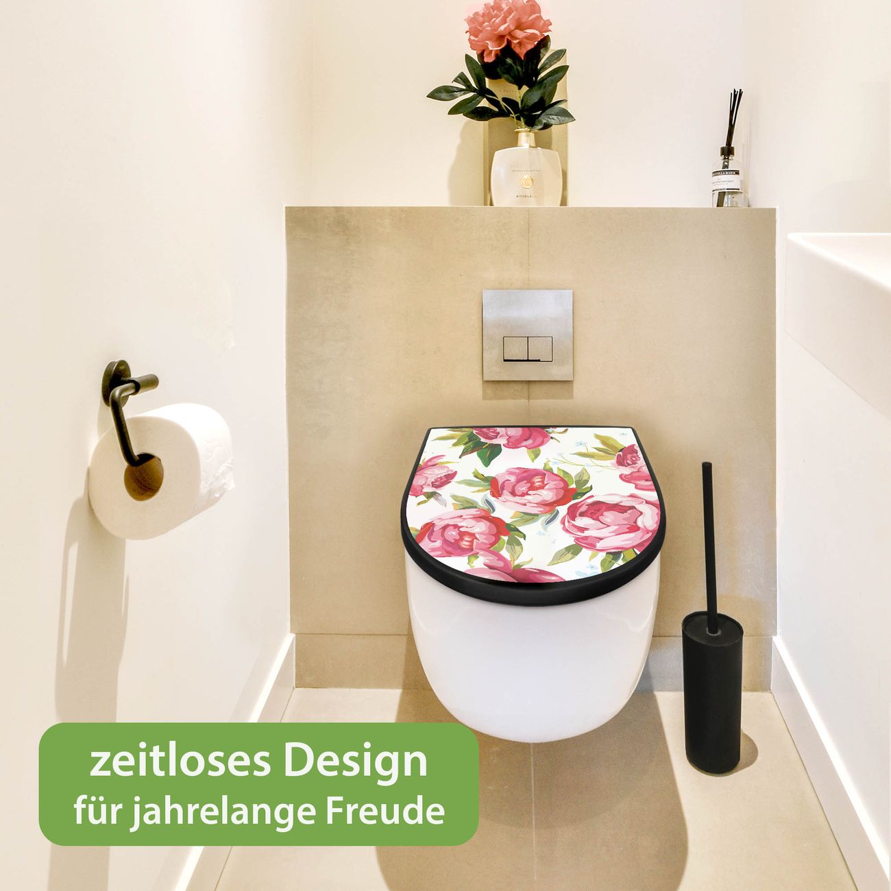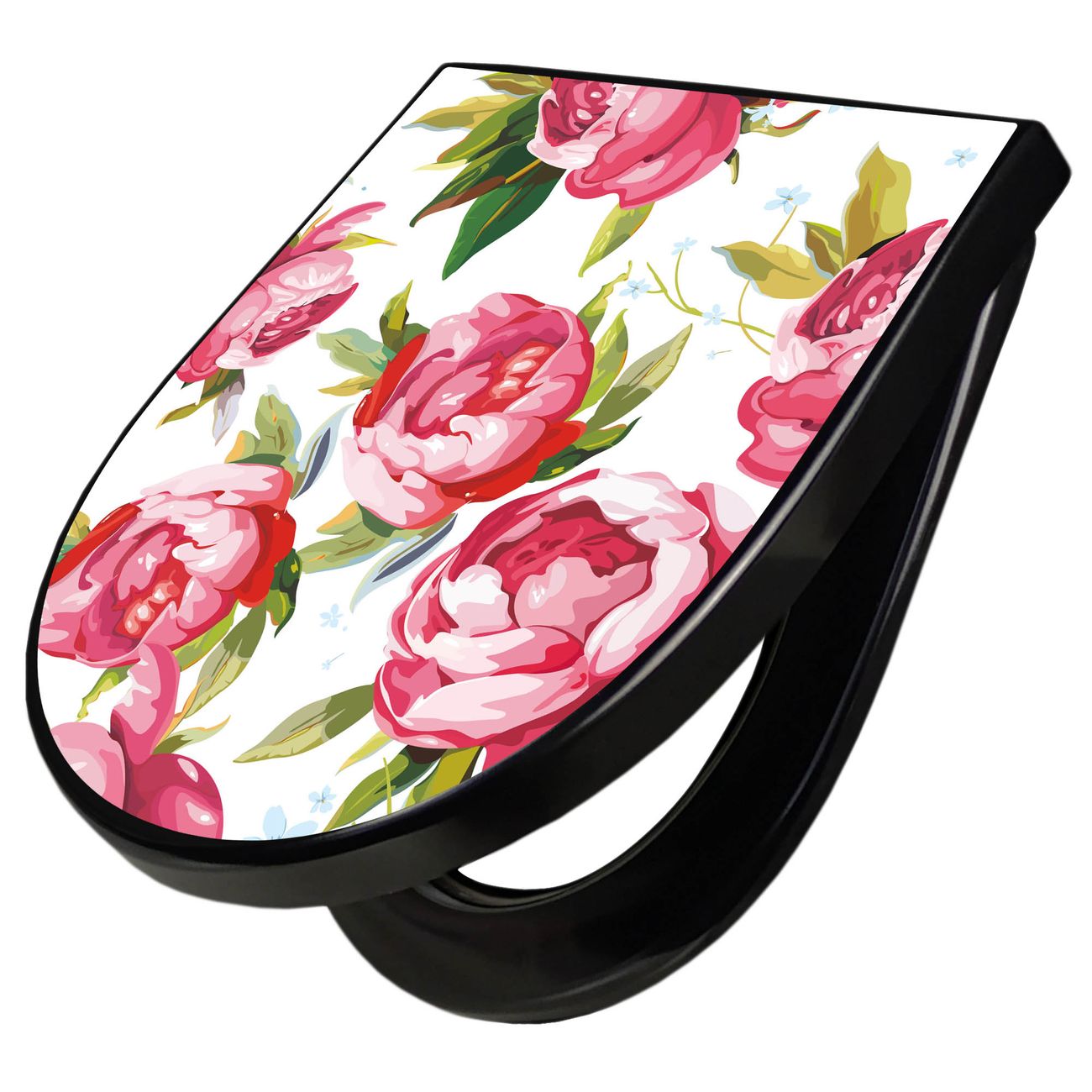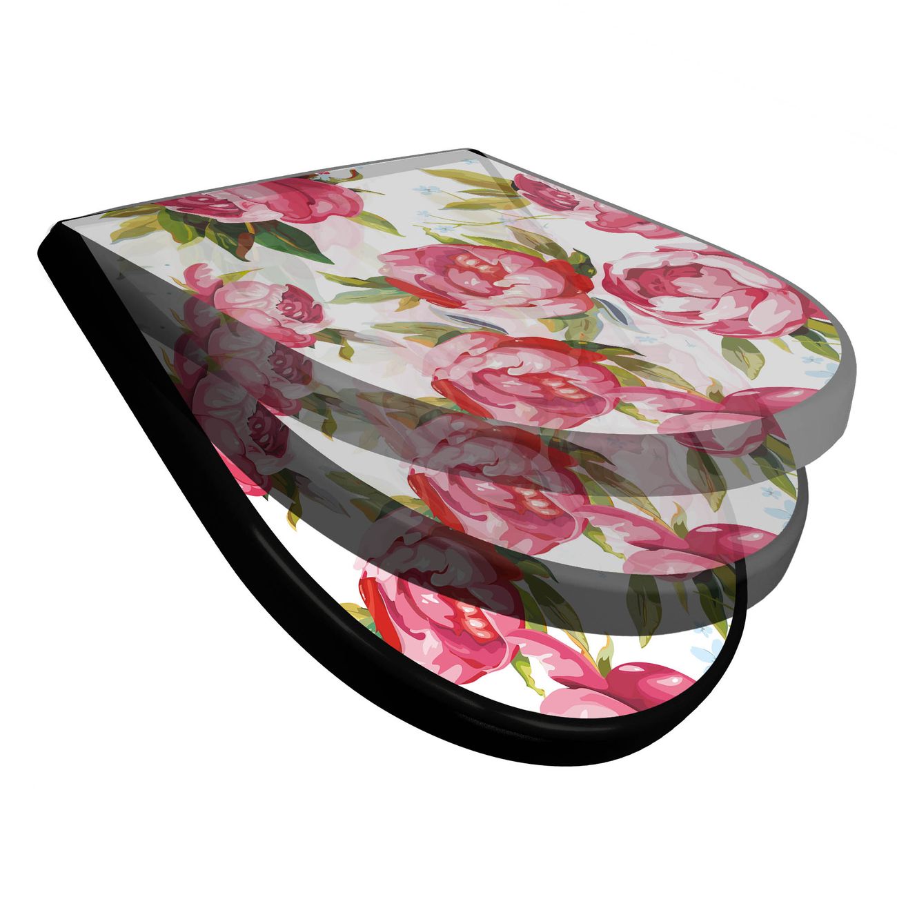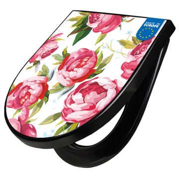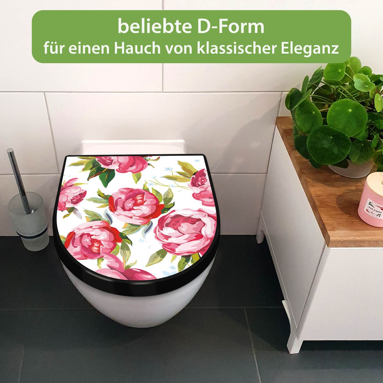 WC Sitz D-Form Schwarz mit Absenkautomatik Motiv Rosen Rustikal