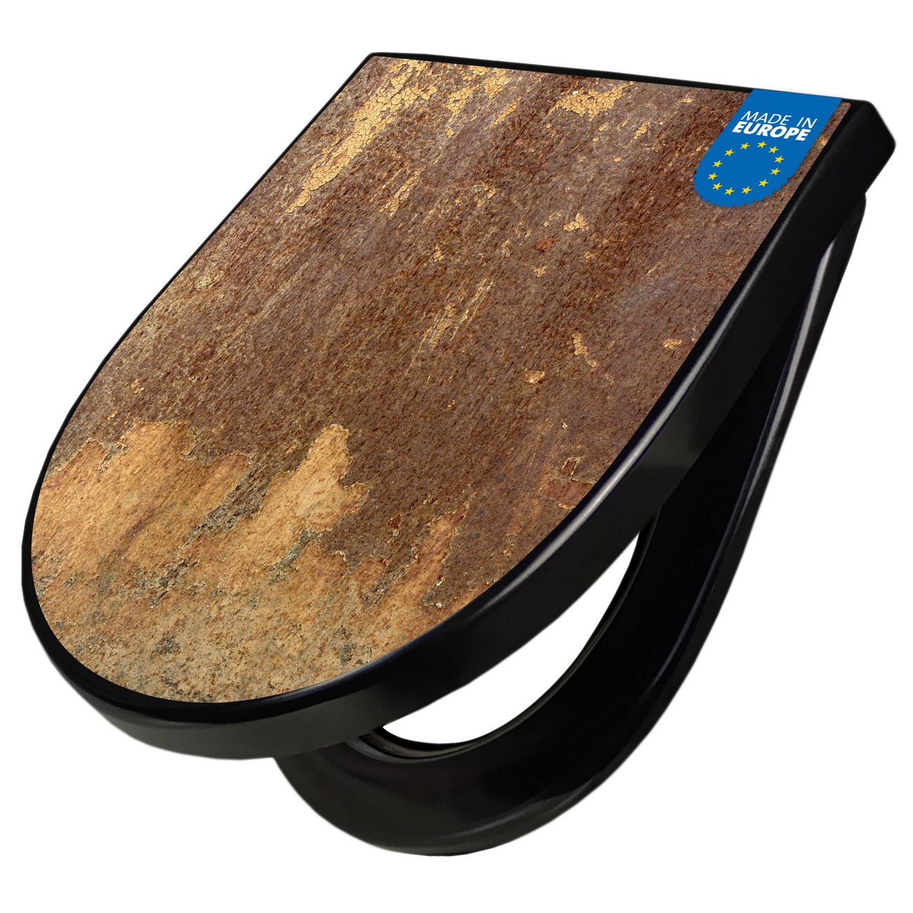 WC Sitz D-Form Schwarz mit Absenkautomatik Motiv Rostige Patina