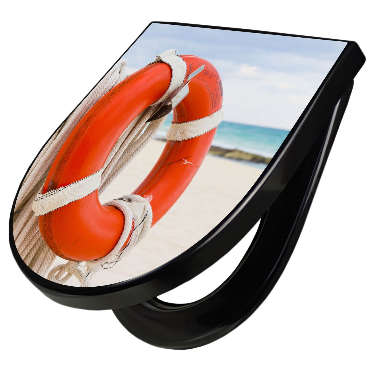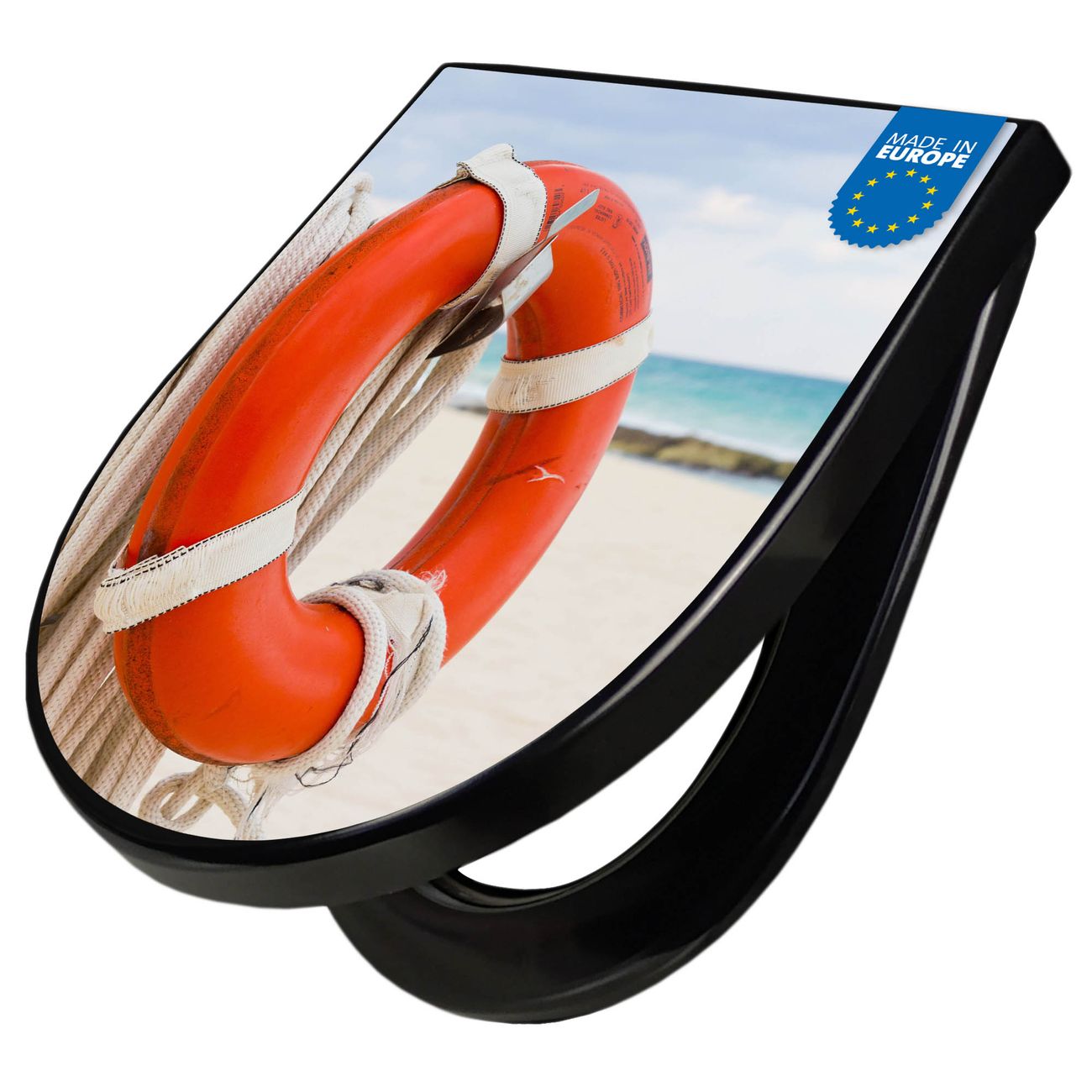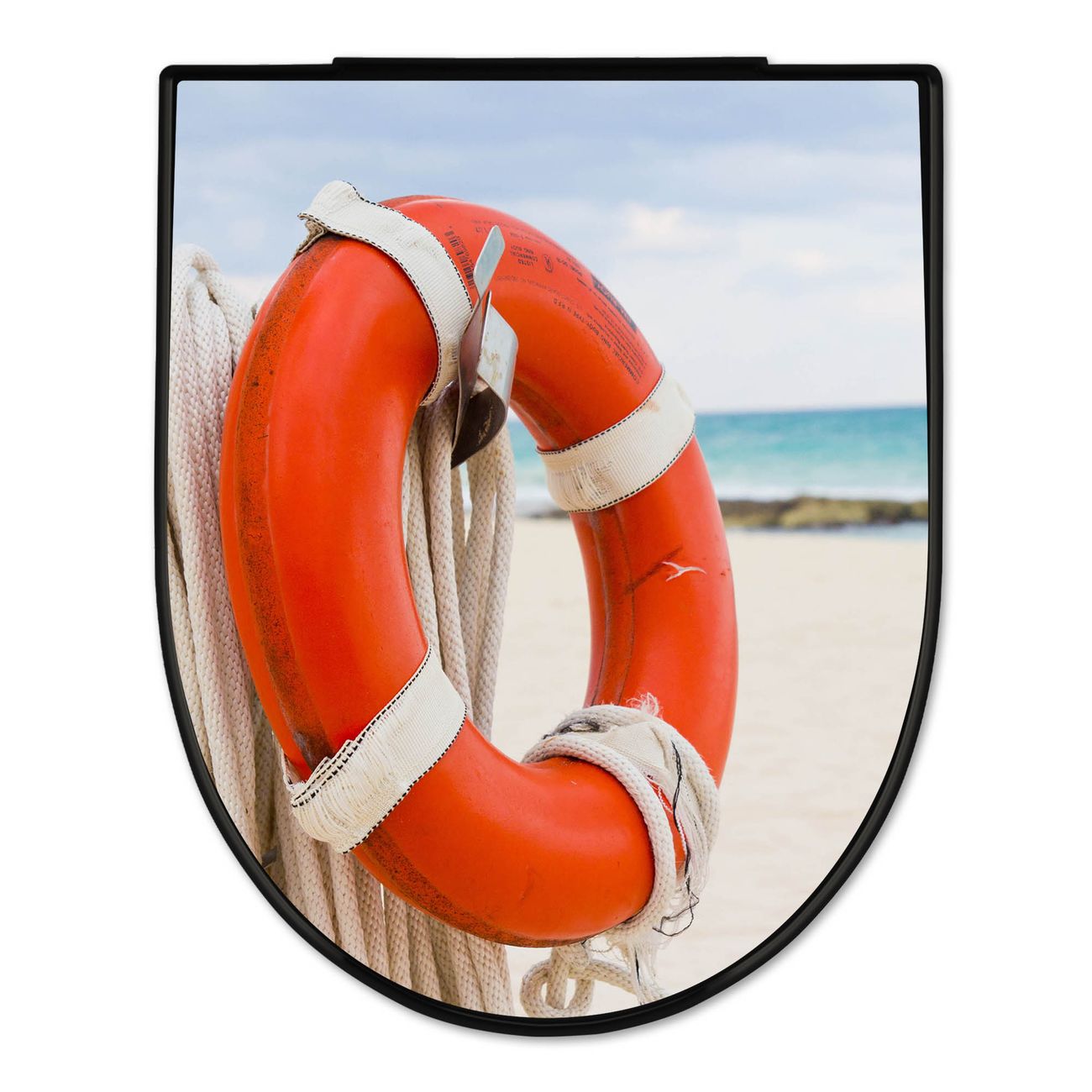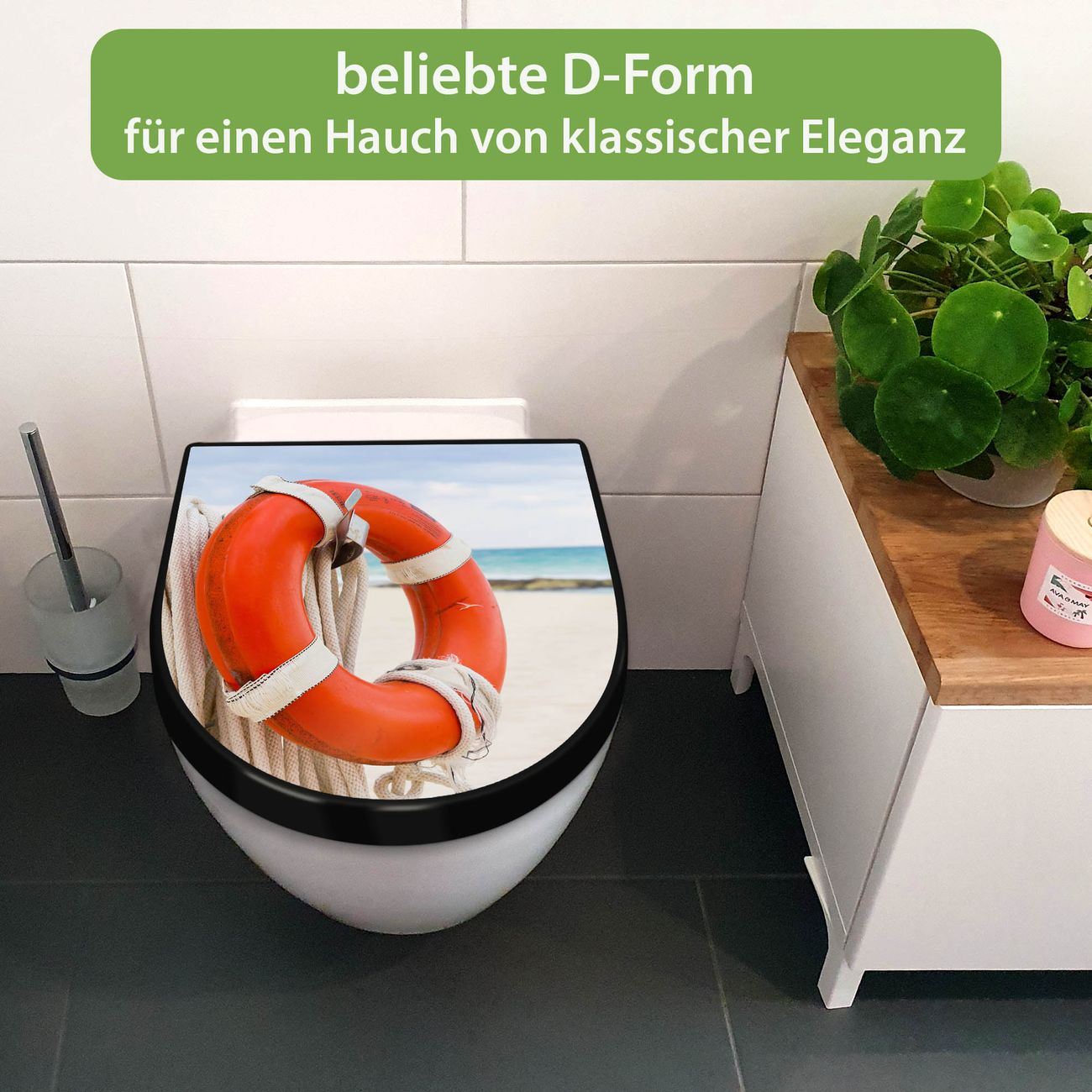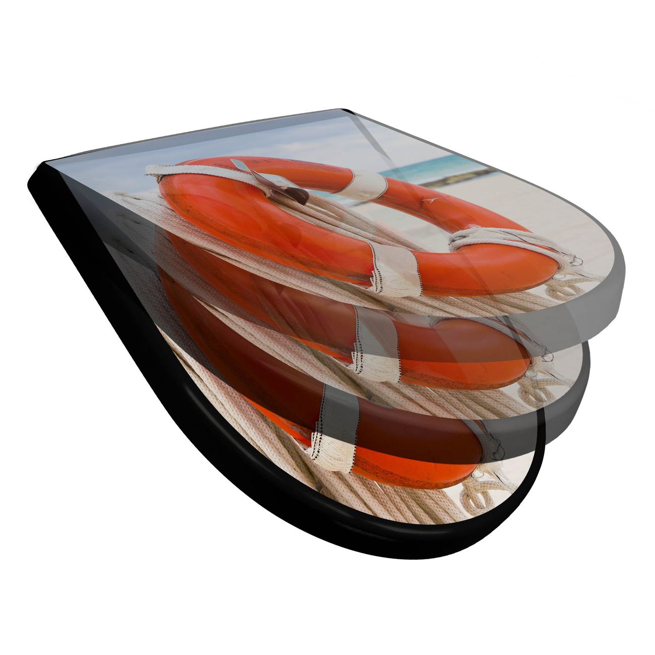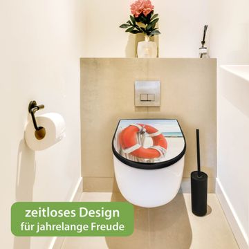 WC Sitz D-Form Schwarz mit Absenkautomatik Motiv Roter Rettungsring