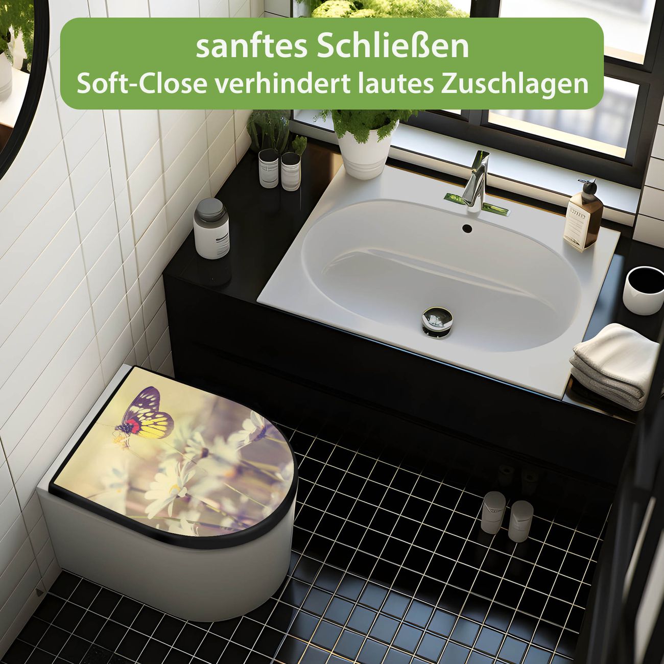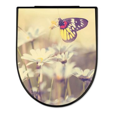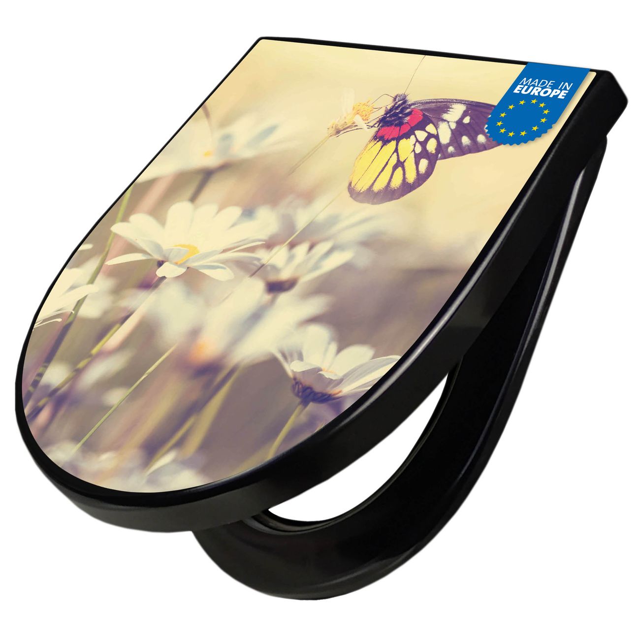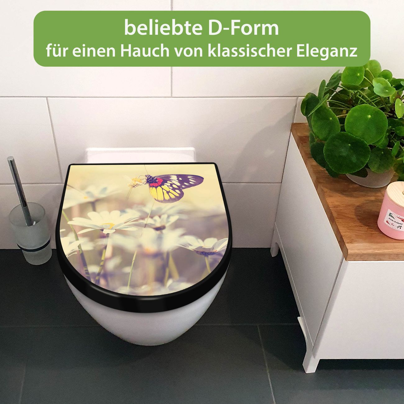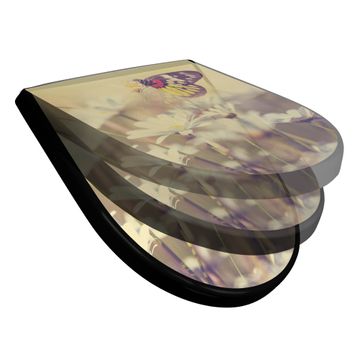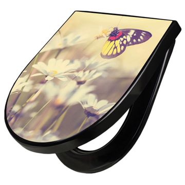 WC Sitz D-Form Schwarz mit Absenkautomatik Motiv Rotgelber Falter