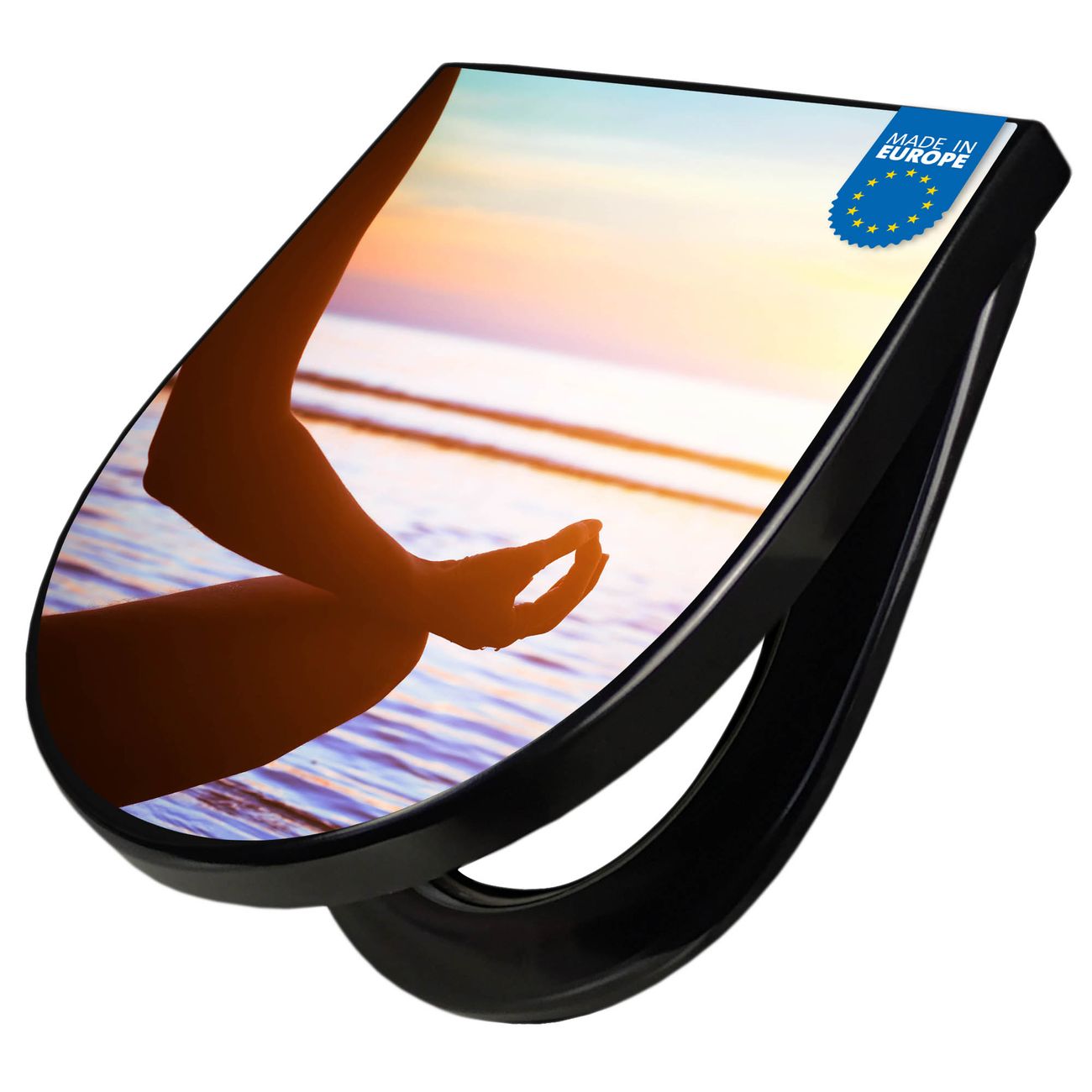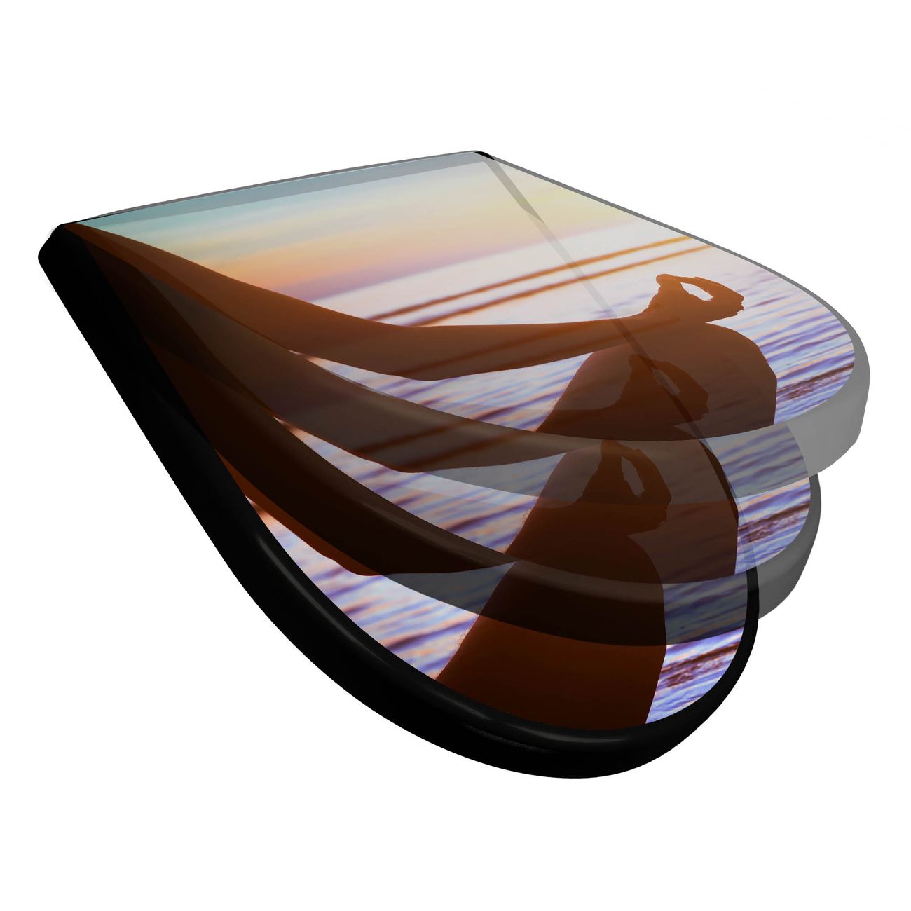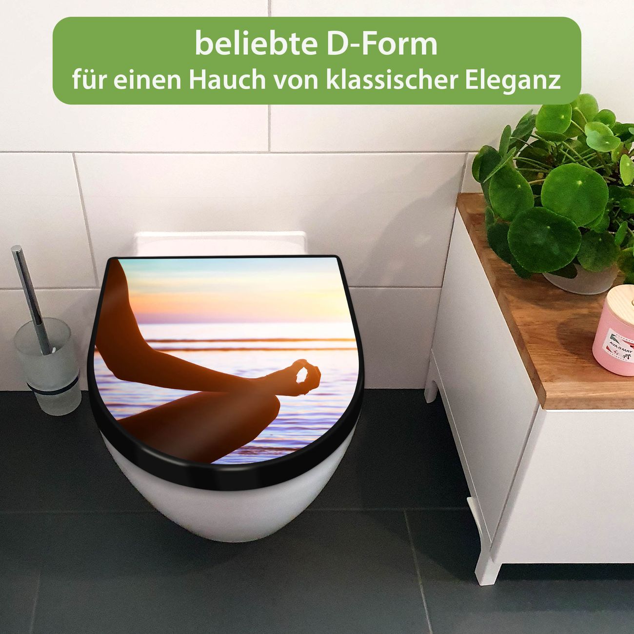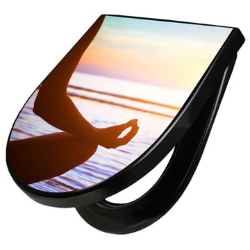 WC Sitz D-Form Schwarz mit Absenkautomatik Motiv Ruhe
