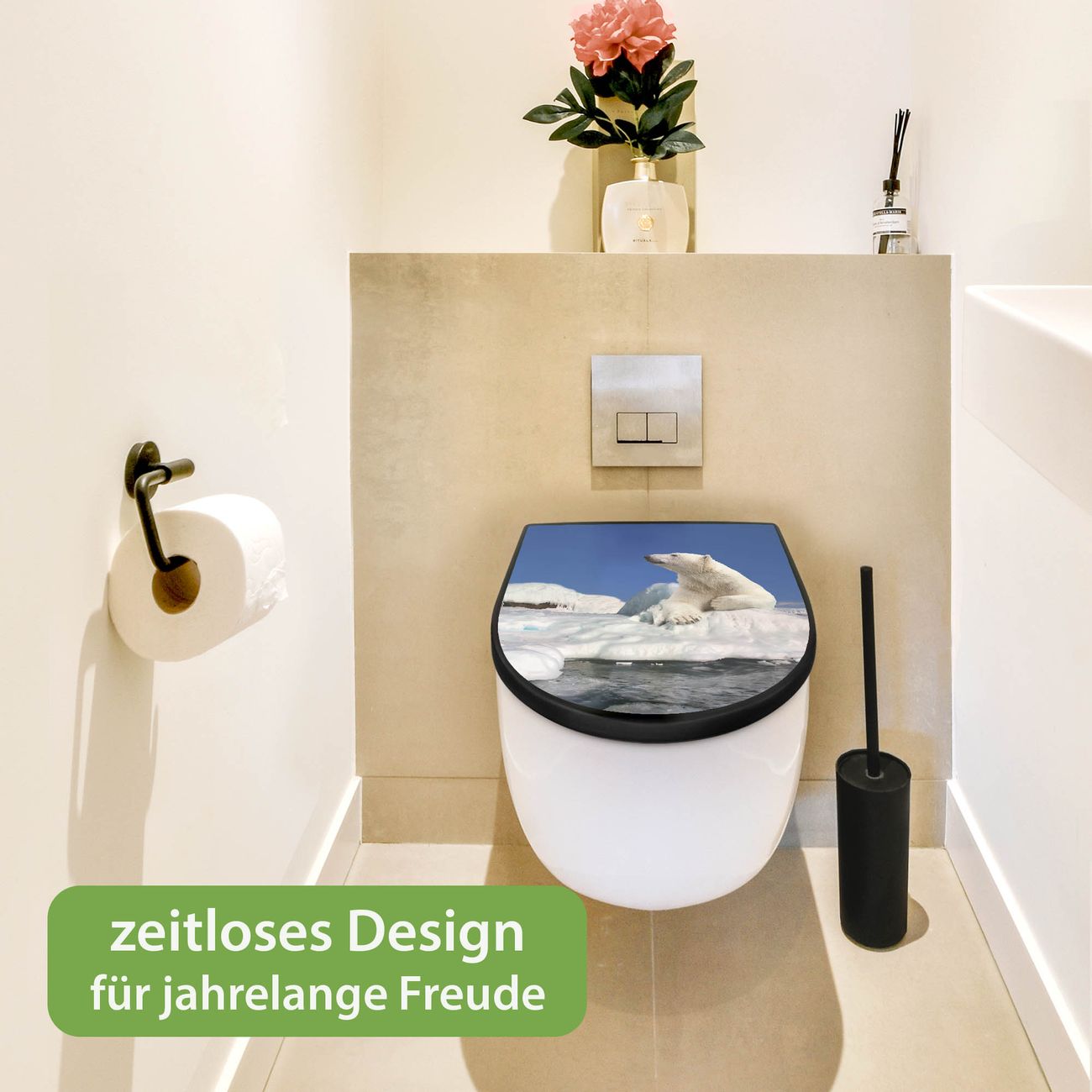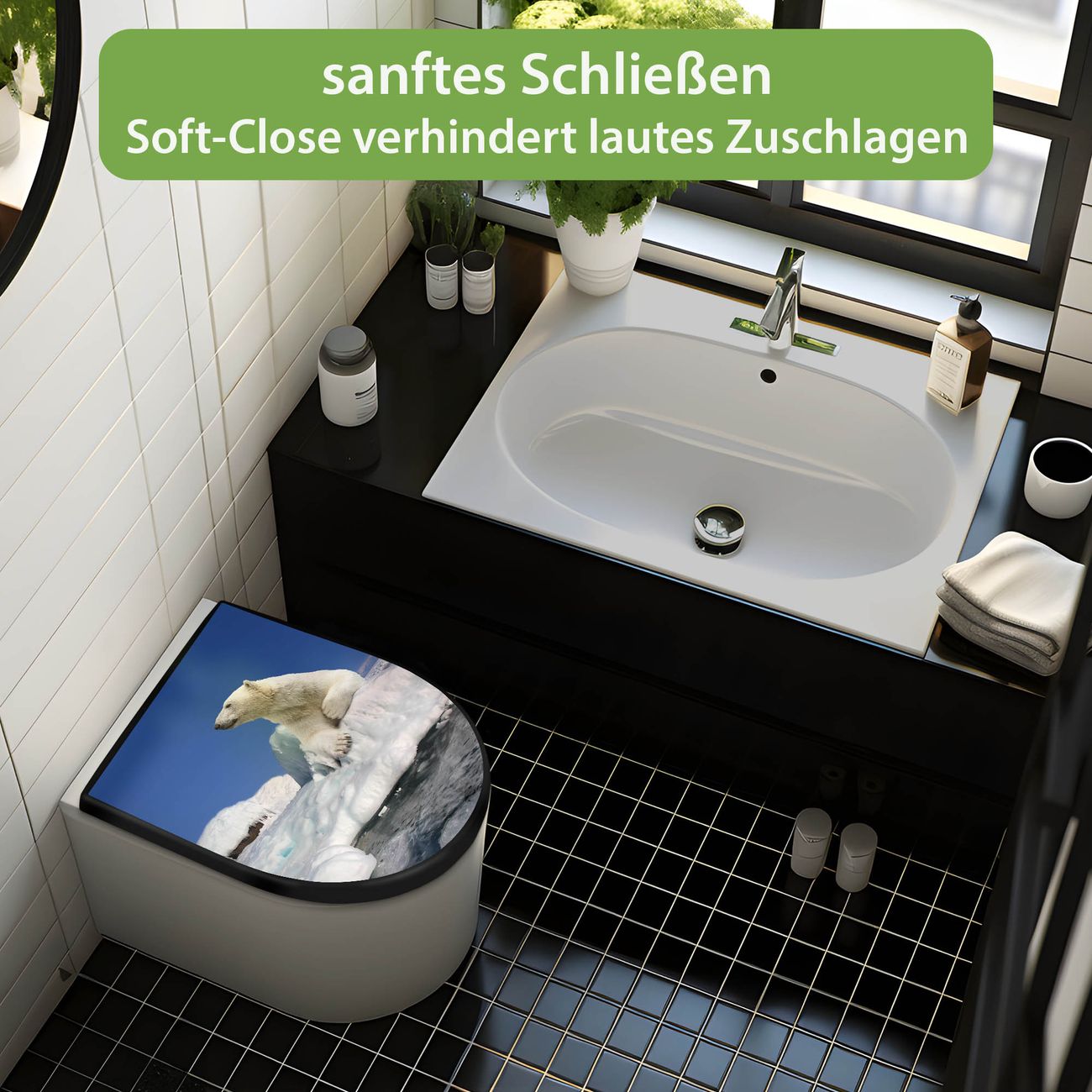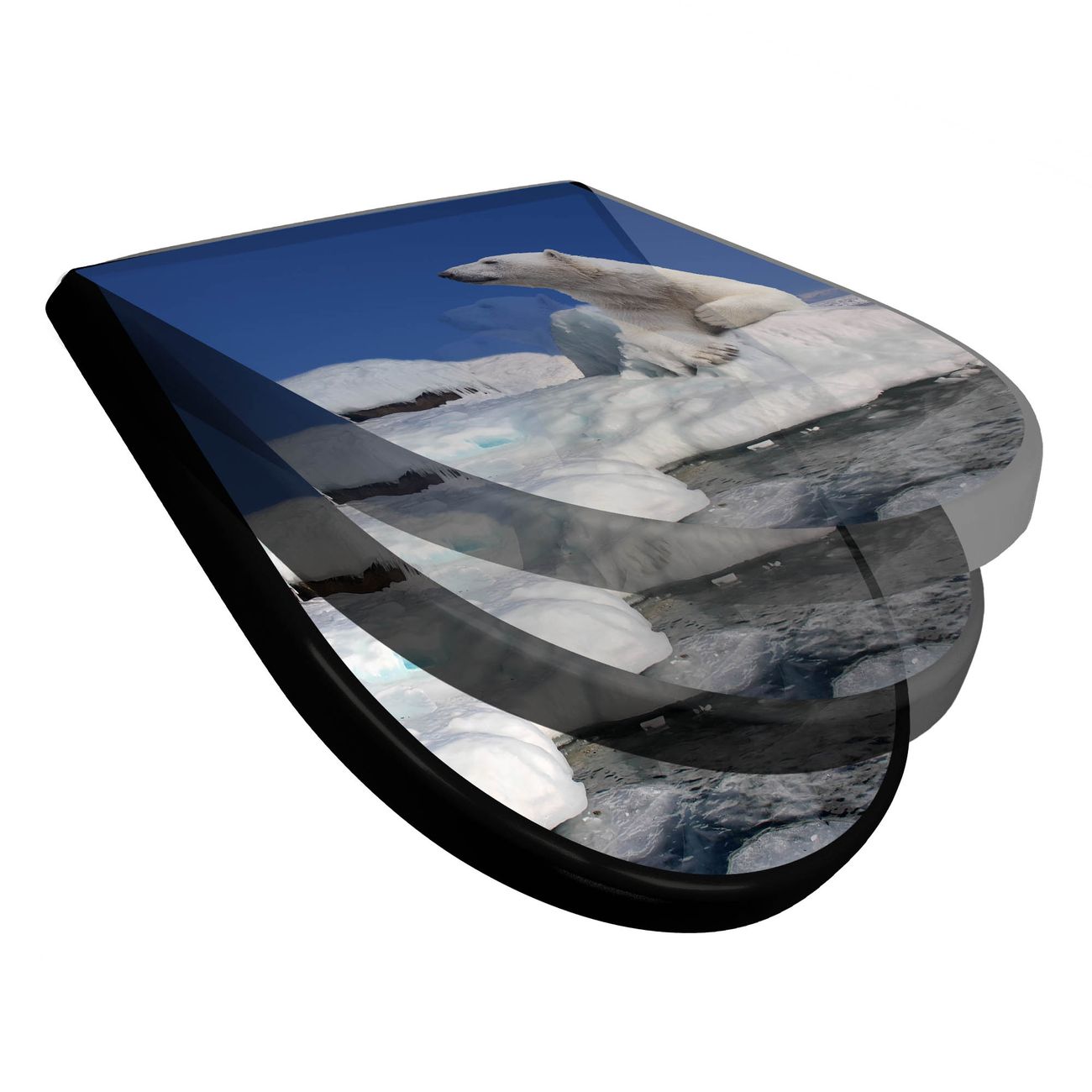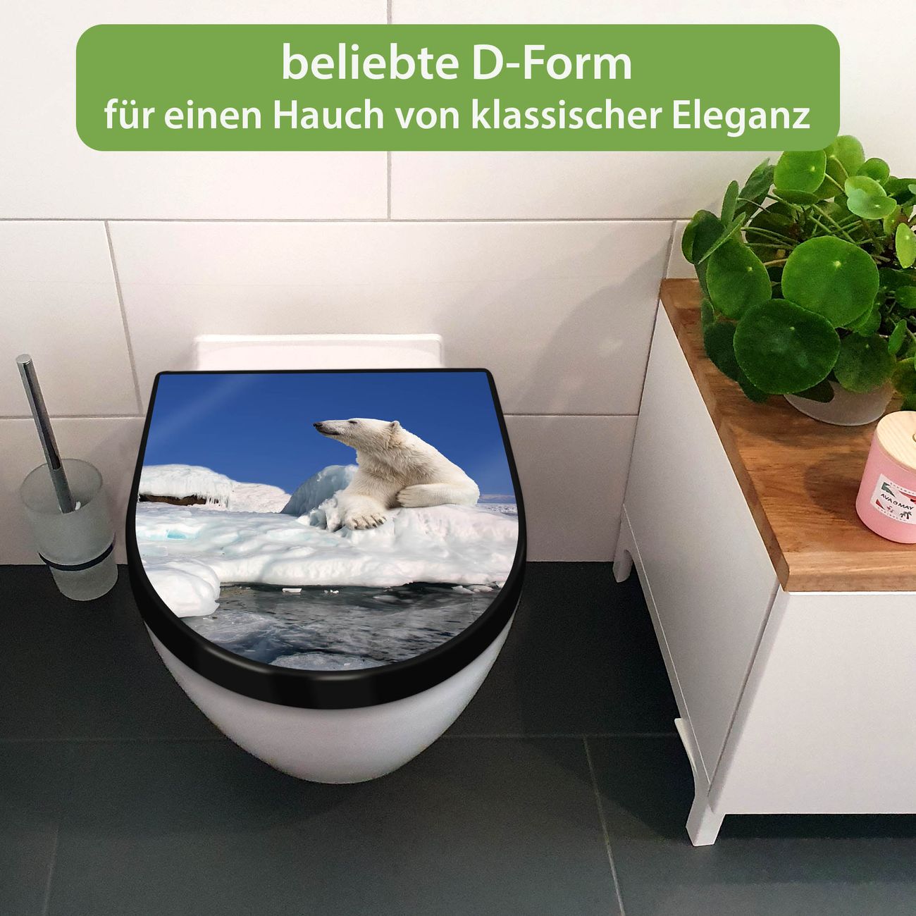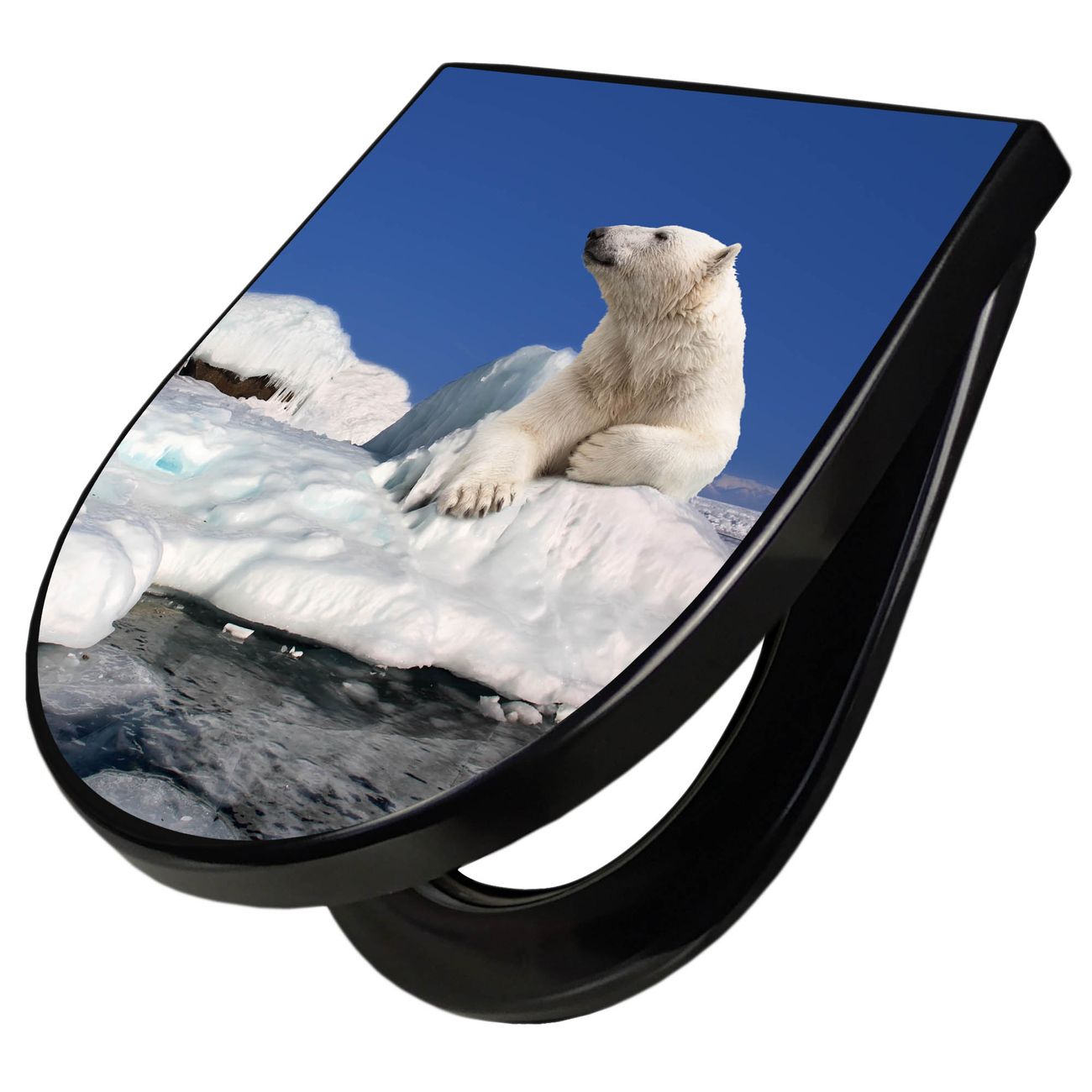 WC Sitz D-Form Schwarz mit Absenkautomatik Motiv Ruhender Eisbär