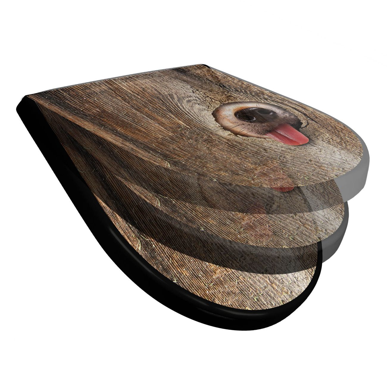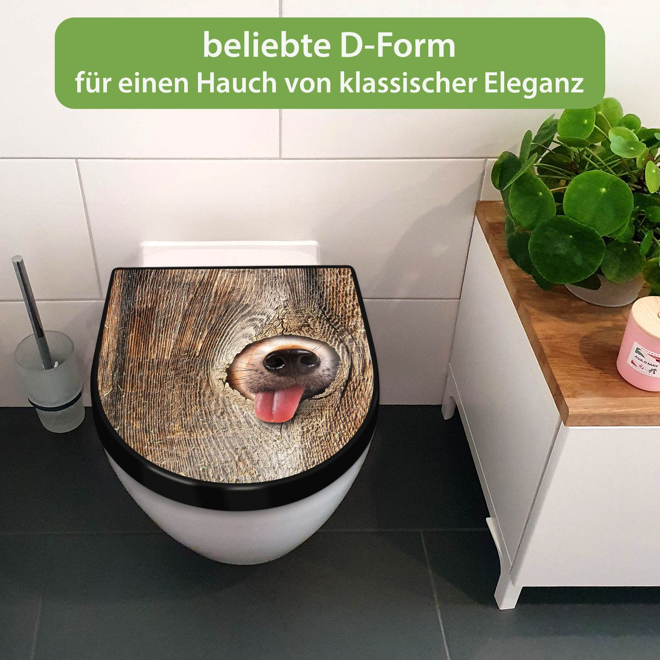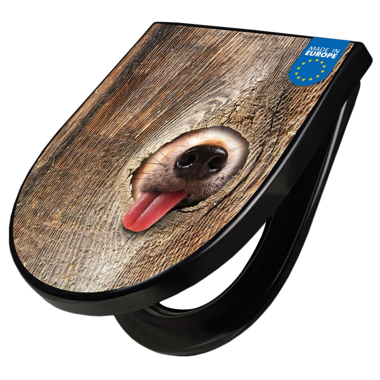 WC Sitz D-Form Schwarz mit Absenkautomatik Motiv Rumschnüffeln