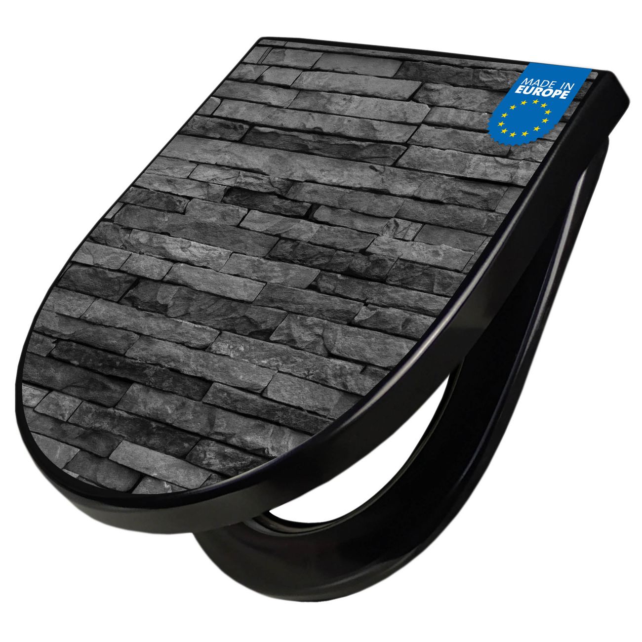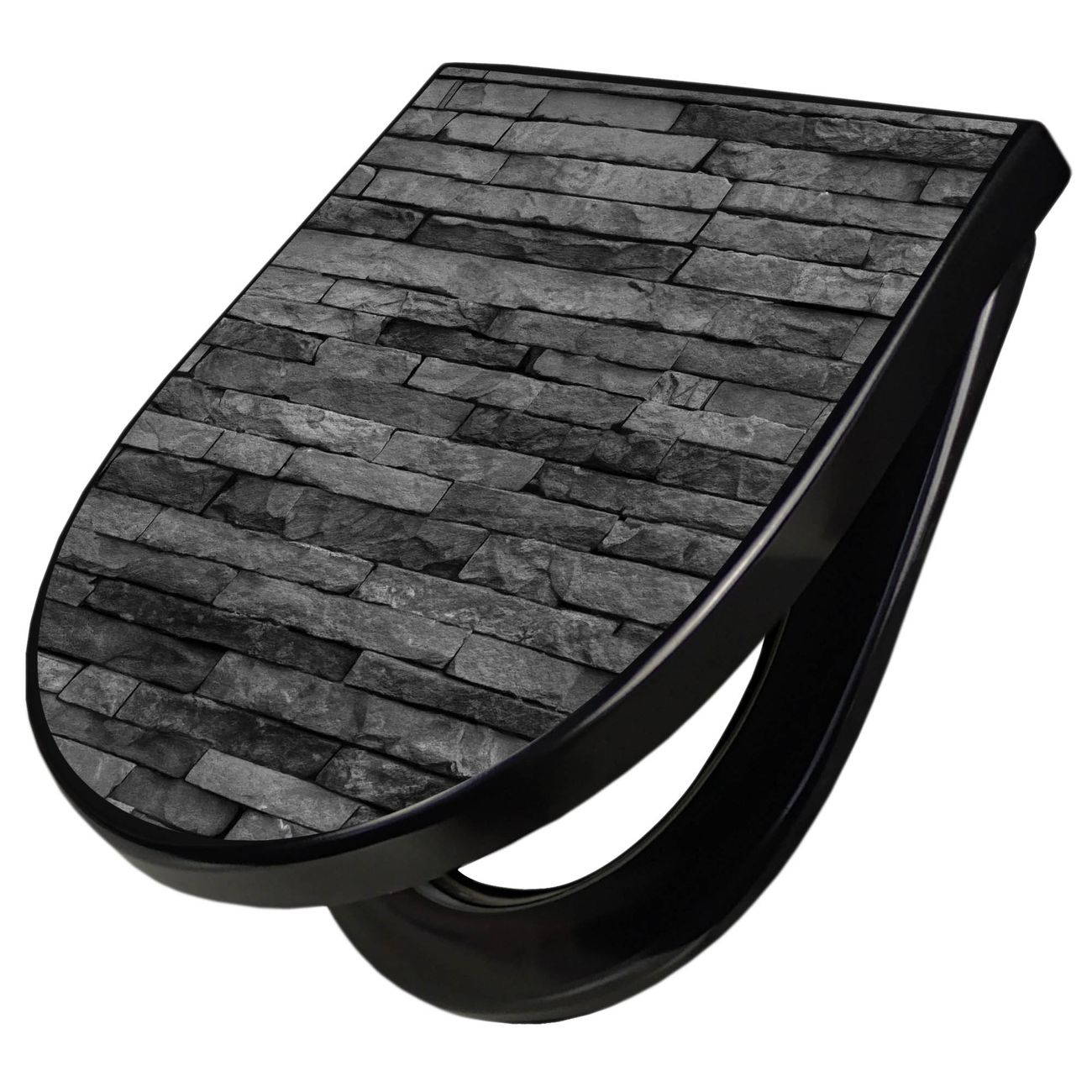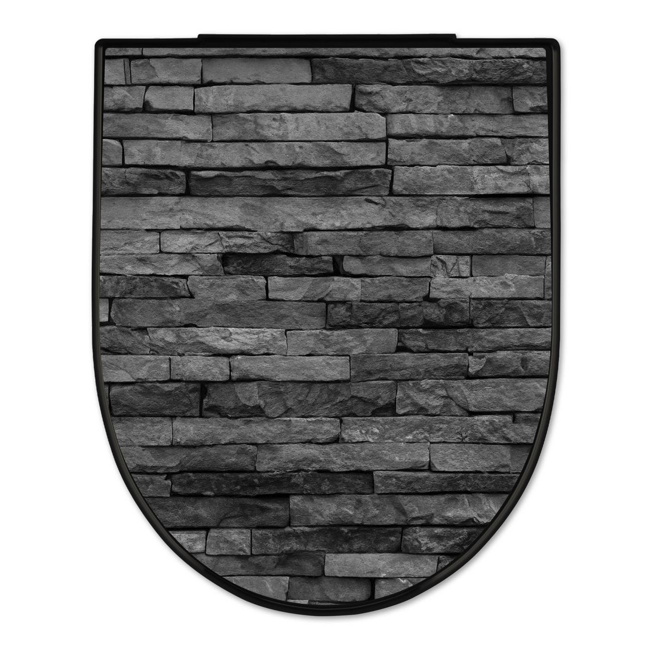 WC Sitz D-Form Schwarz mit Absenkautomatik Motiv Rustikale Steinwand