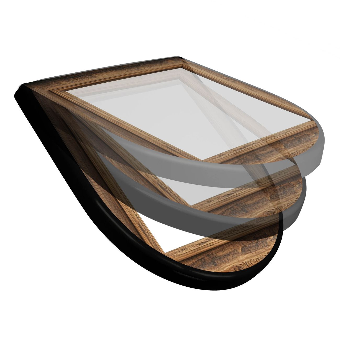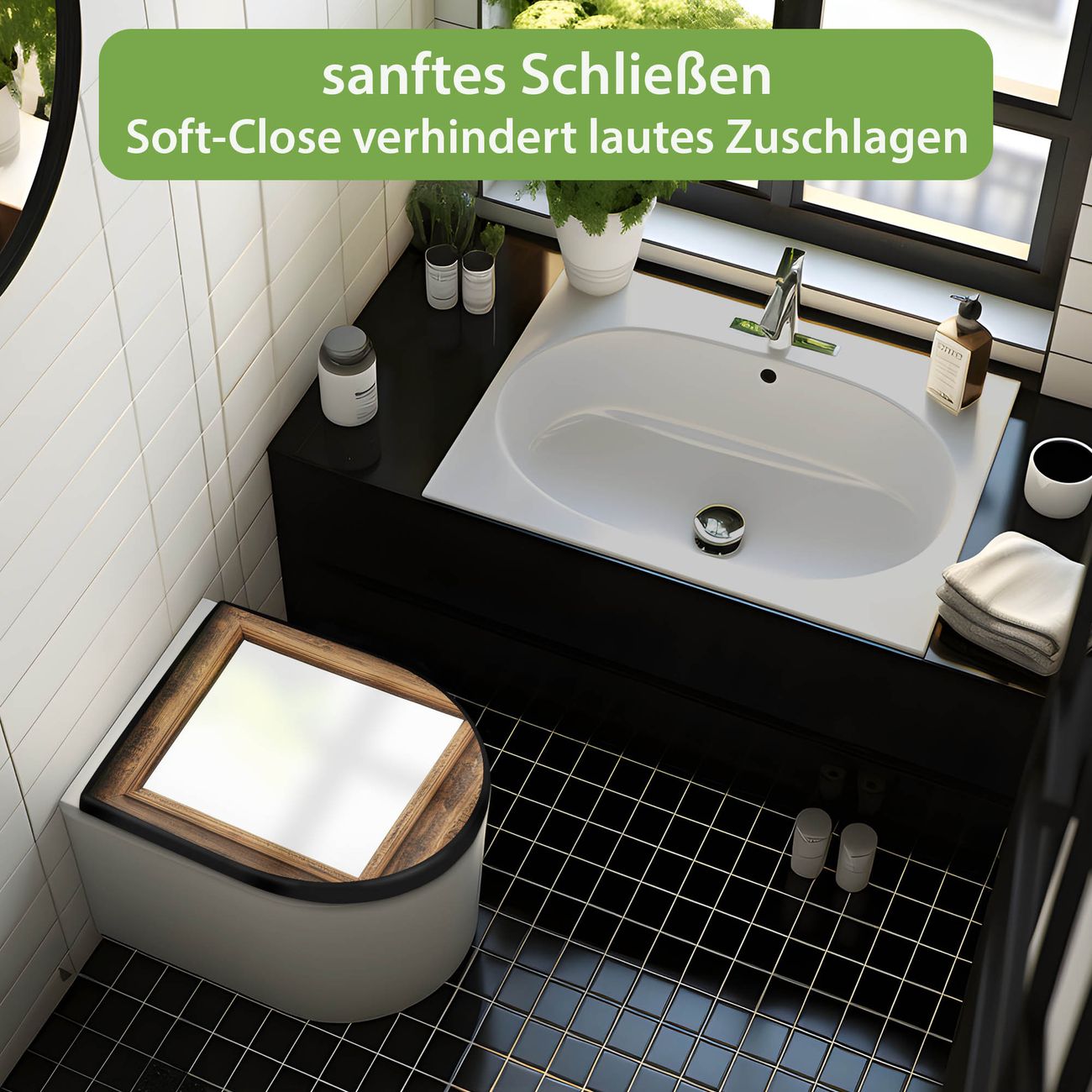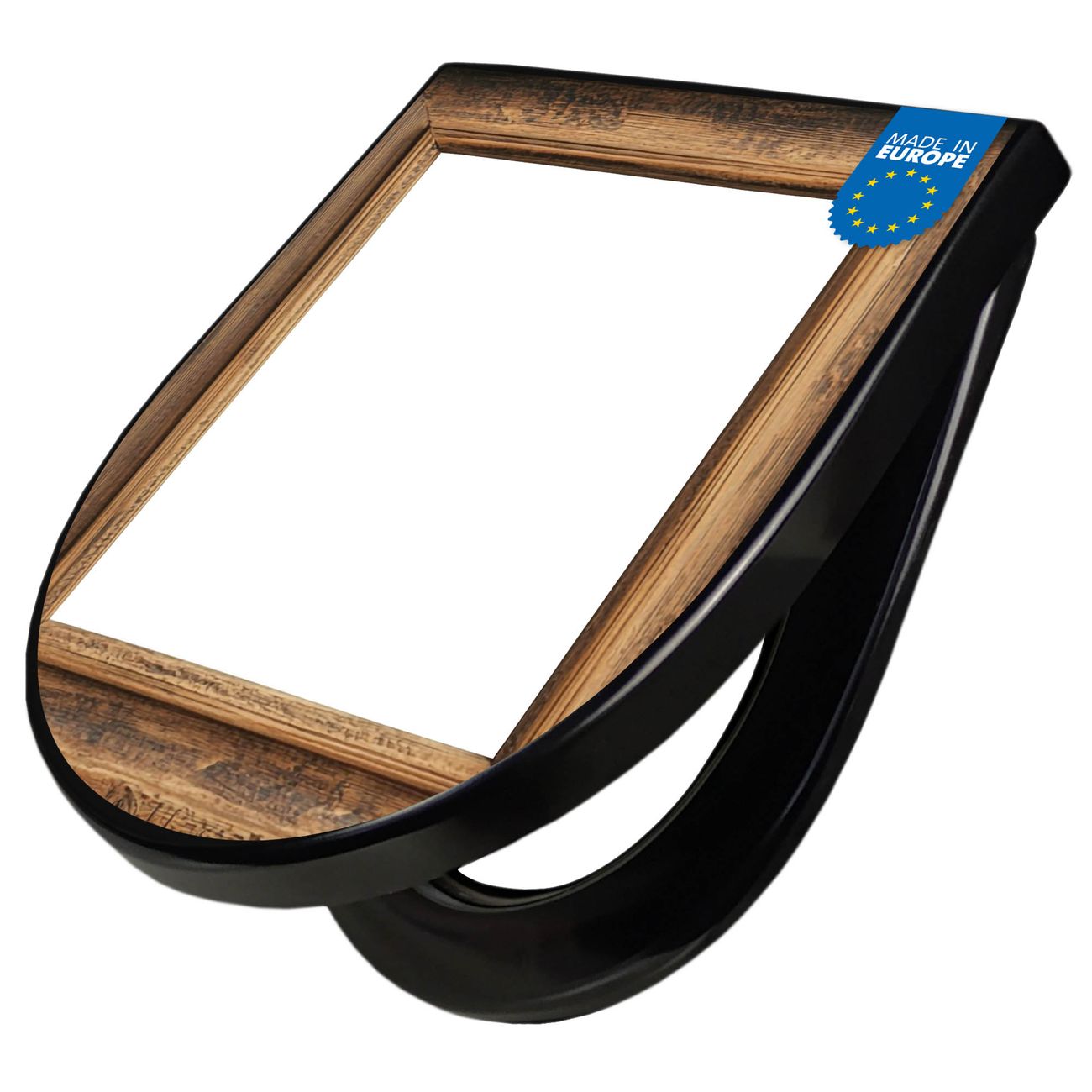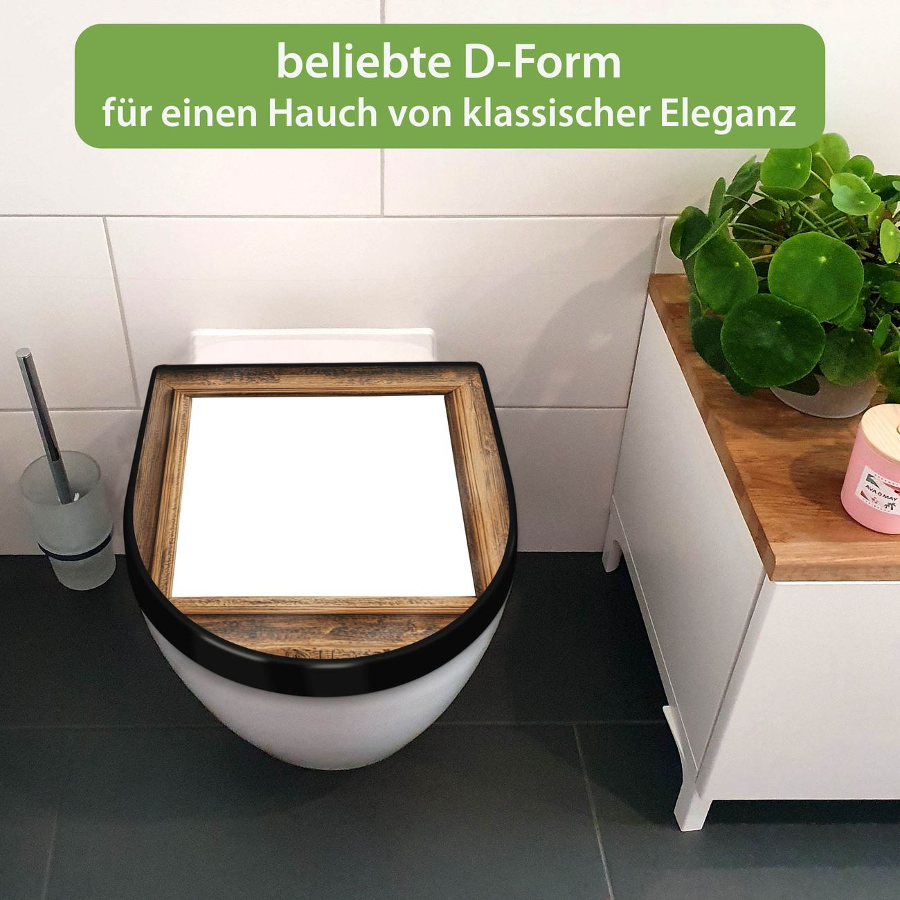 WC Sitz D-Form Schwarz mit Absenkautomatik Motiv Rustikaler Holzrahmen