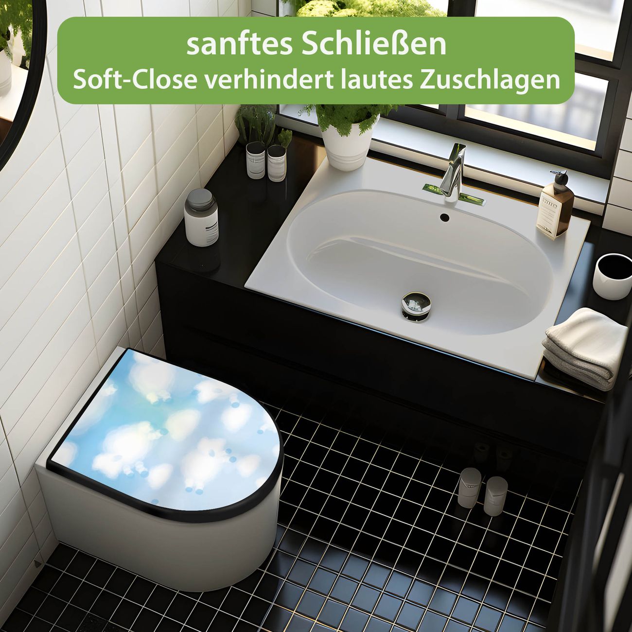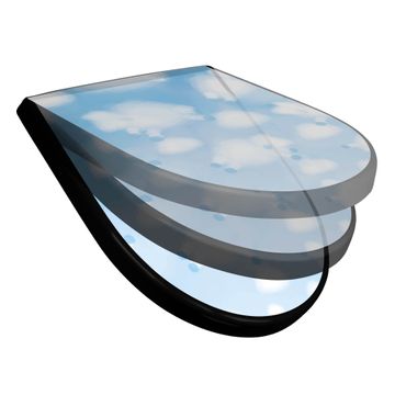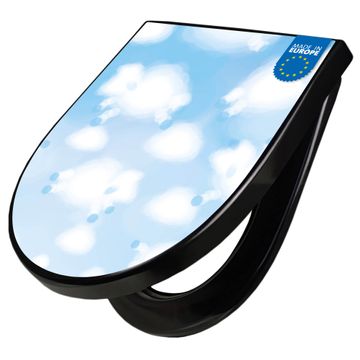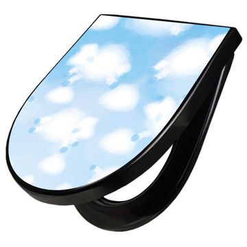 WC Sitz D-Form Schwarz mit Absenkautomatik Motiv Schäfchenwolken