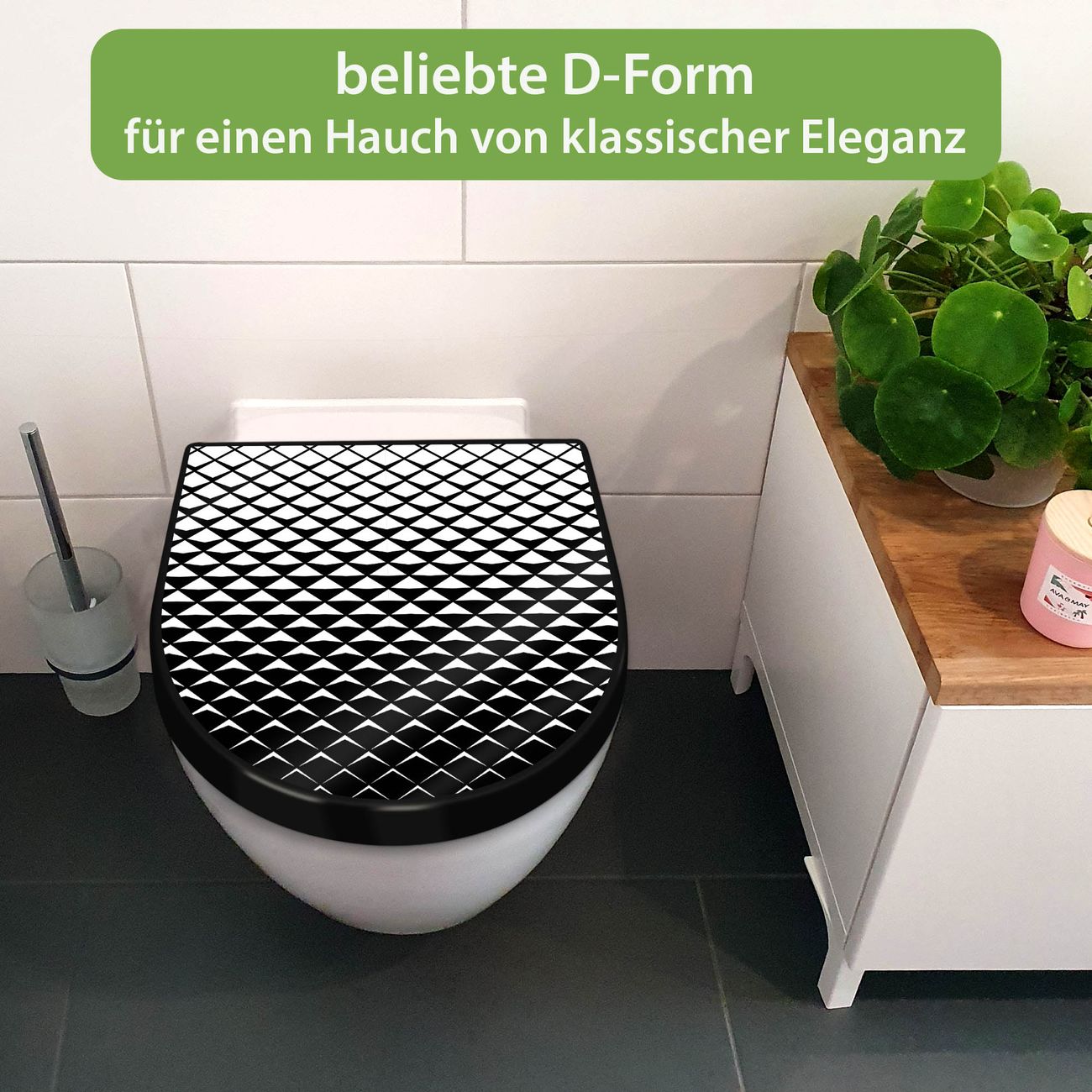 WC Sitz D-Form Schwarz mit Absenkautomatik Motiv Schattierung