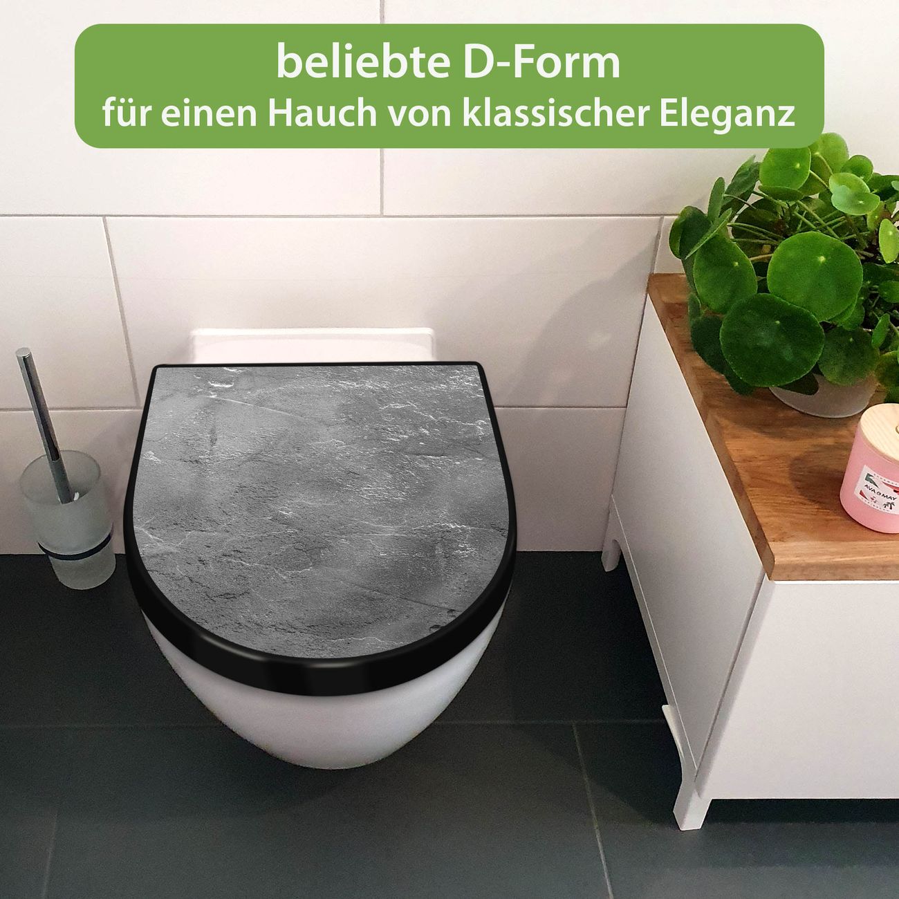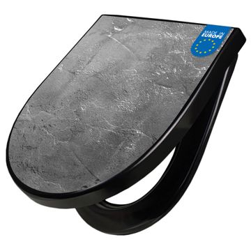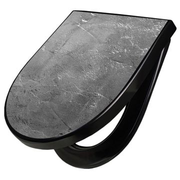 WC Sitz D-Form Schwarz mit Absenkautomatik Motiv Schiefer Platte 3