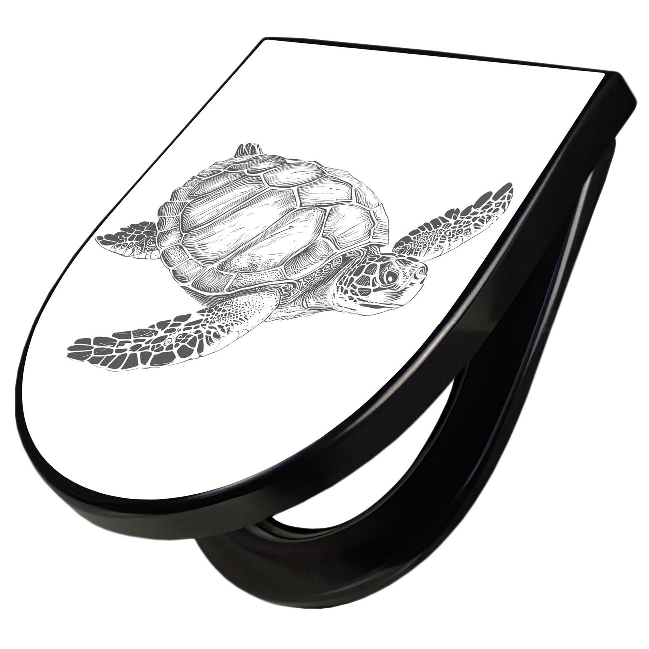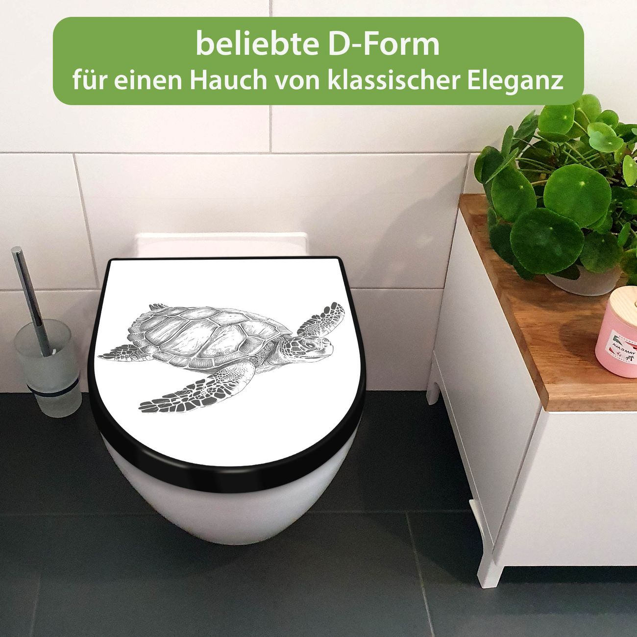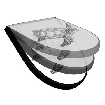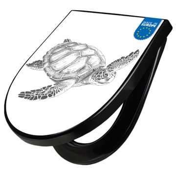 WC Sitz D-Form Schwarz mit Absenkautomatik Motiv Schildkröte 2