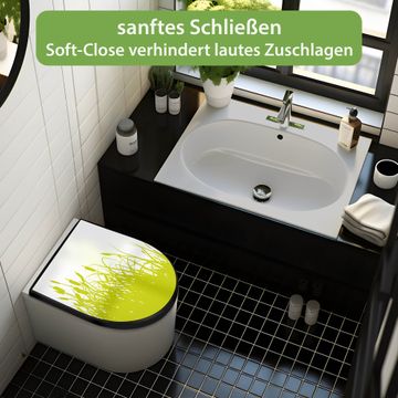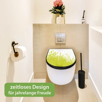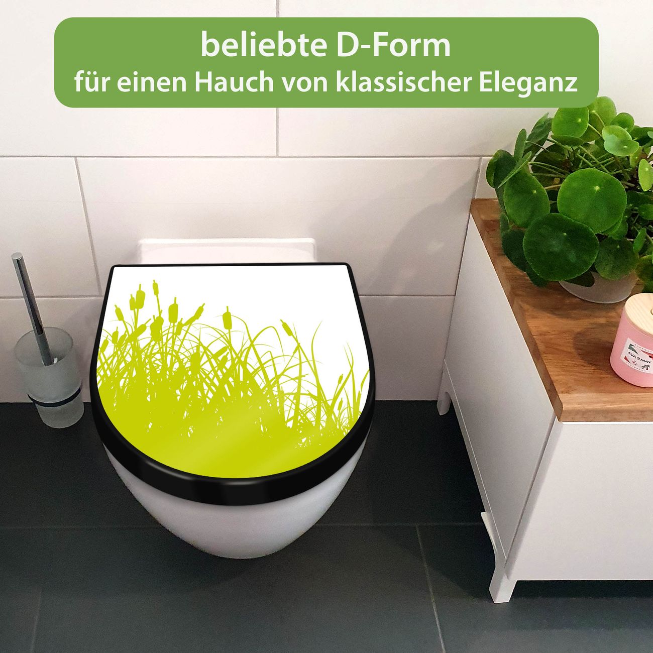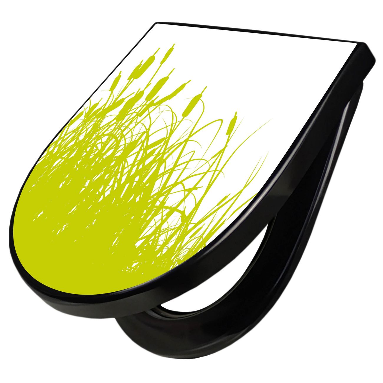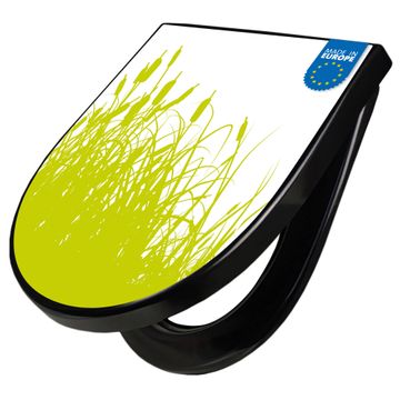 WC Sitz D-Form Schwarz mit Absenkautomatik Motiv Schilf