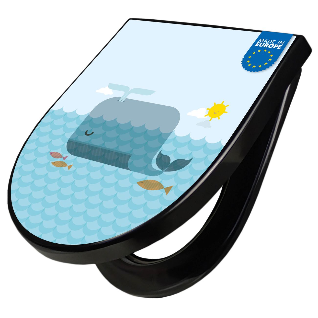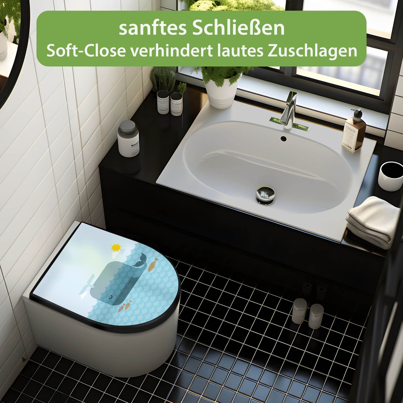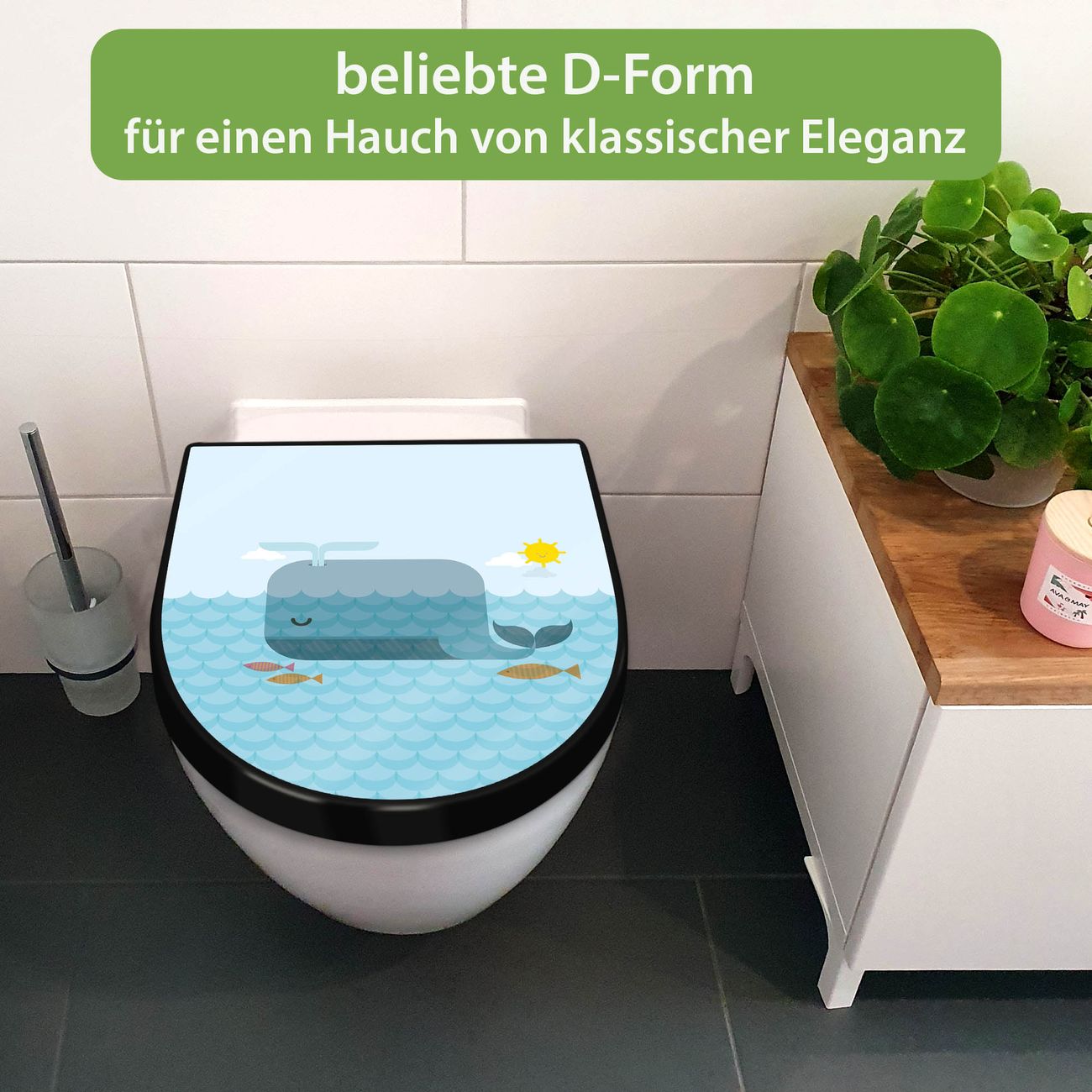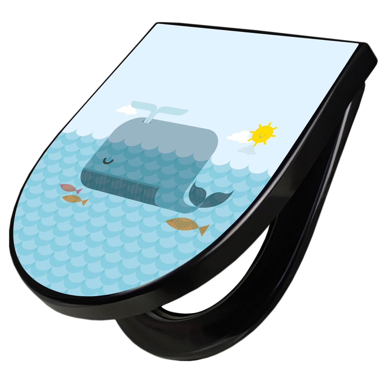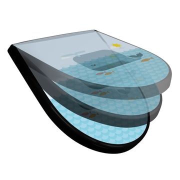 WC Sitz D-Form Schwarz mit Absenkautomatik Motiv Schlafender Wal