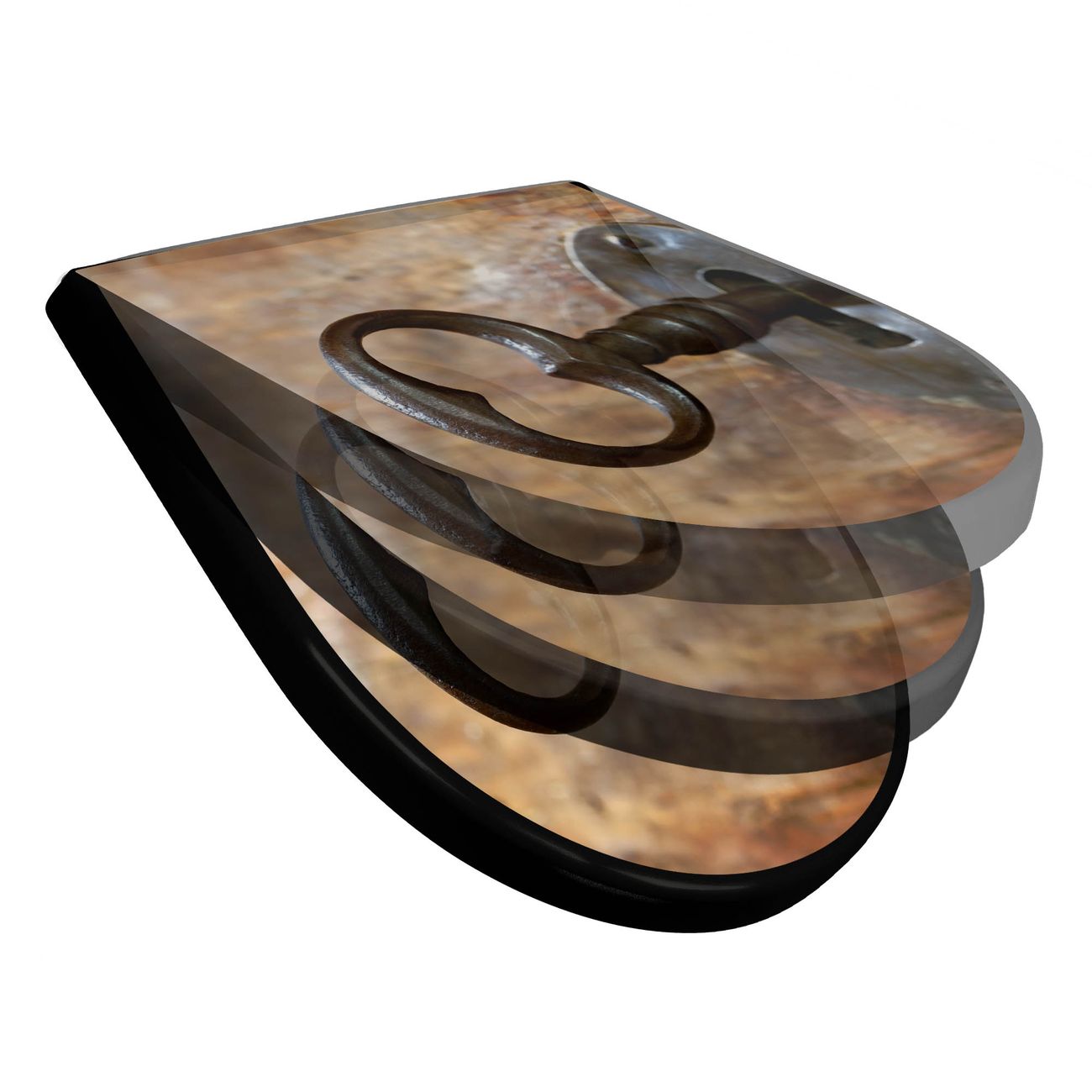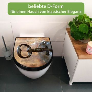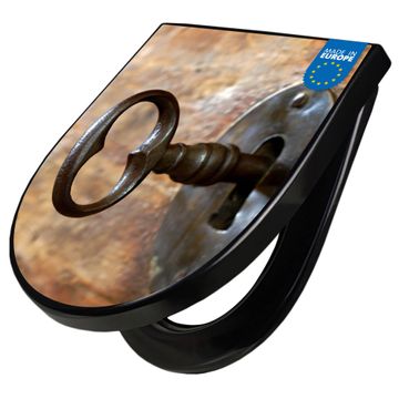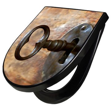 WC Sitz D-Form Schwarz mit Absenkautomatik Motiv Schlüssel