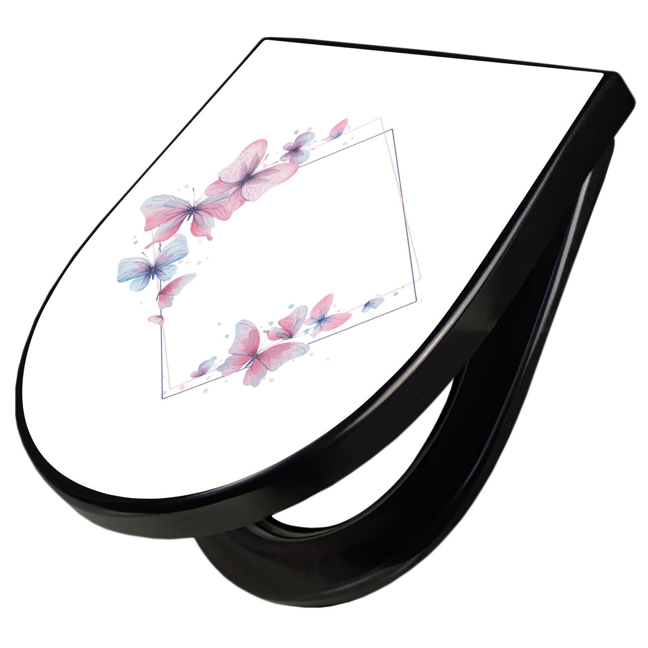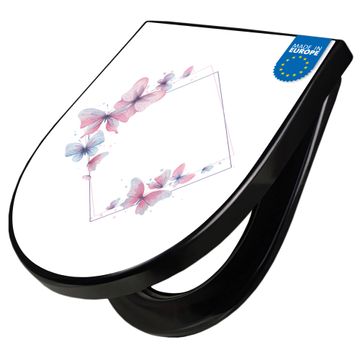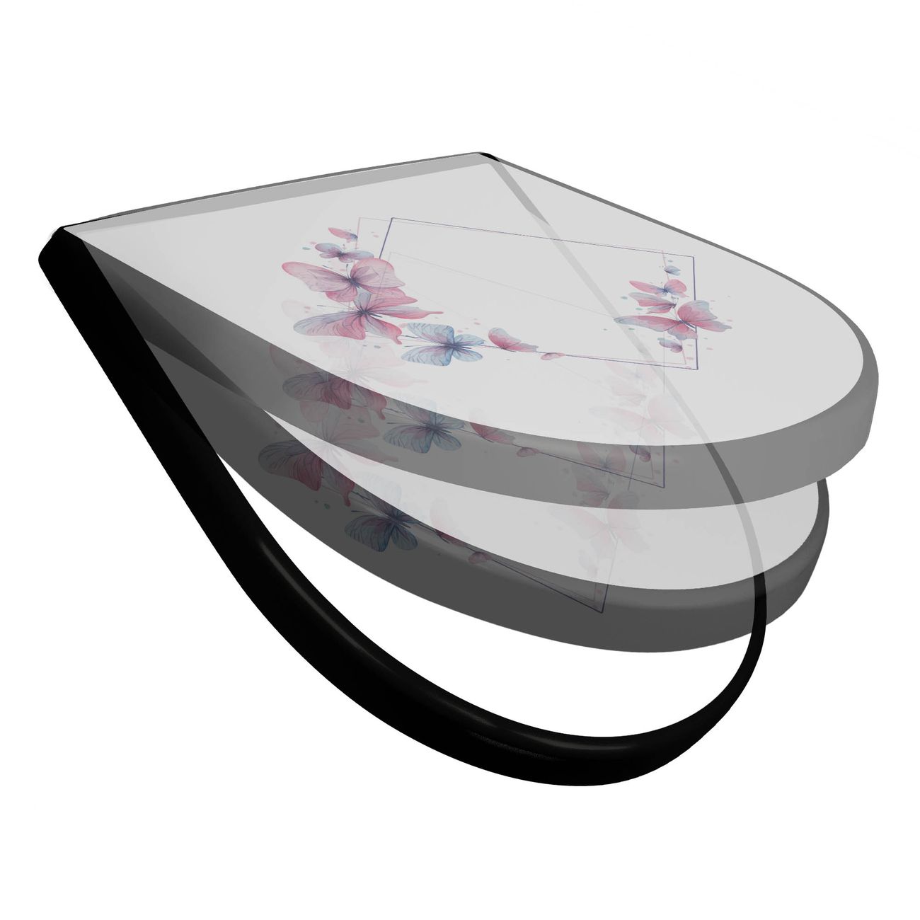 WC Sitz D-Form Schwarz mit Absenkautomatik Motiv Schmetterlingsgarten 2
