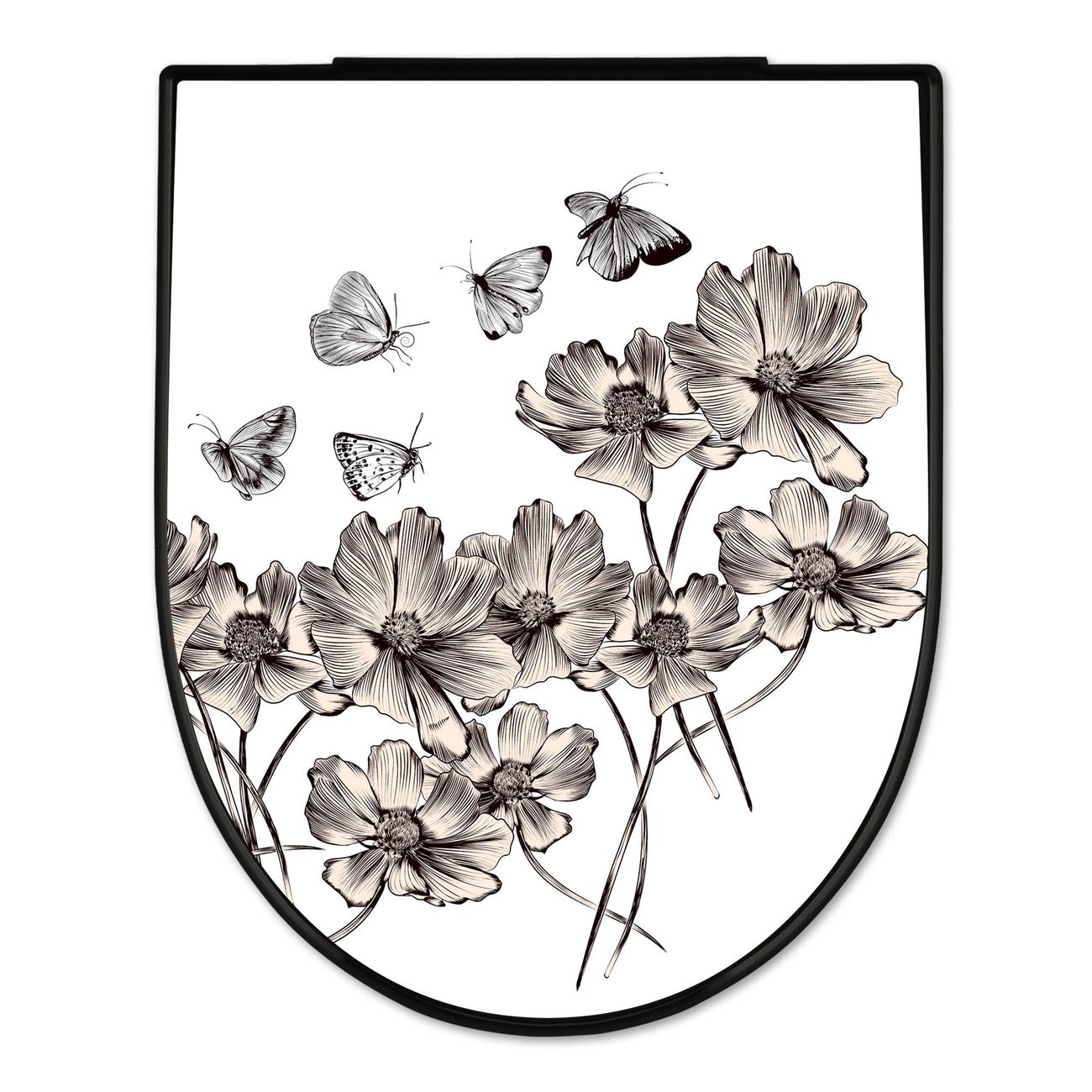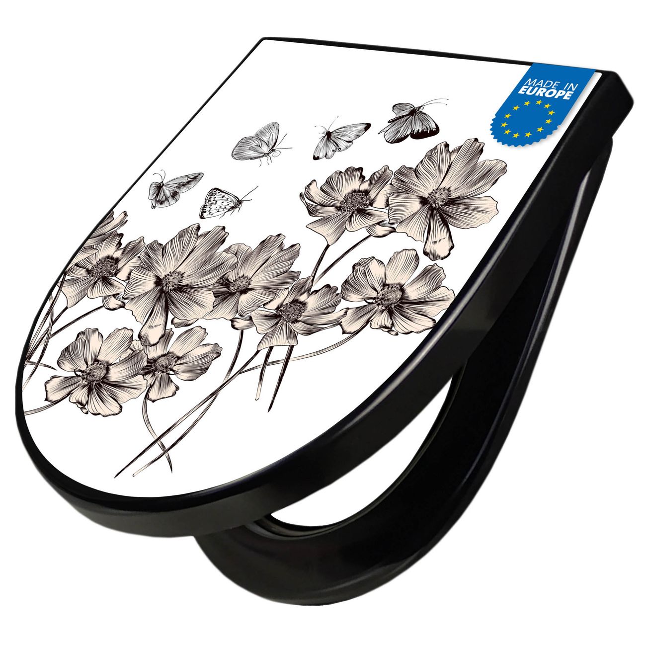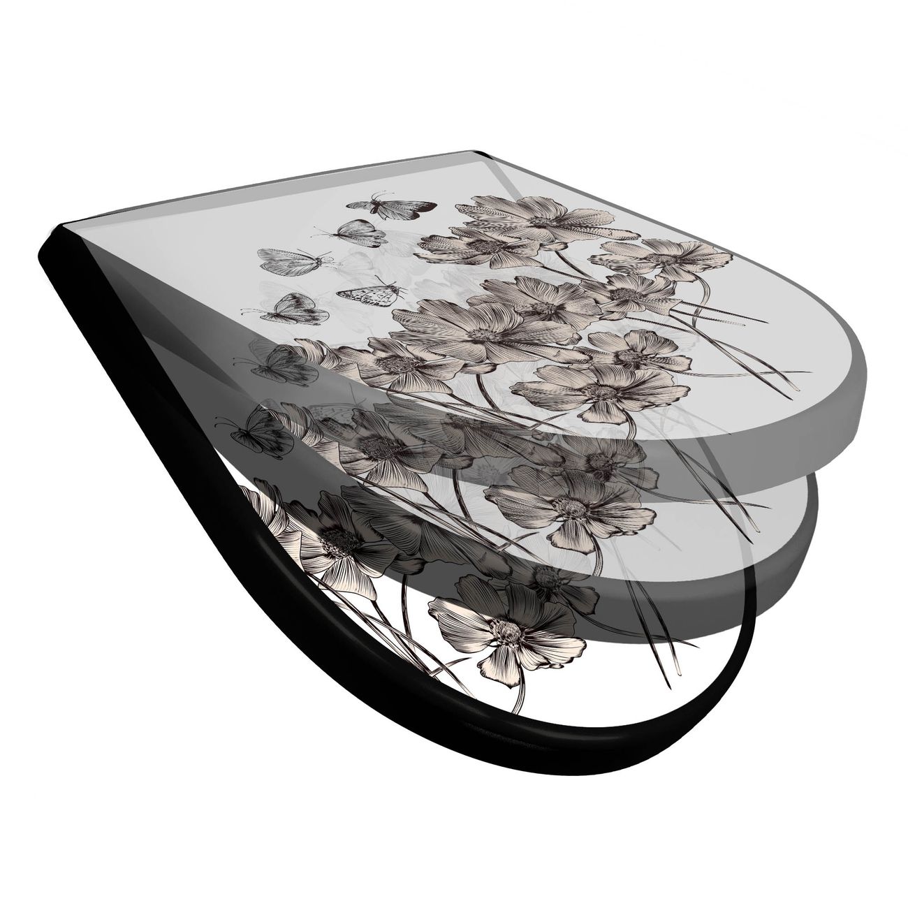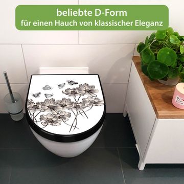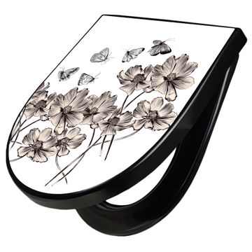 WC Sitz D-Form Schwarz mit Absenkautomatik Motiv Schmetterlingsgarten