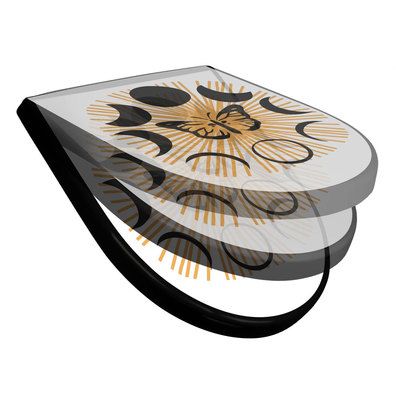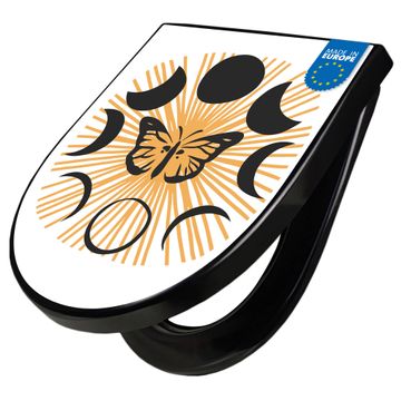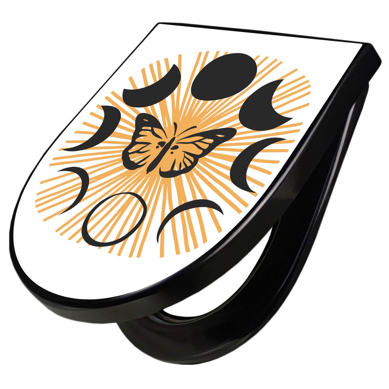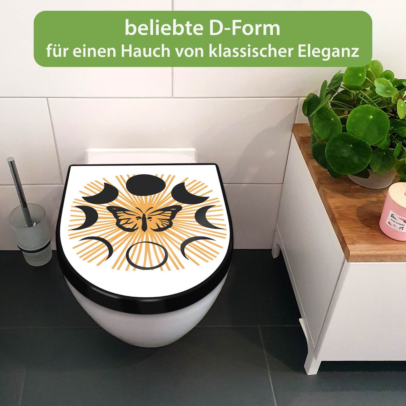 WC Sitz D-Form Schwarz mit Absenkautomatik Motiv Schmetterlingsmystik