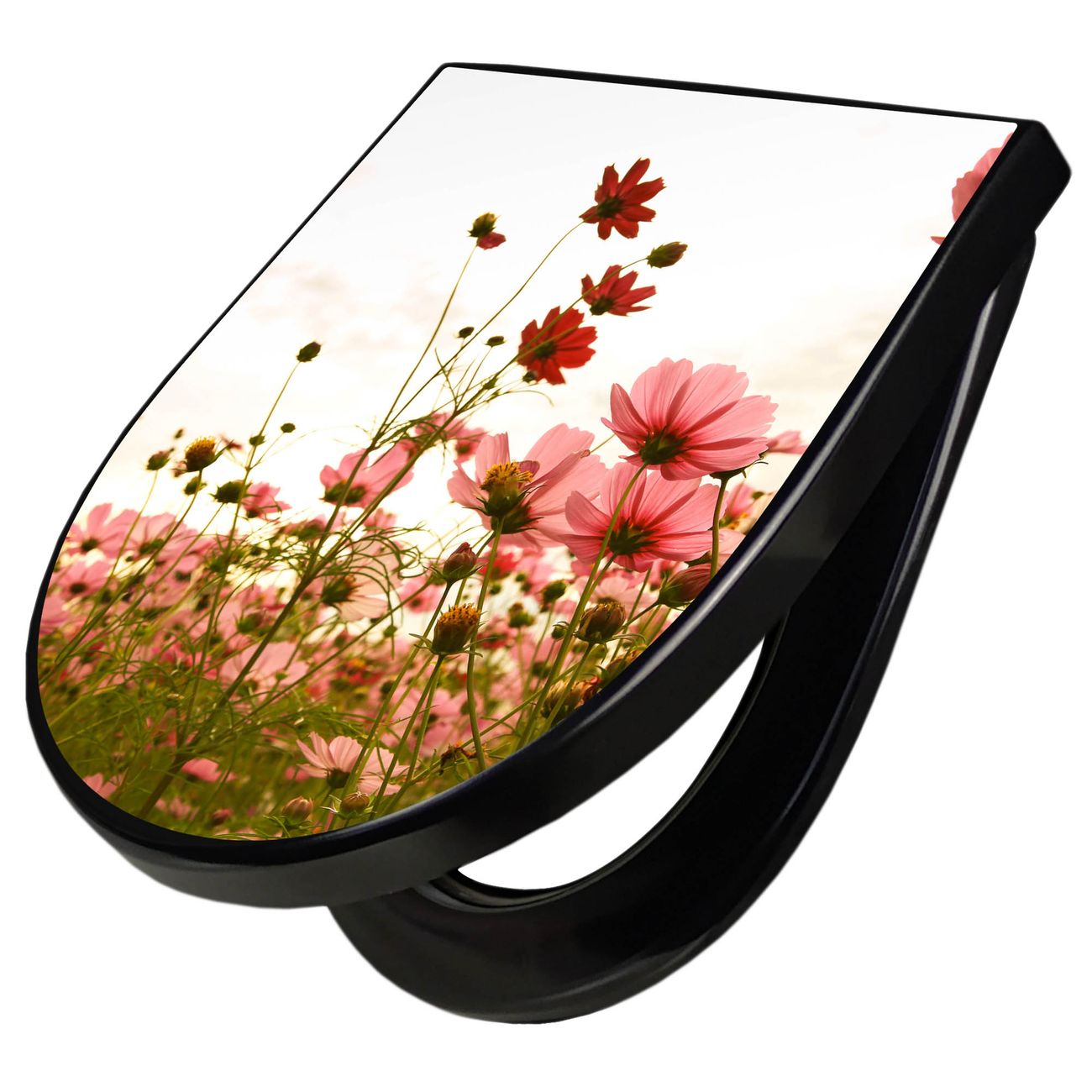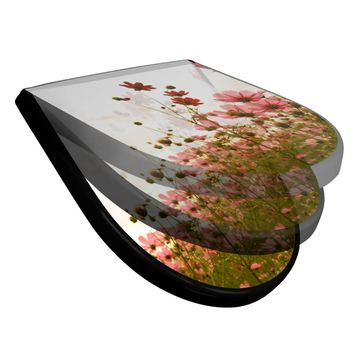 WC Sitz D-Form Schwarz mit Absenkautomatik Motiv Schmuckkörbchen
