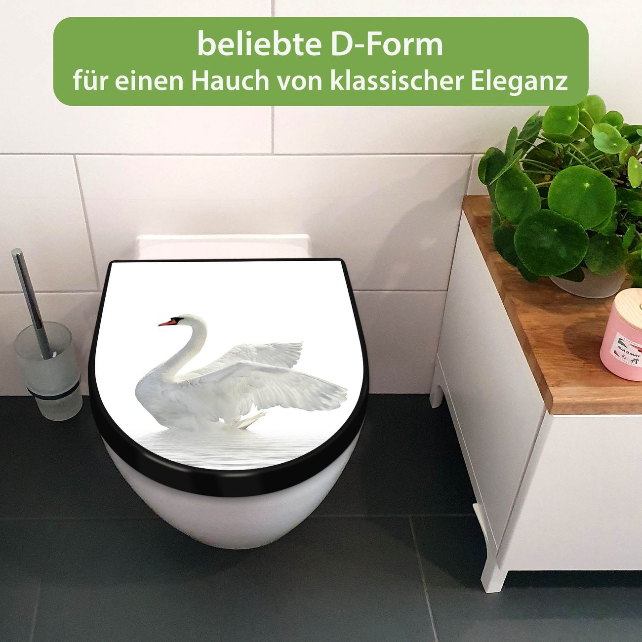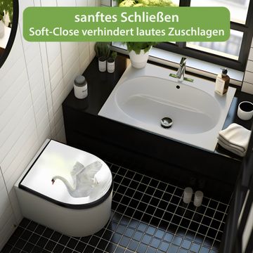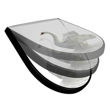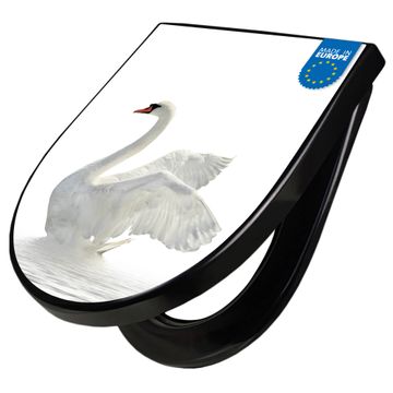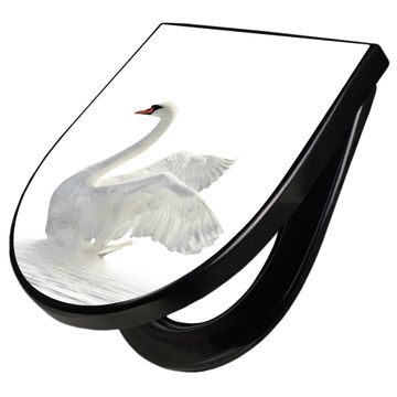 WC Sitz D-Form Schwarz mit Absenkautomatik Motiv Schwan