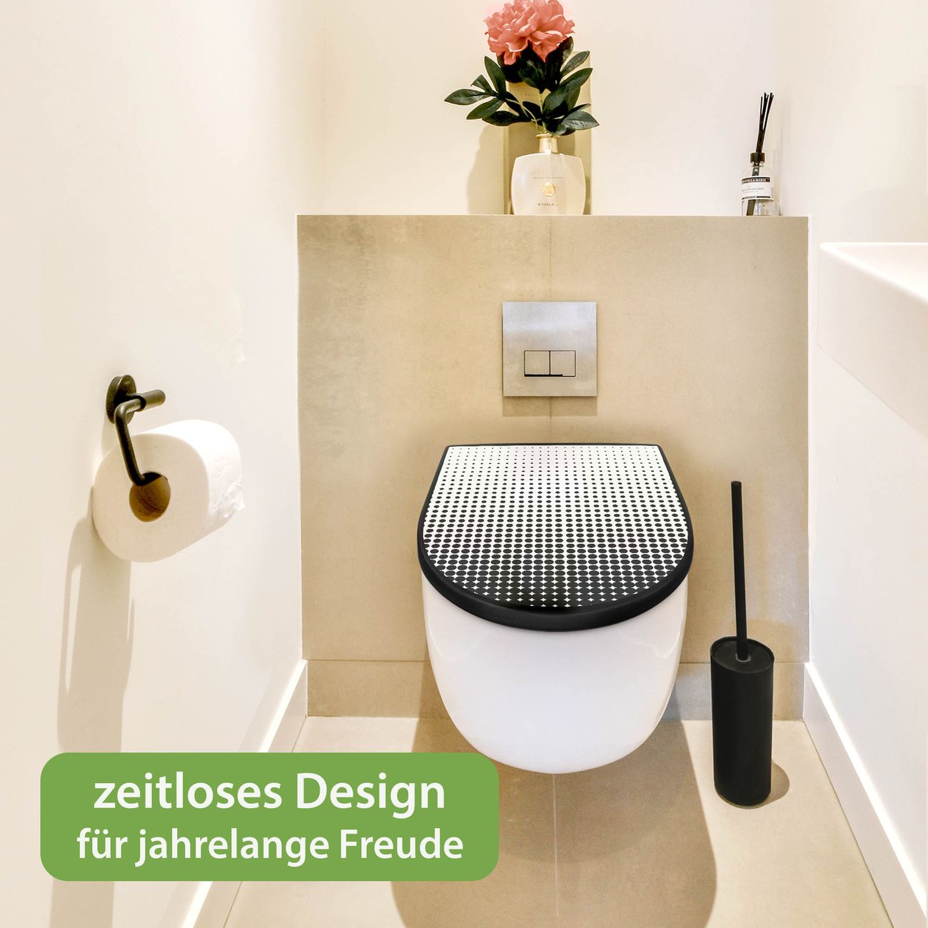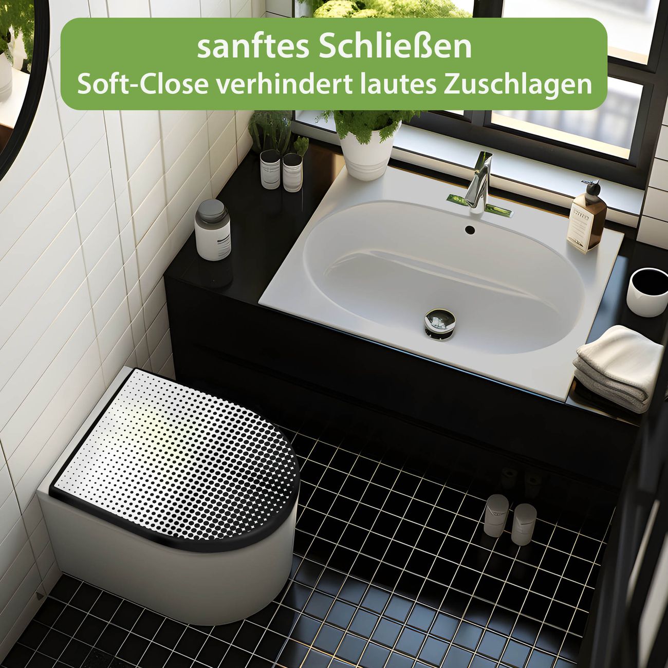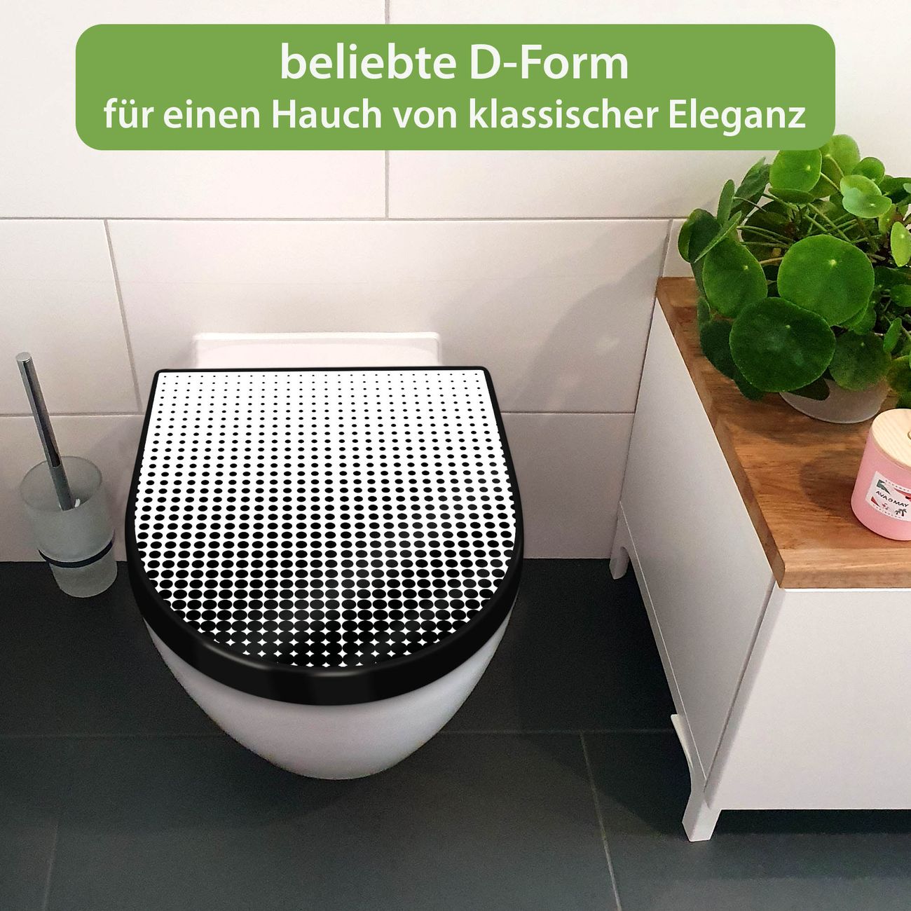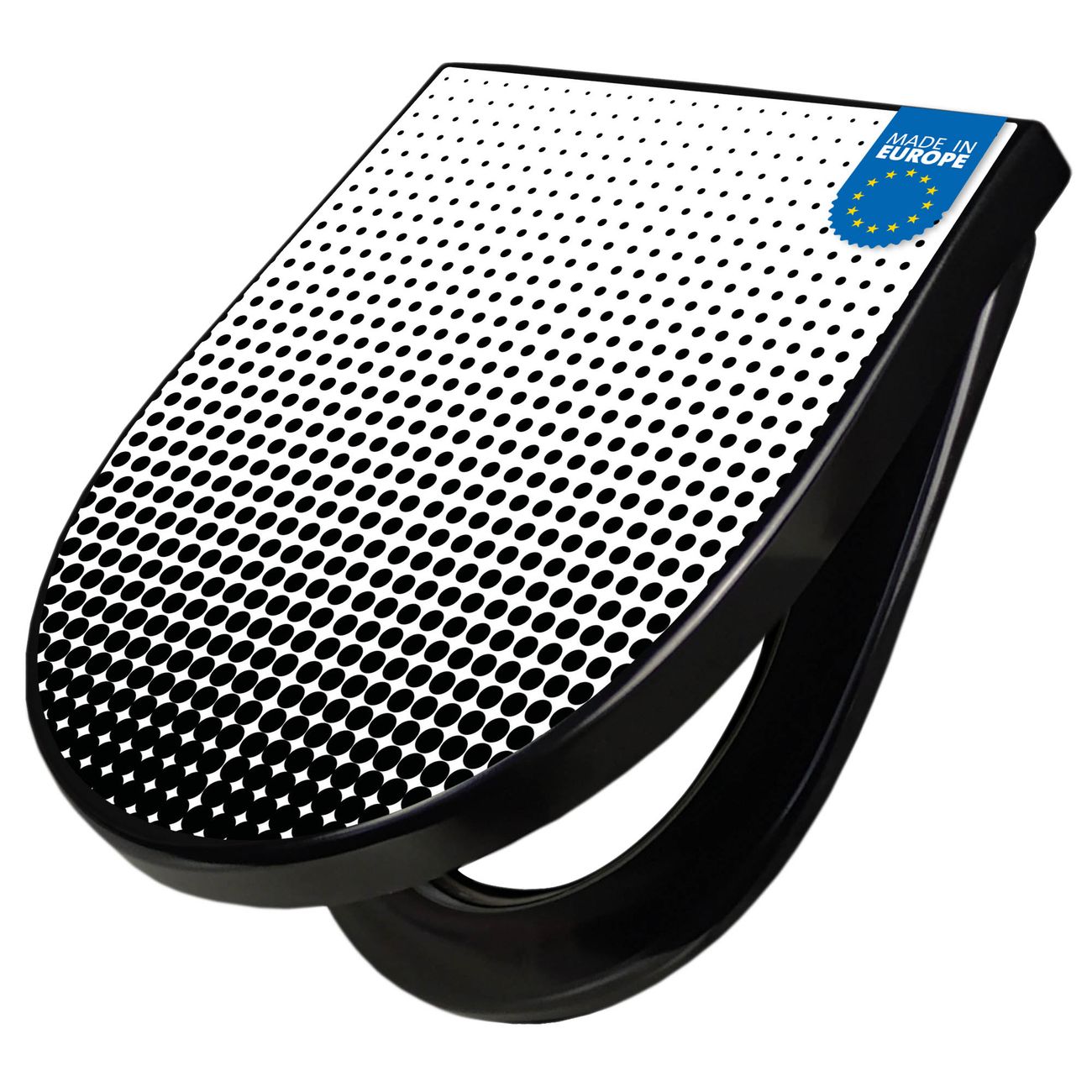 WC Sitz D-Form Schwarz mit Absenkautomatik Motiv Schwarz Weiß