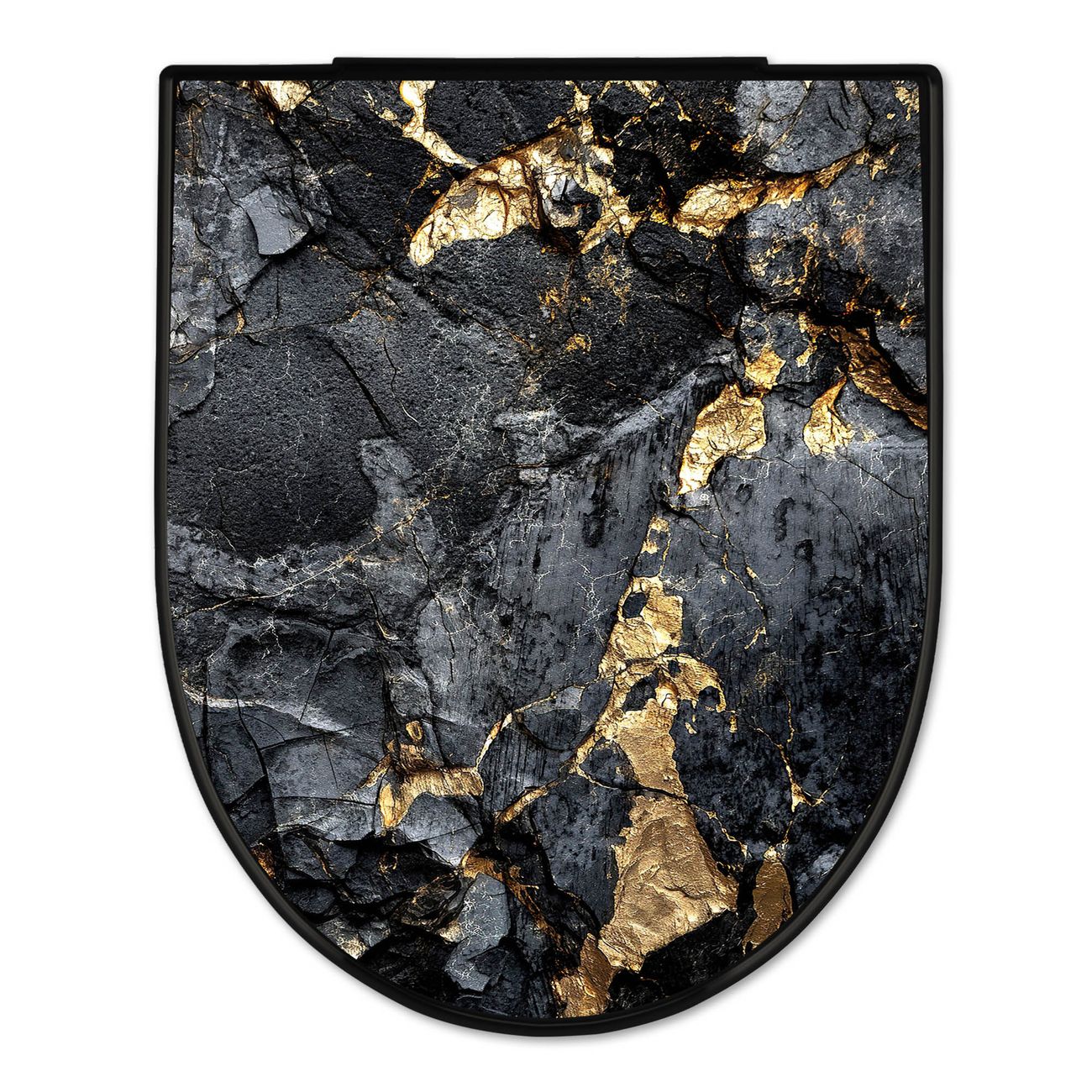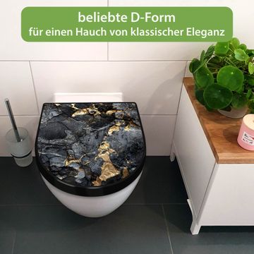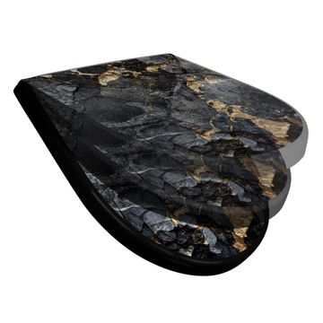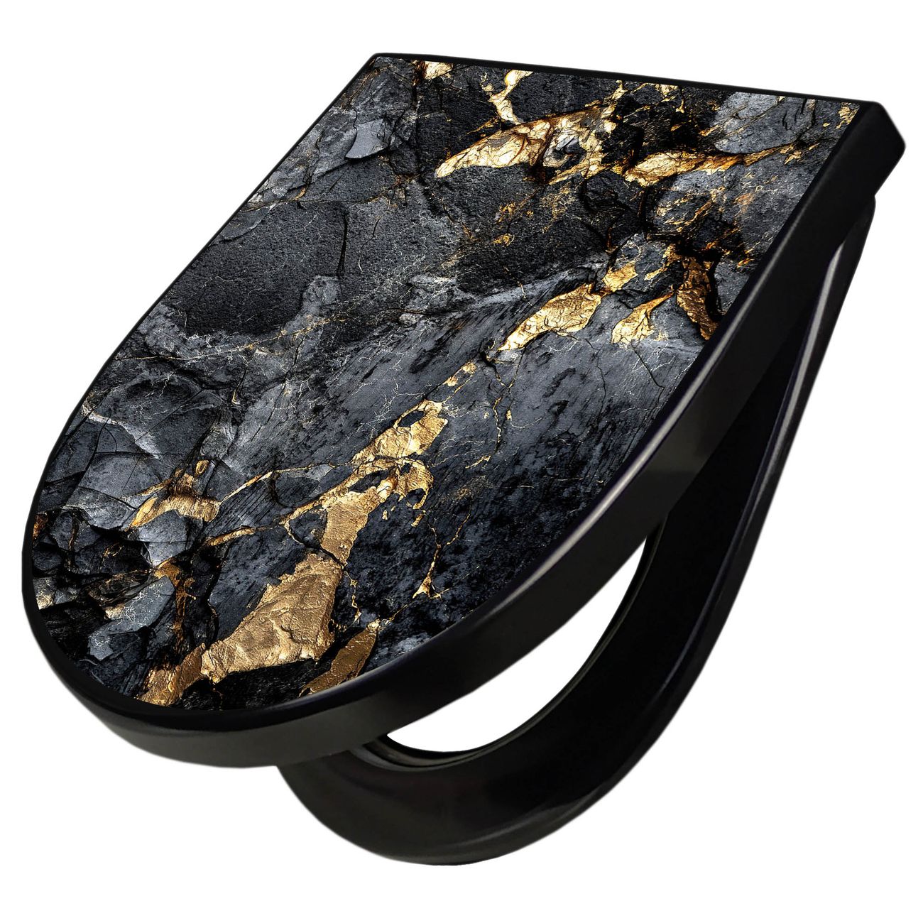 WC Sitz D-Form Schwarz mit Absenkautomatik Motiv Schwarzer Marmor mit Gold 1