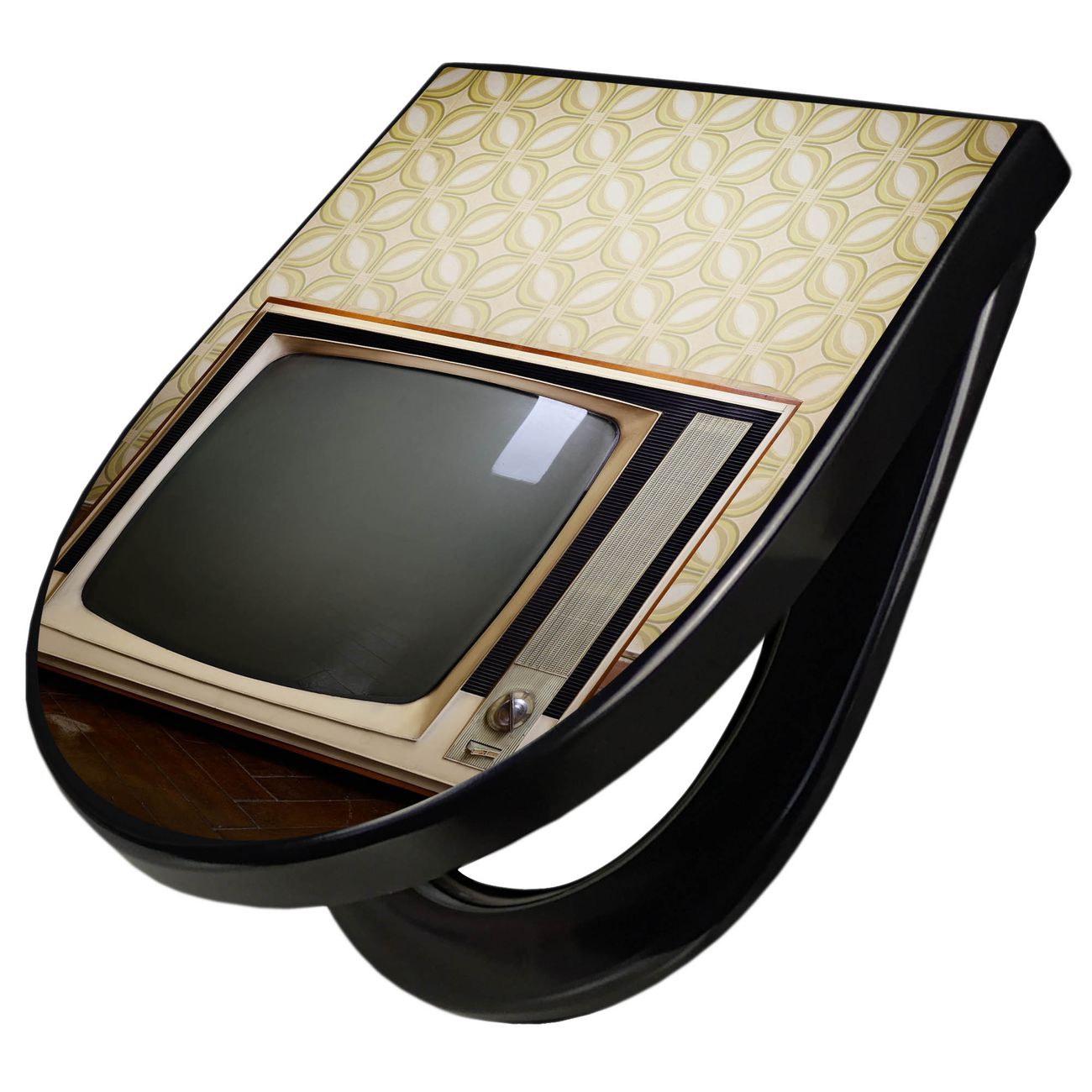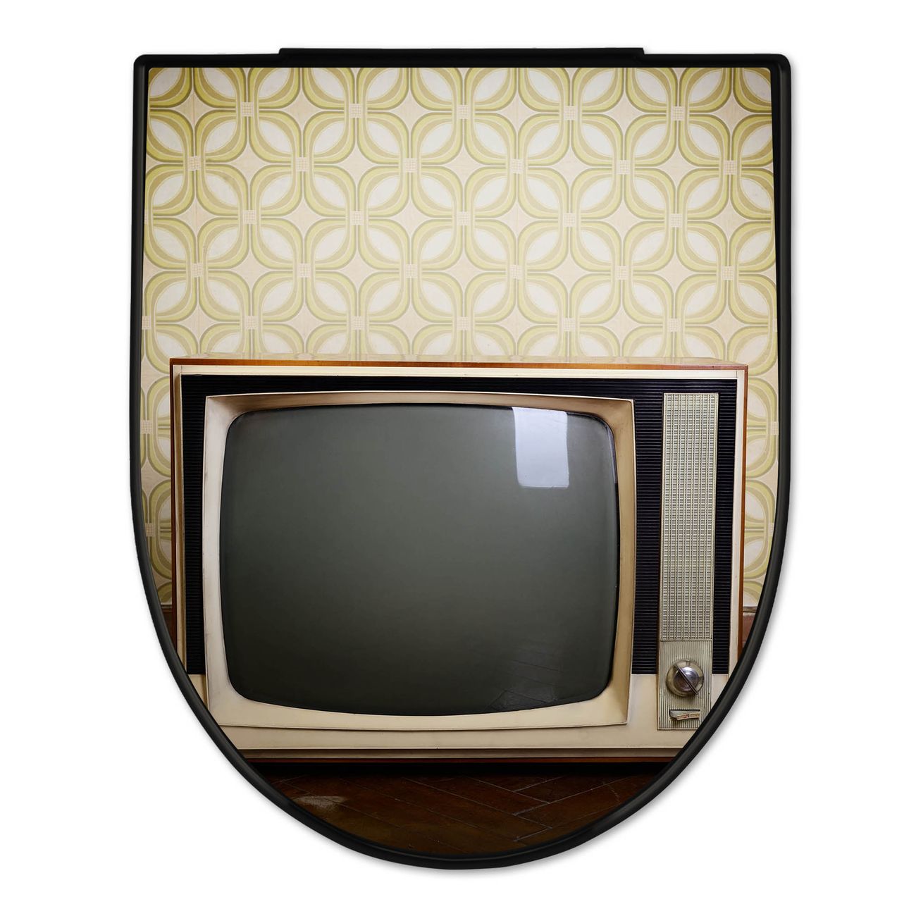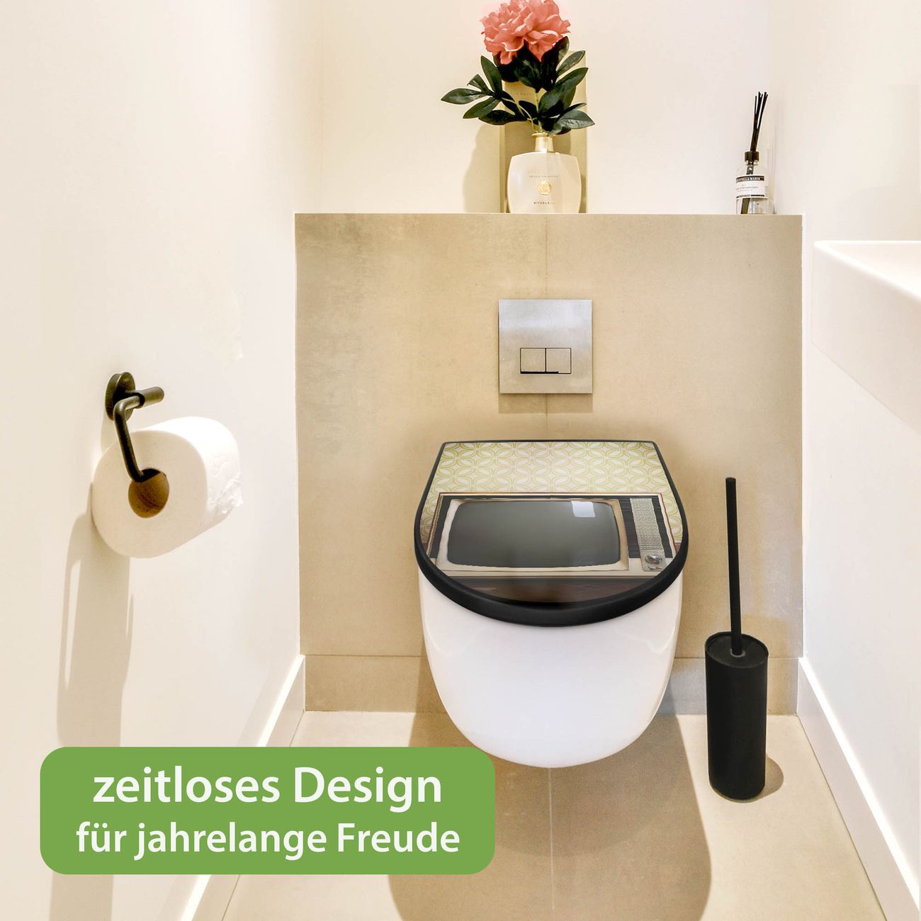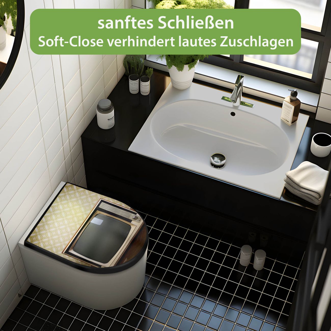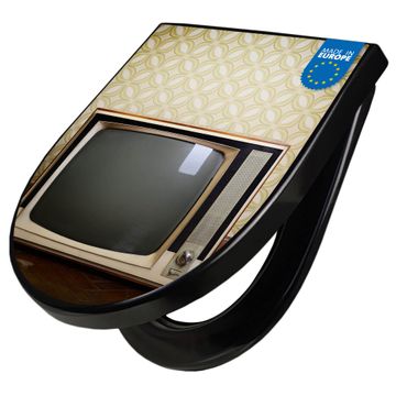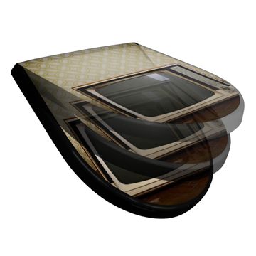 WC Sitz D-Form Schwarz mit Absenkautomatik Motiv Schwarzweiß TV