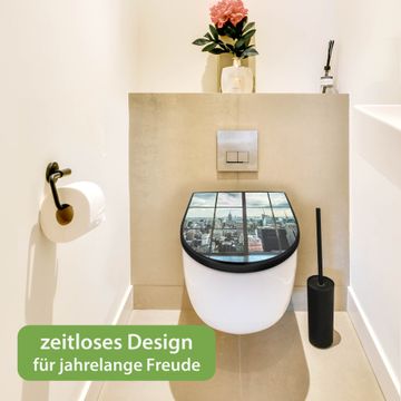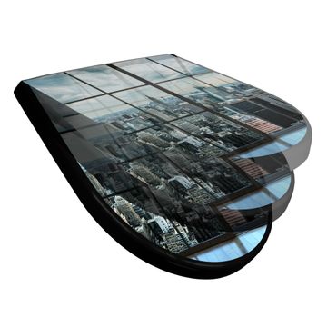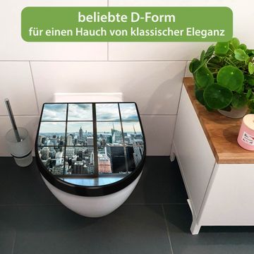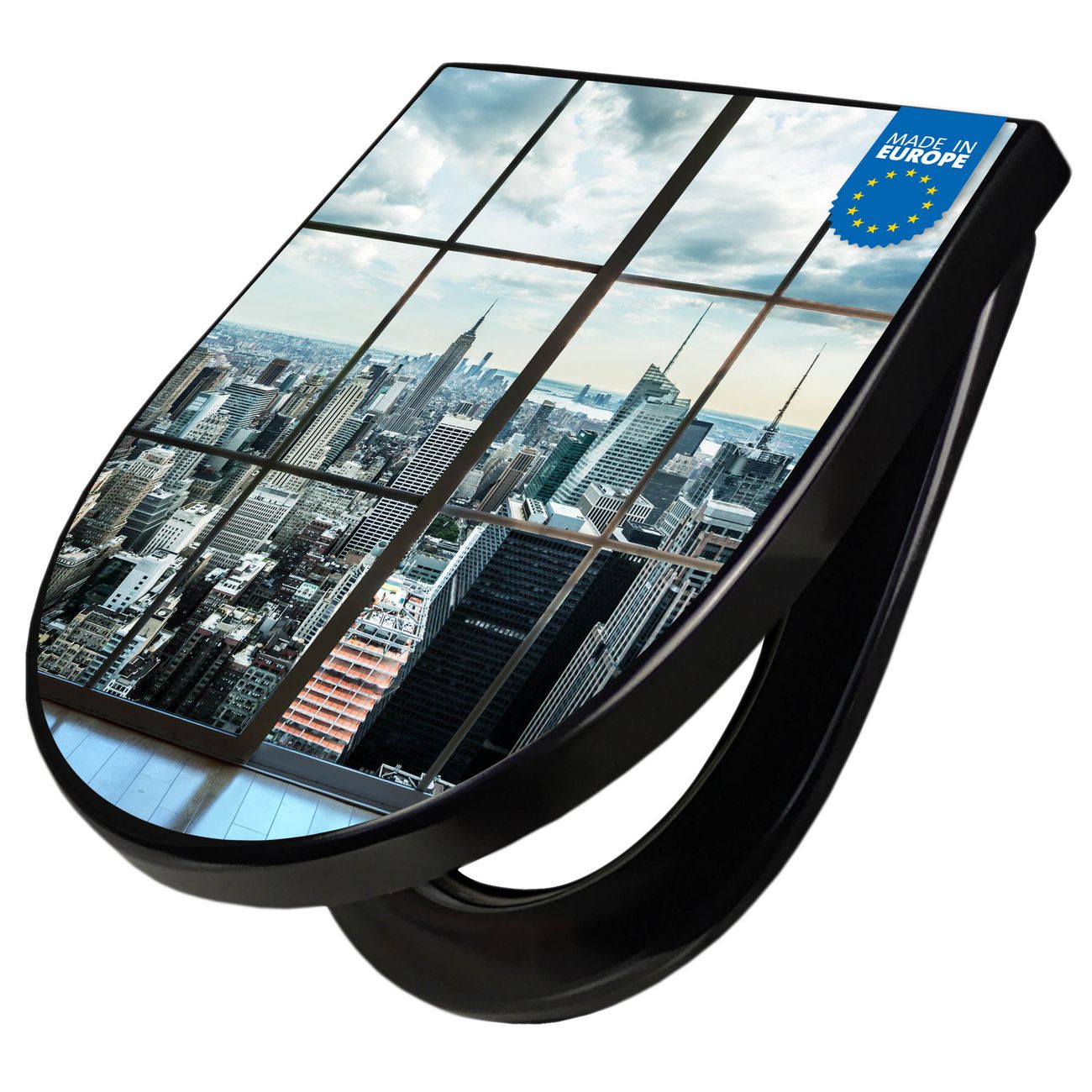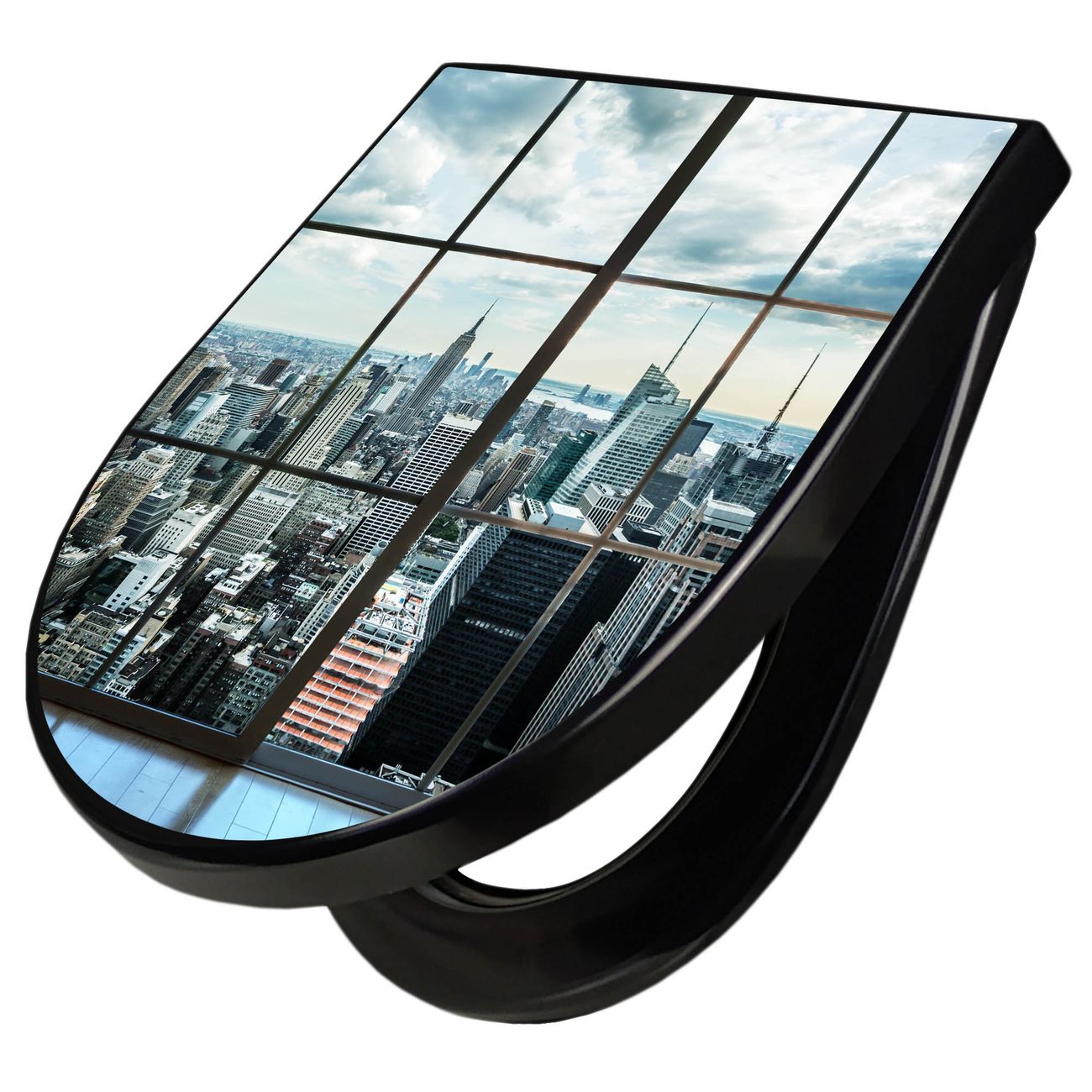 WC Sitz D-Form Schwarz mit Absenkautomatik Motiv Skyline Manhattan
