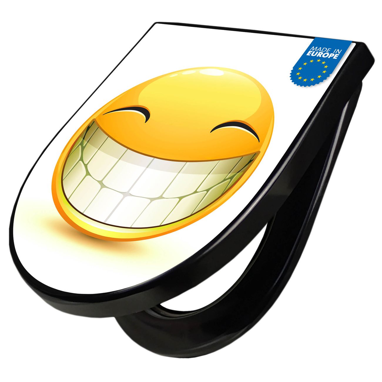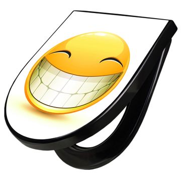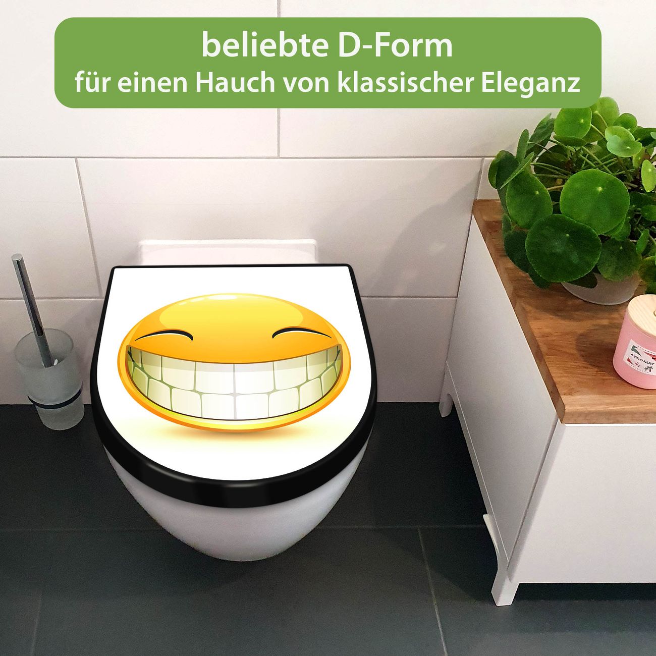 WC Sitz D-Form Schwarz mit Absenkautomatik Motiv Smile
