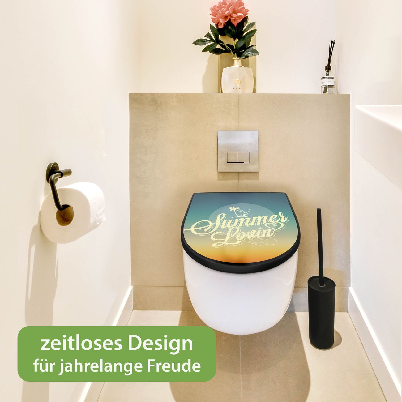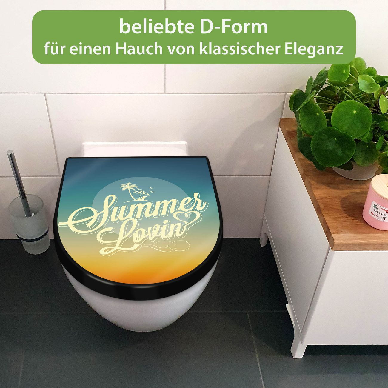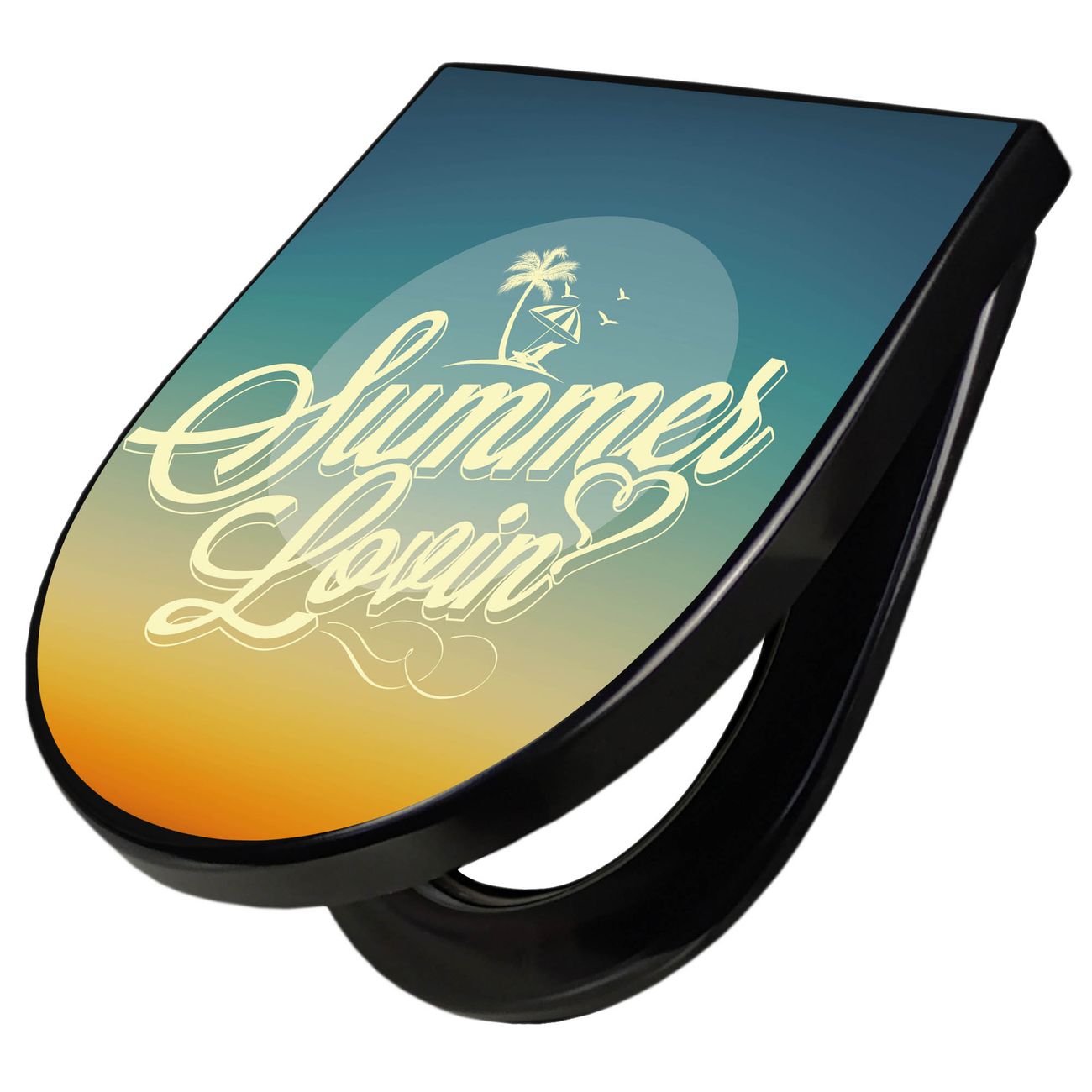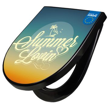 WC Sitz D-Form Schwarz mit Absenkautomatik Motiv Sommer Lovin