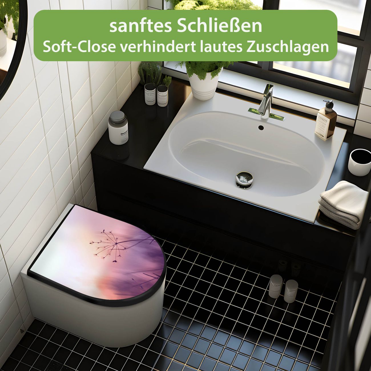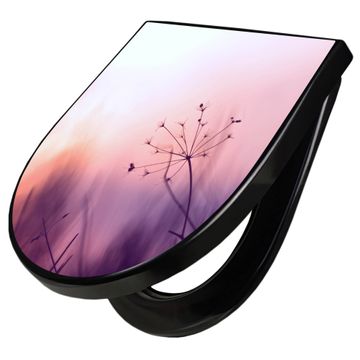 WC Sitz D-Form Schwarz mit Absenkautomatik Motiv Sommergras