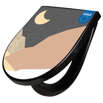 WC Sitz D-Form Schwarz mit Absenkautomatik Motiv Sommertag Abstrakt