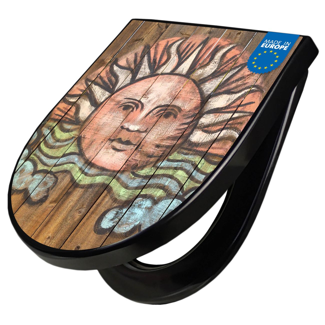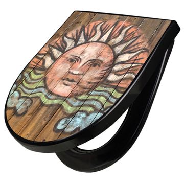 WC Sitz D-Form Schwarz mit Absenkautomatik Motiv Sonne