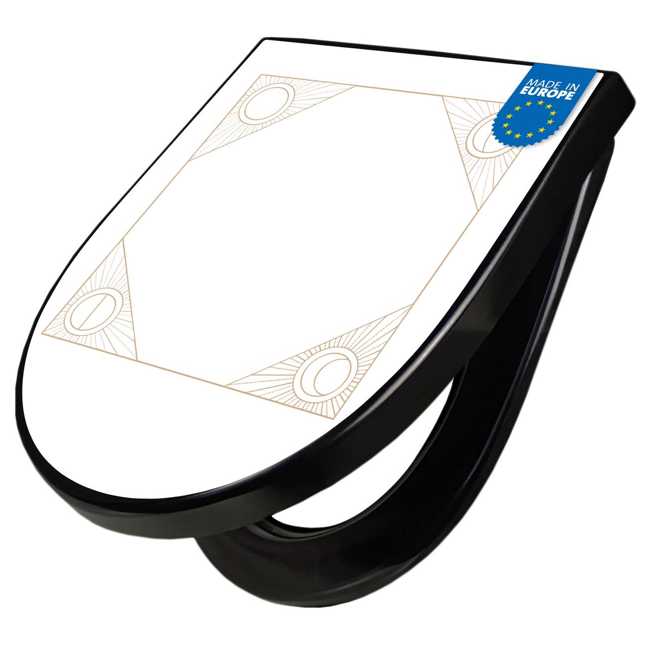 WC Sitz D-Form Schwarz mit Absenkautomatik Motiv Sonnen- und Mondrahmen
