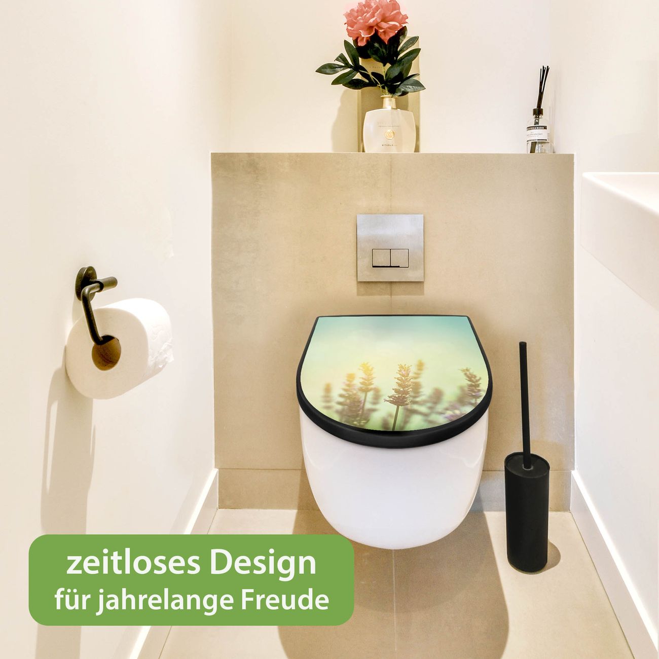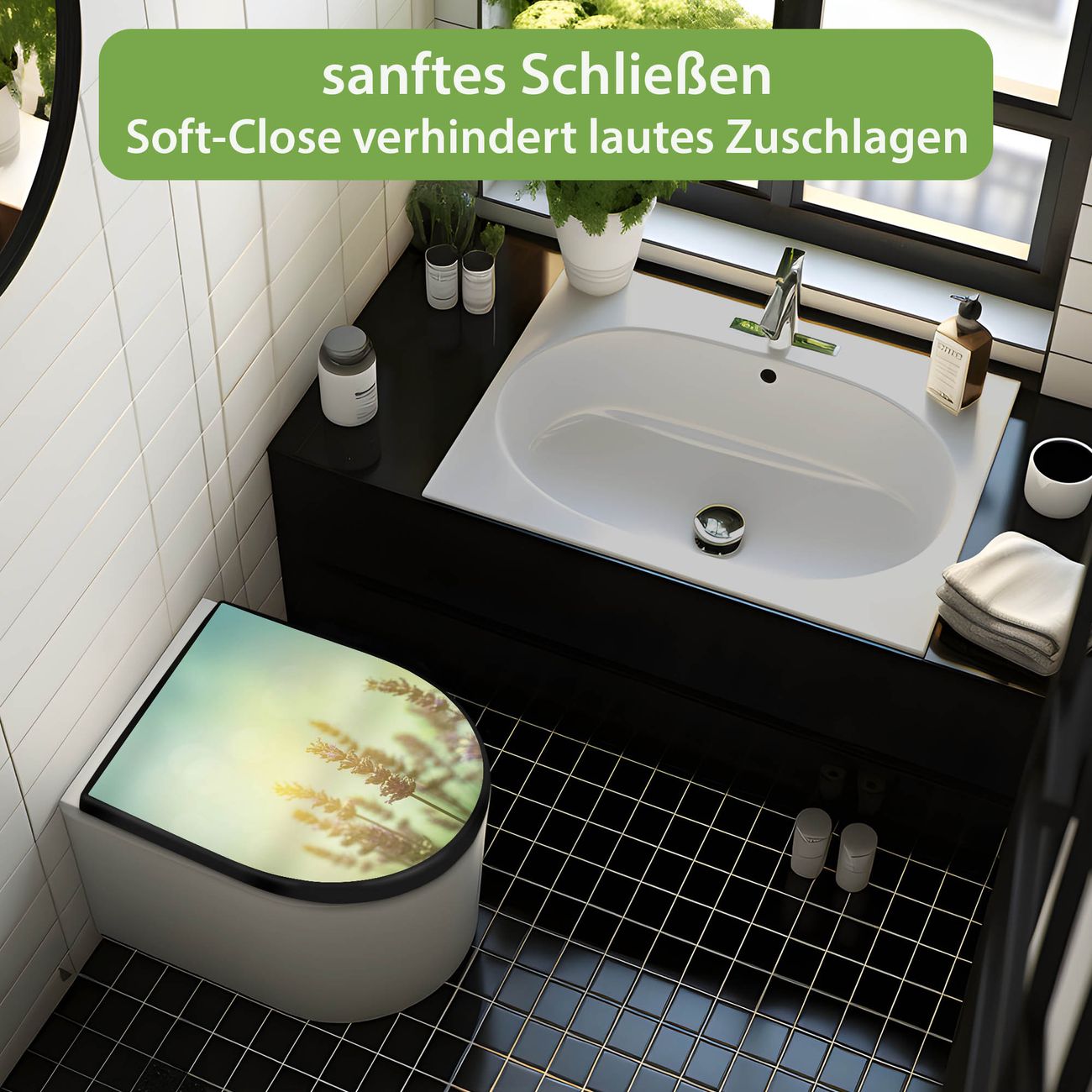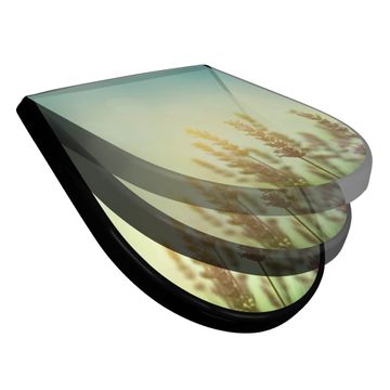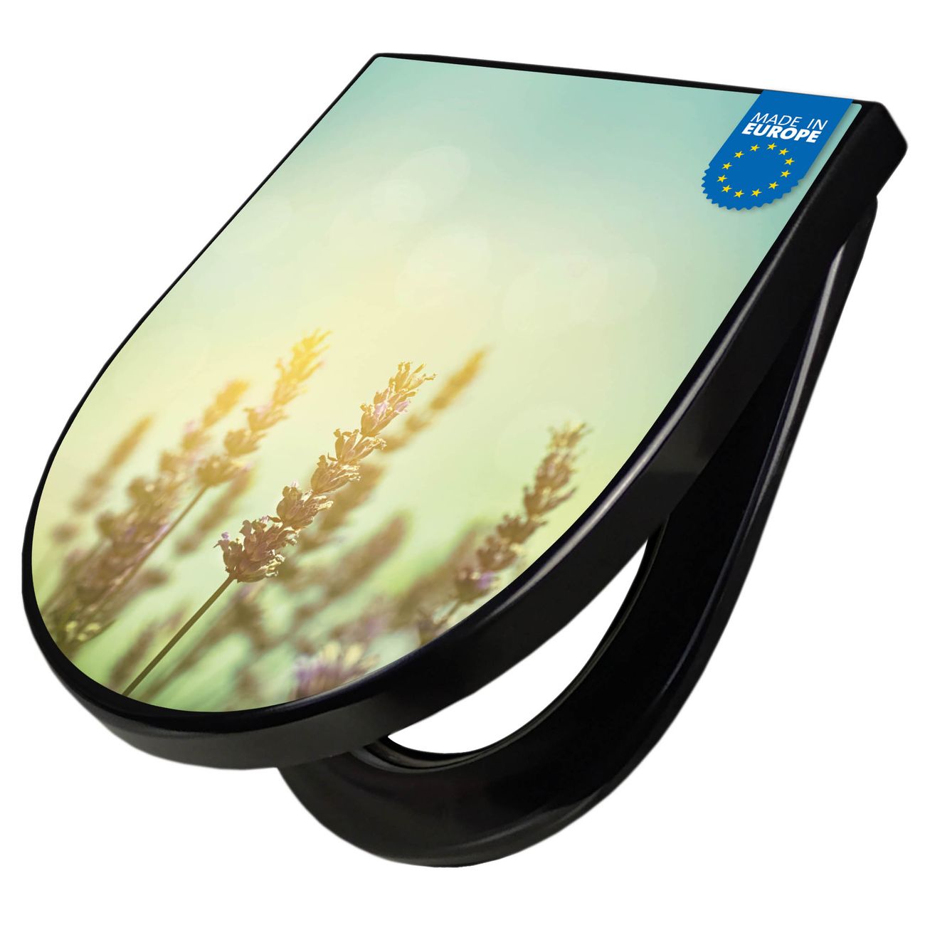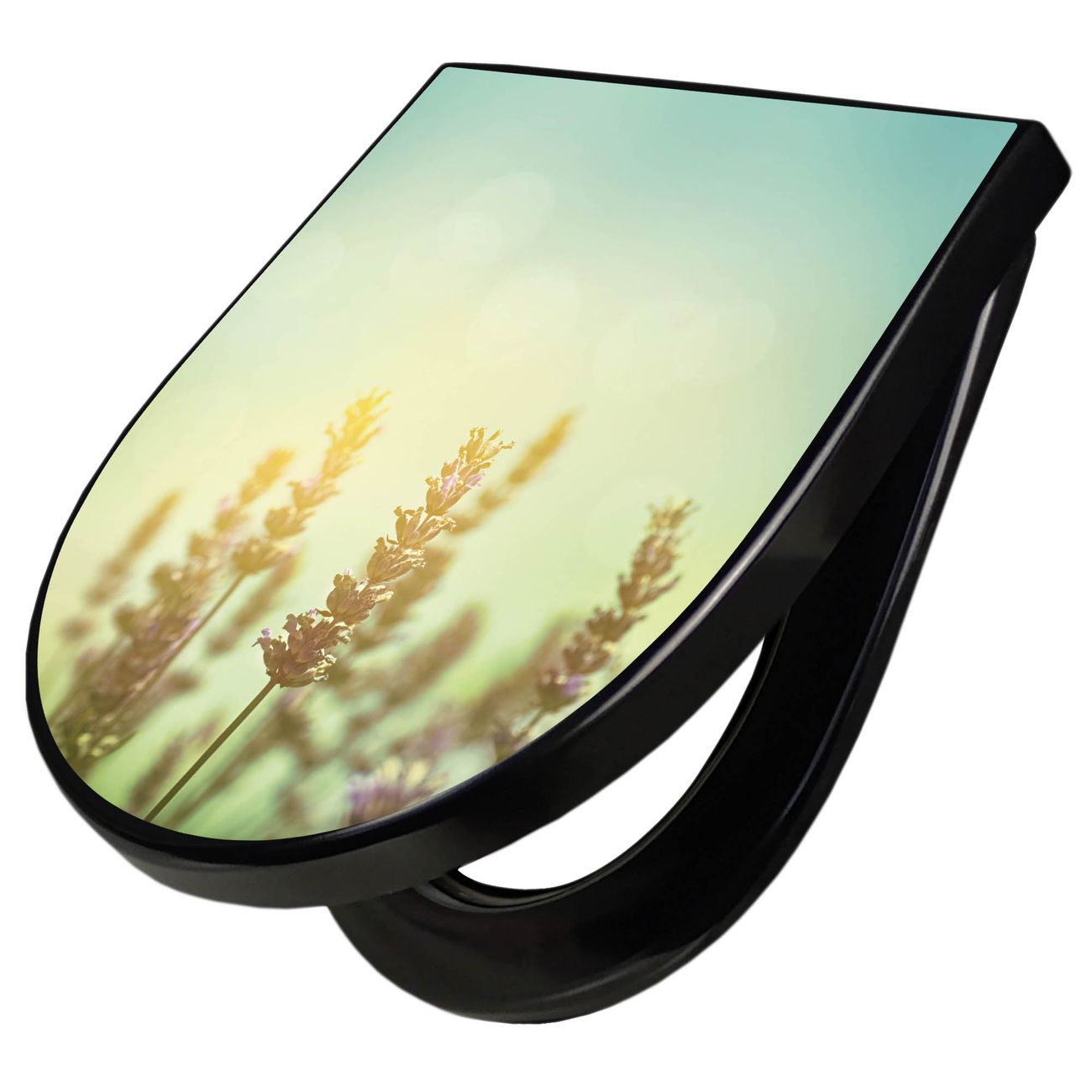 WC Sitz D-Form Schwarz mit Absenkautomatik Motiv Sonnenlavendel