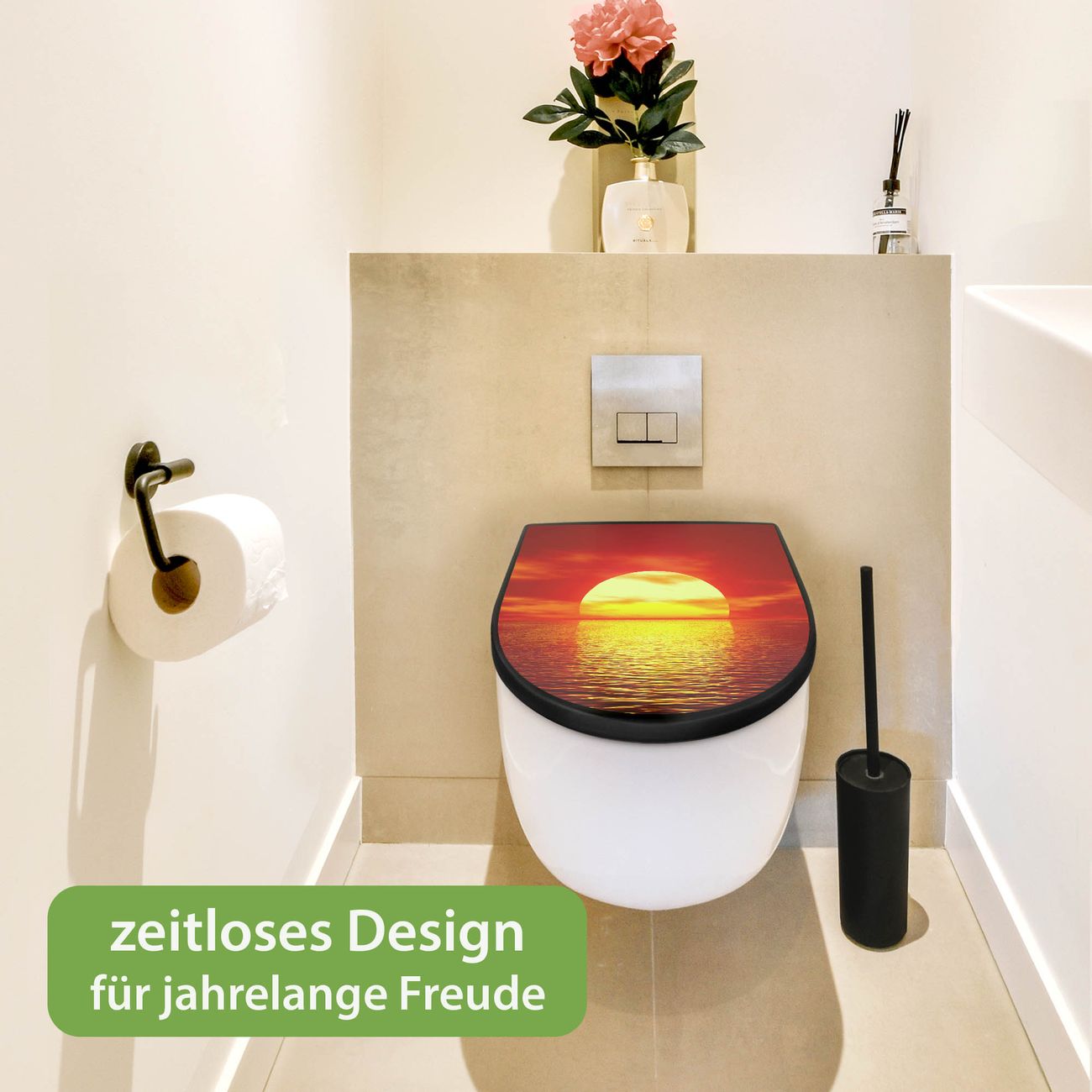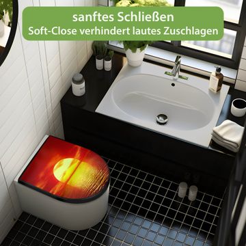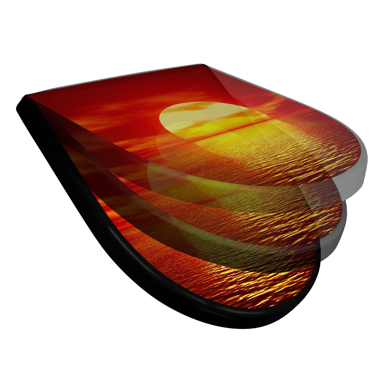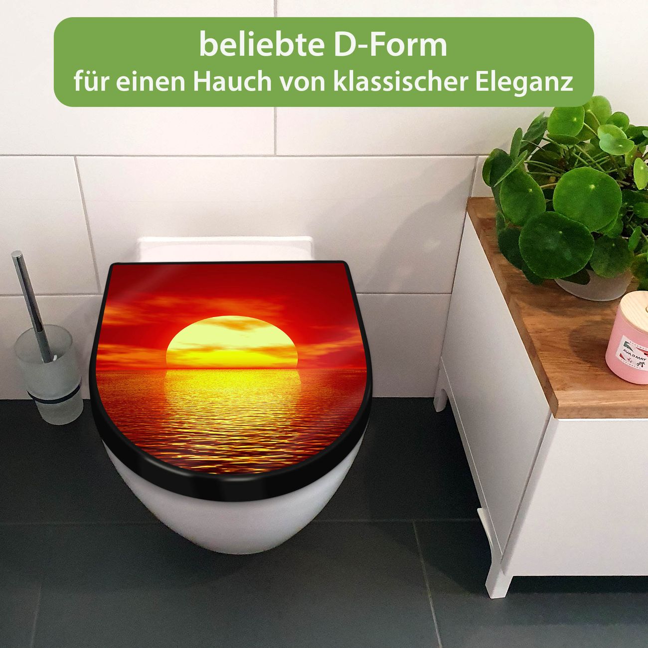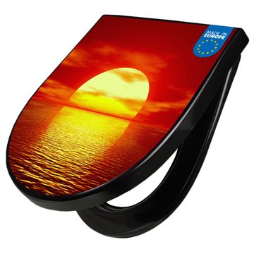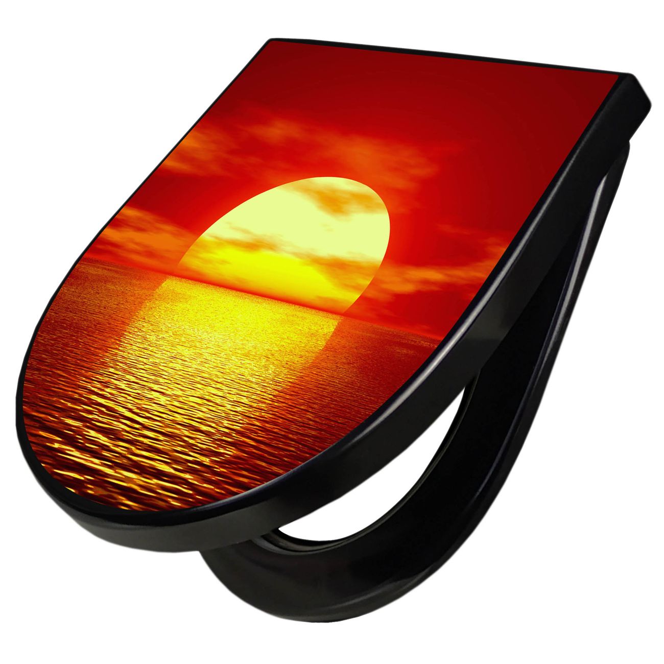 WC Sitz D-Form Schwarz mit Absenkautomatik Motiv Sonnenuntergang