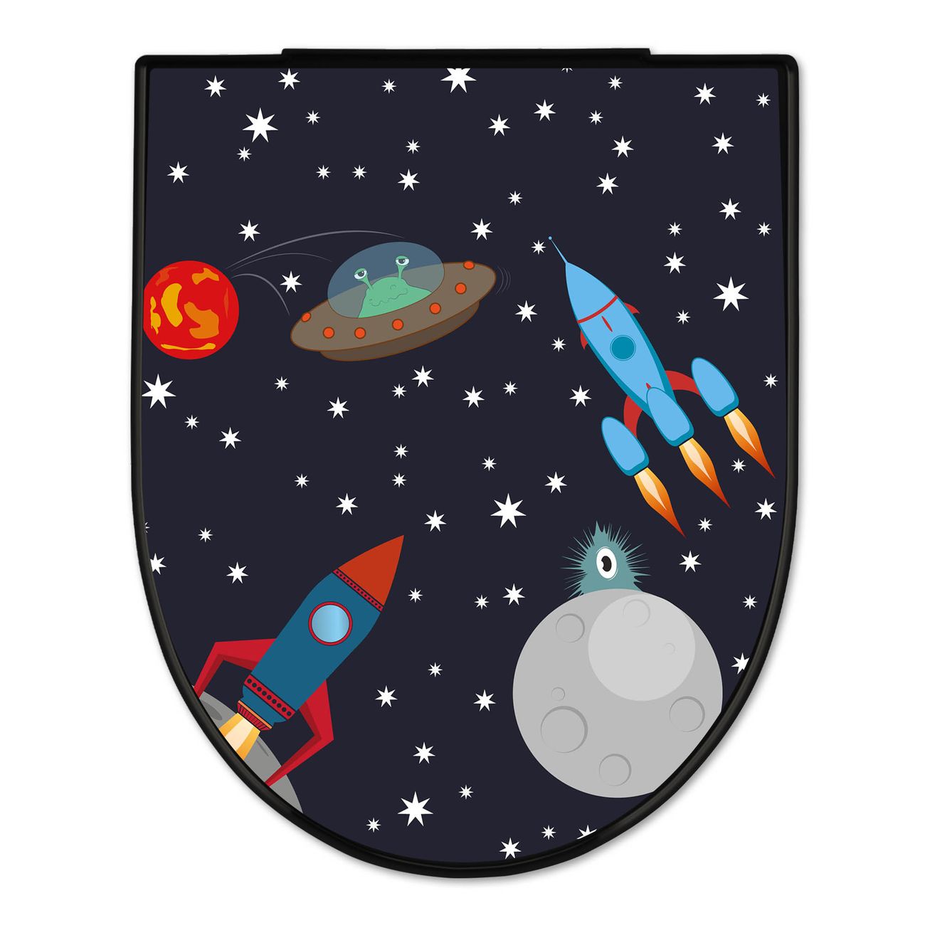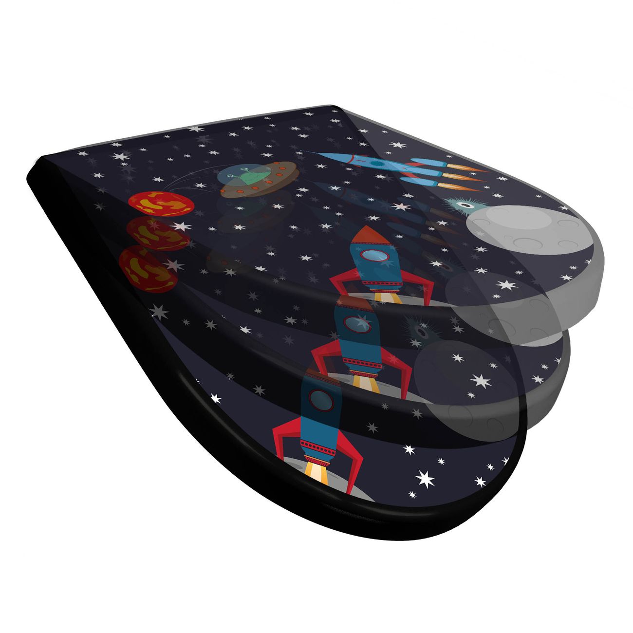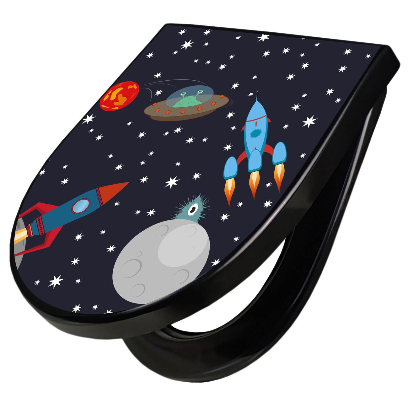 WC Sitz D-Form Schwarz mit Absenkautomatik Motiv Space Traffic