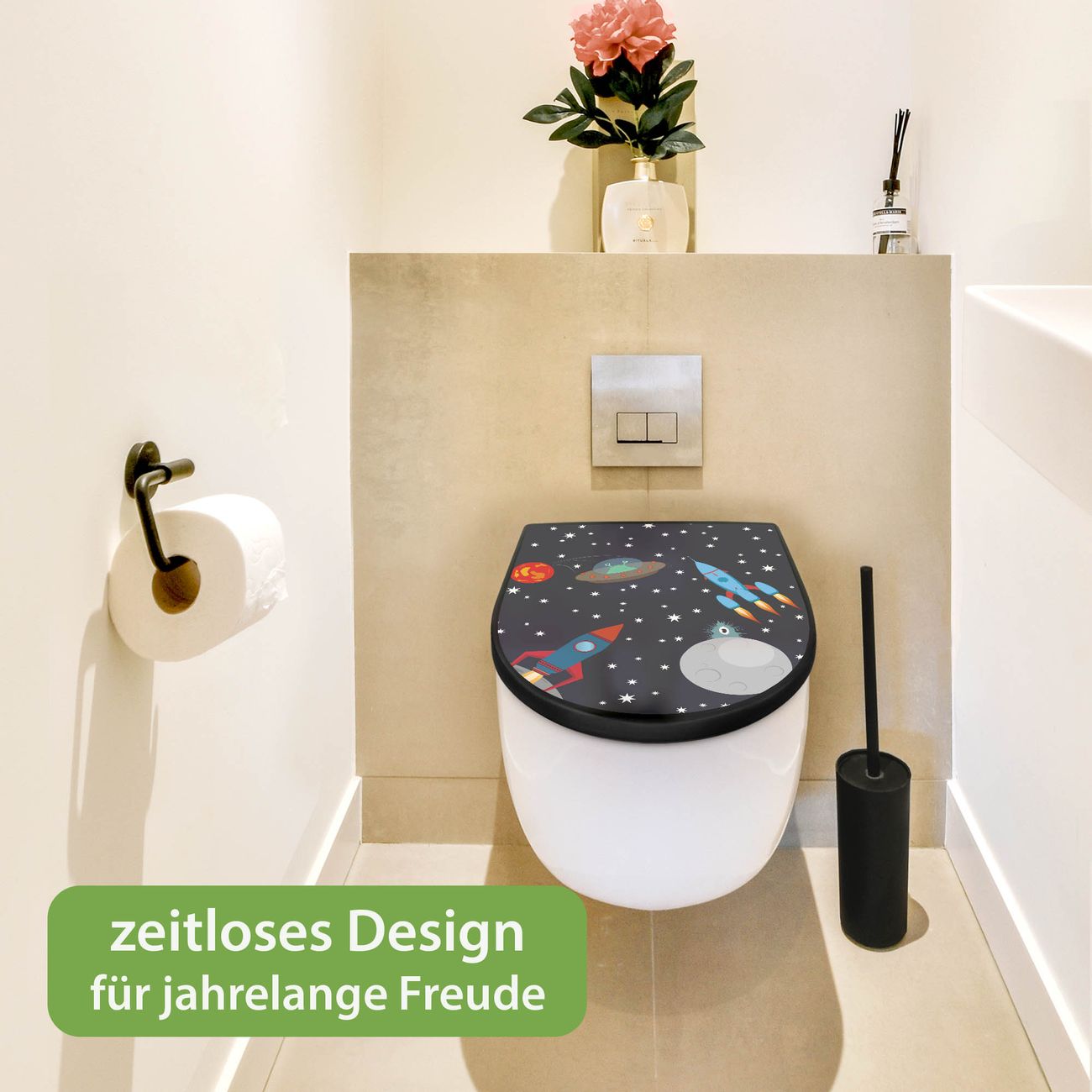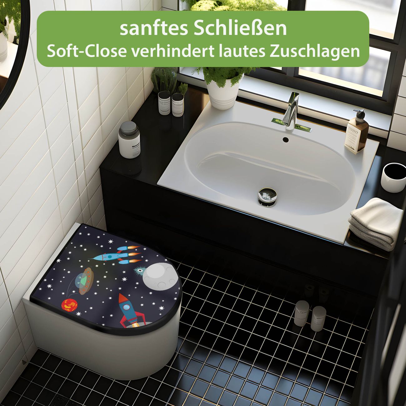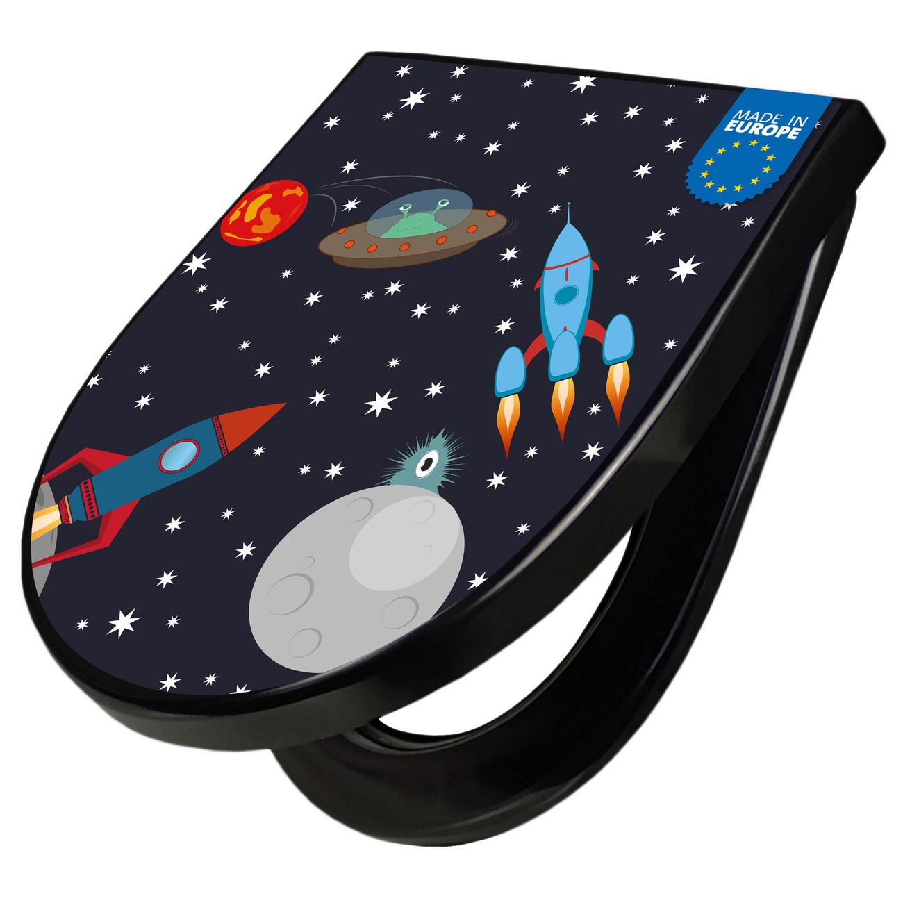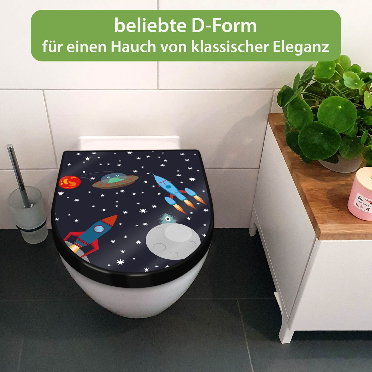 WC Sitz D-Form Schwarz mit Absenkautomatik Motiv Space Traffic
