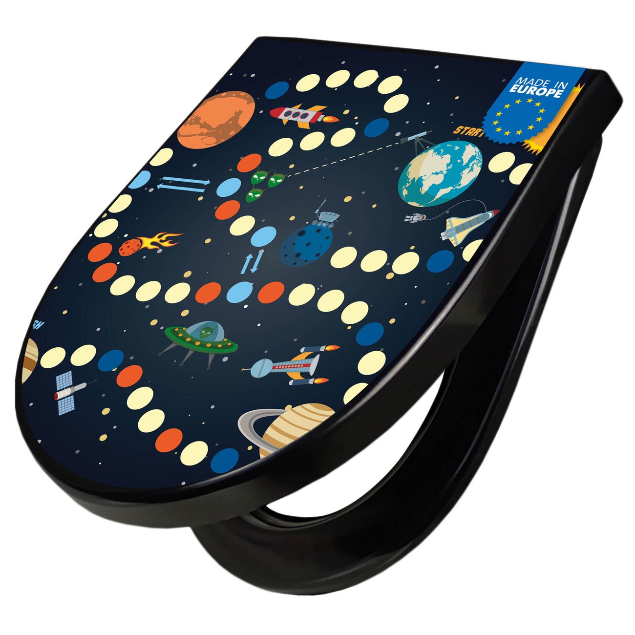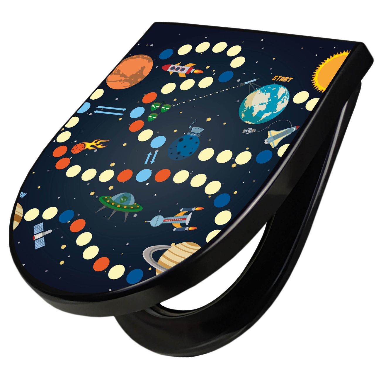 WC Sitz D-Form Schwarz mit Absenkautomatik Motiv Spielbrett 5