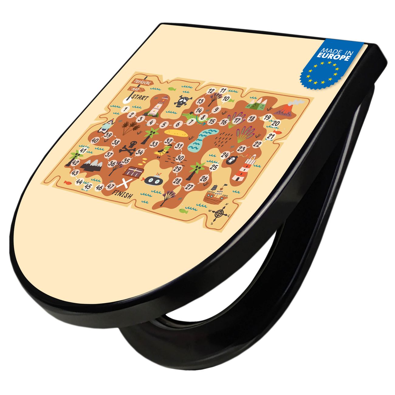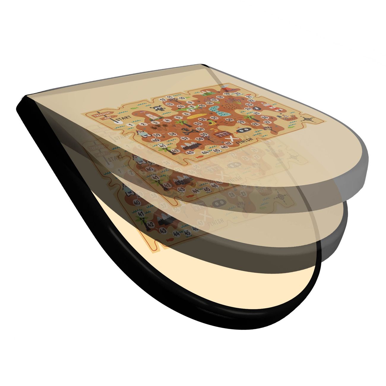 WC Sitz D-Form Schwarz mit Absenkautomatik Motiv Spielbrett 6