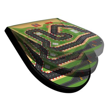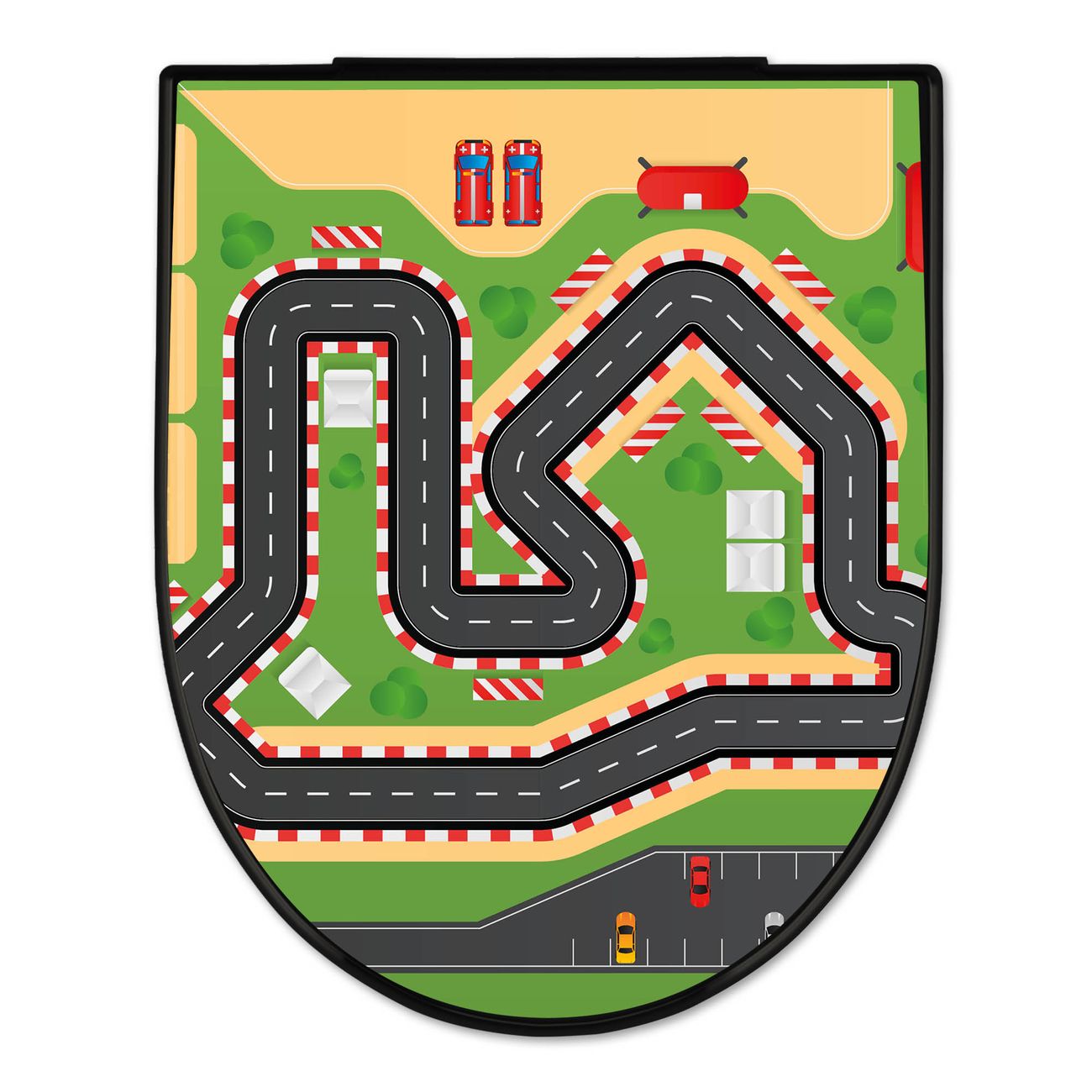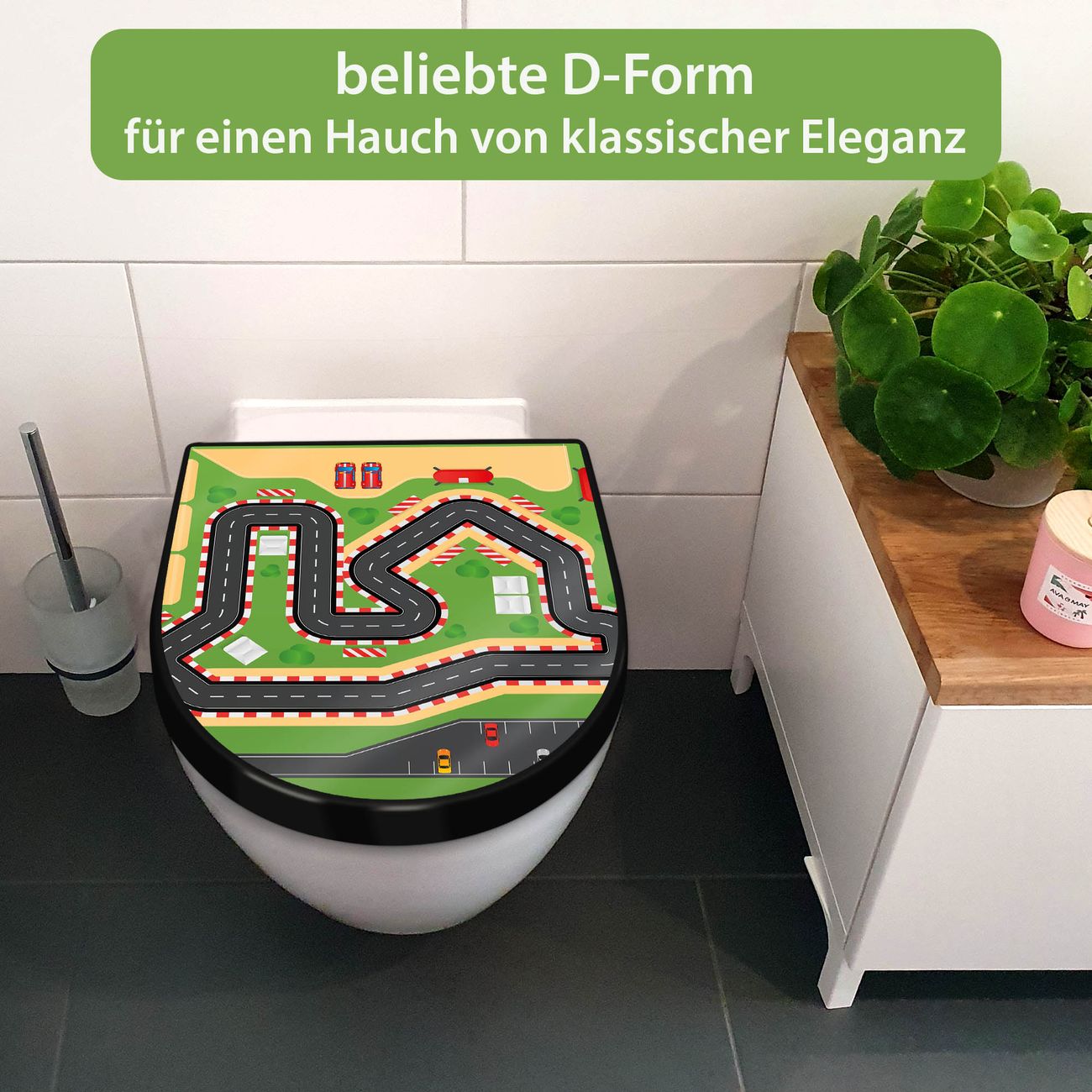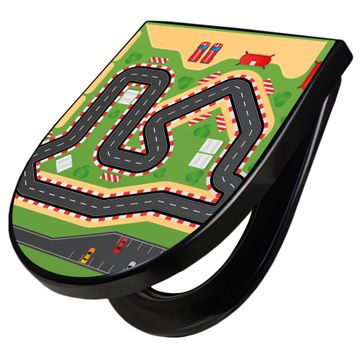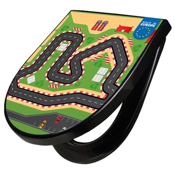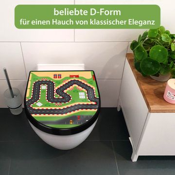 WC Sitz D-Form Schwarz mit Absenkautomatik Motiv Spielstraße 1