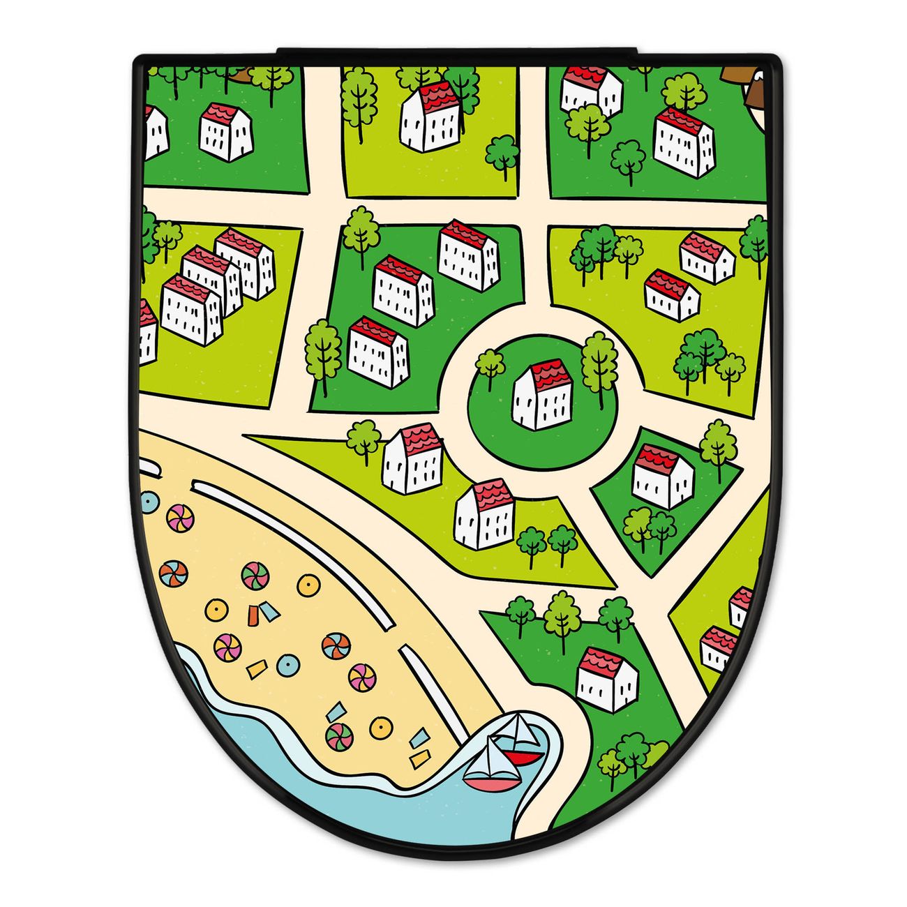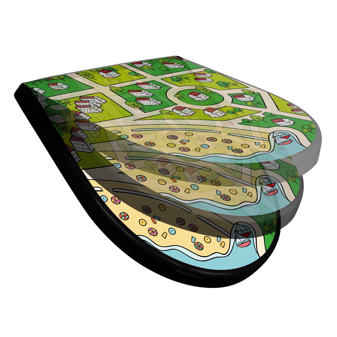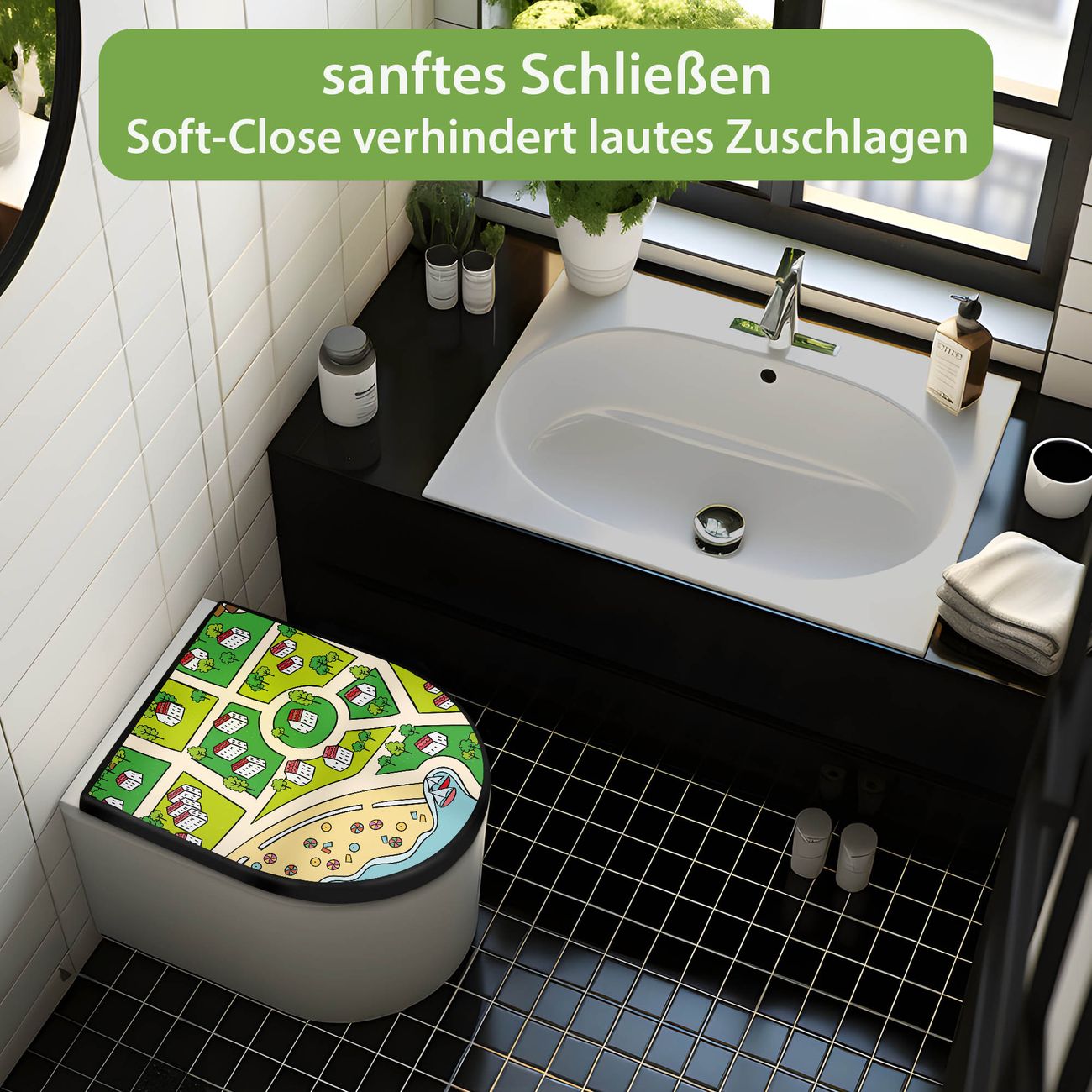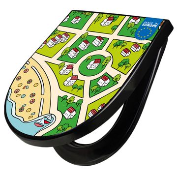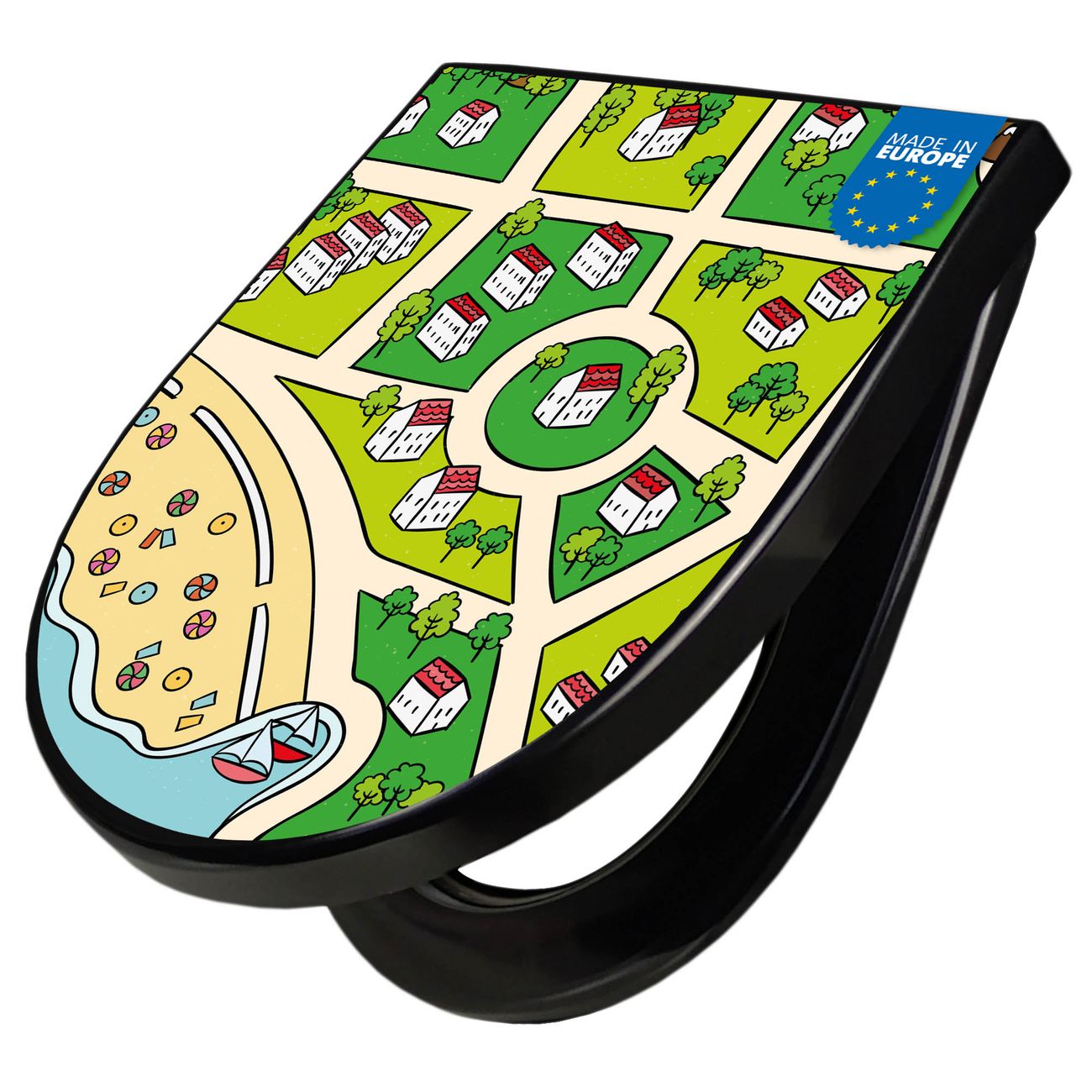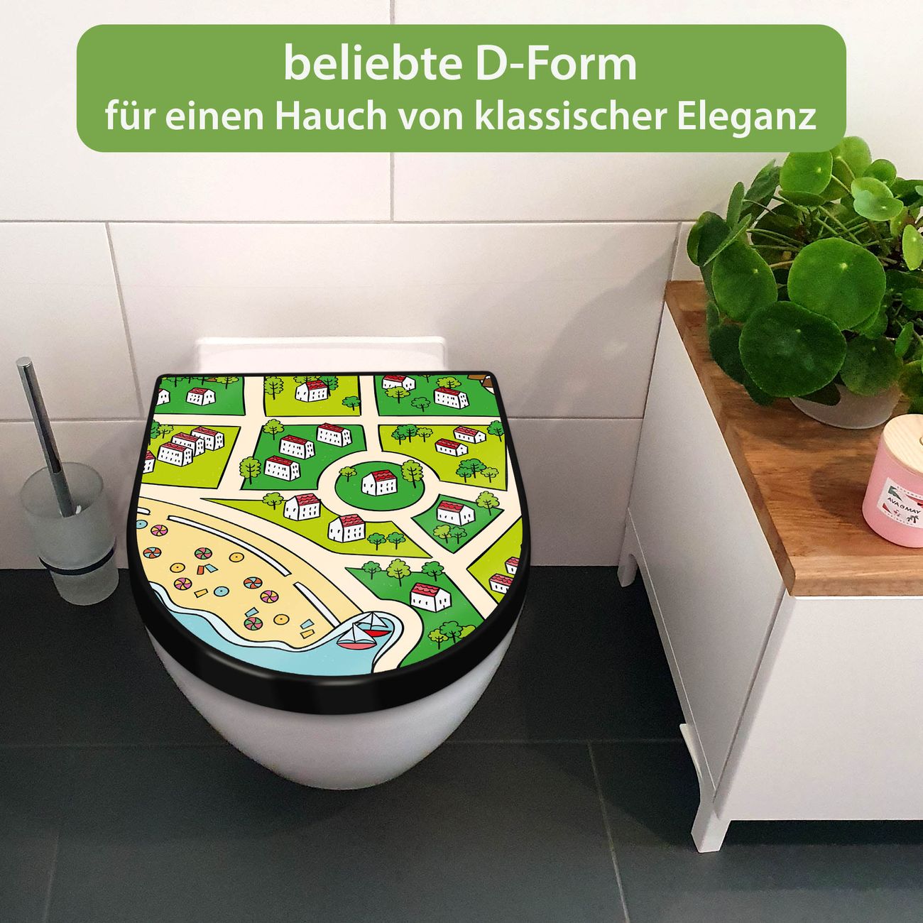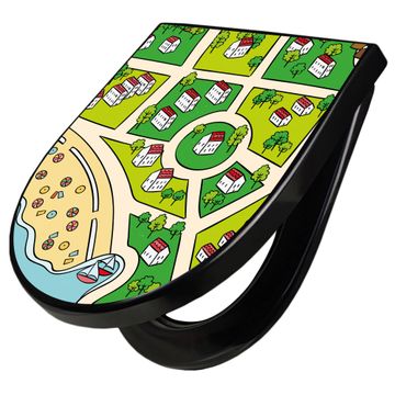 WC Sitz D-Form Schwarz mit Absenkautomatik Motiv Spielstraße 5