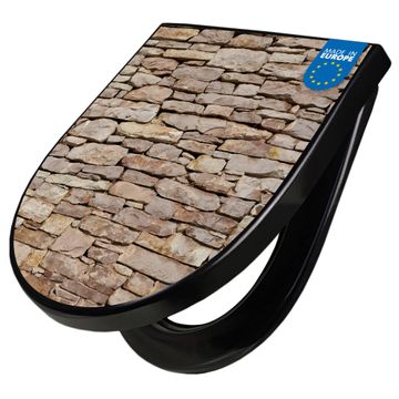 WC Sitz D-Form Schwarz mit Absenkautomatik Motiv Stadtmauer