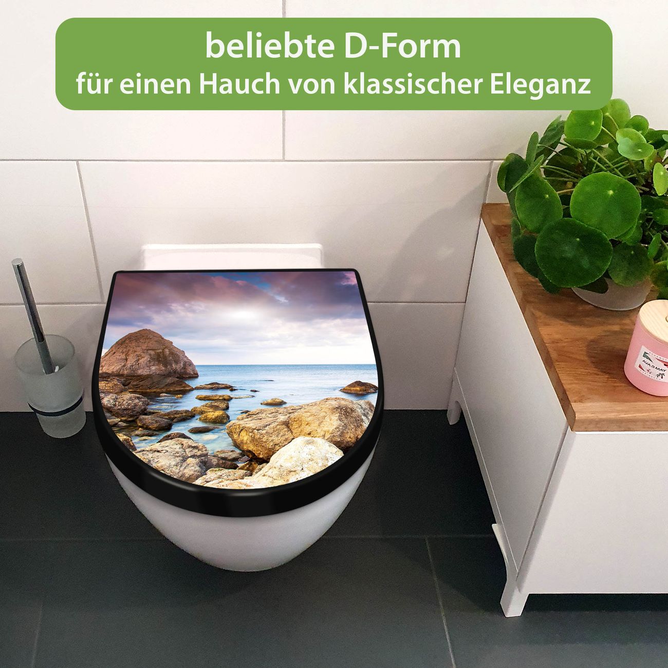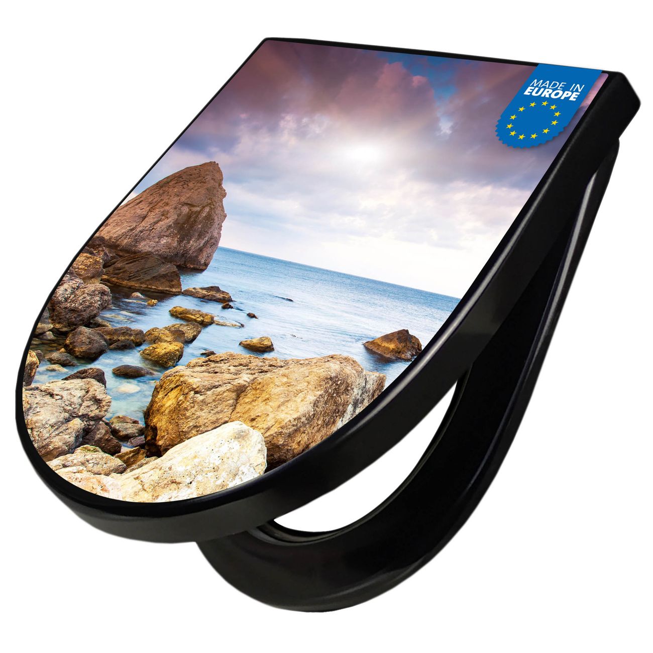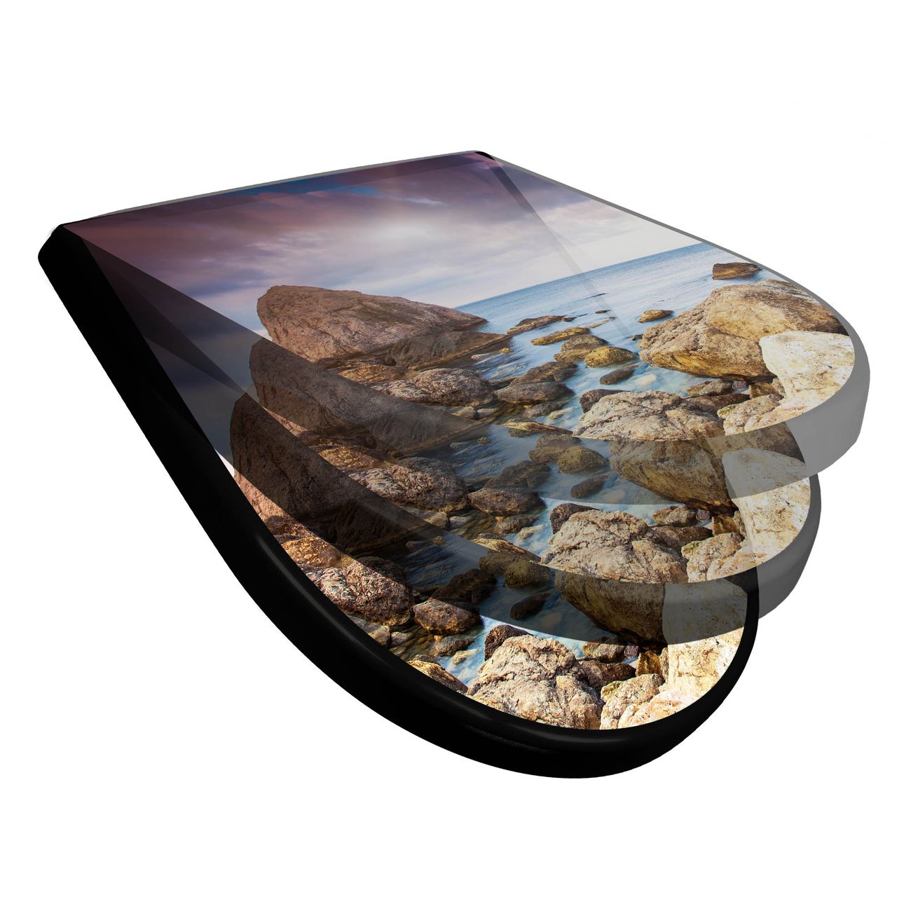 WC Sitz D-Form Schwarz mit Absenkautomatik Motiv Steinbucht