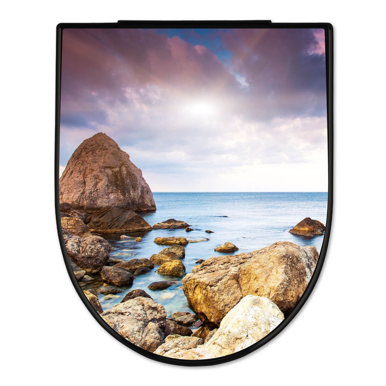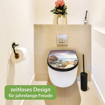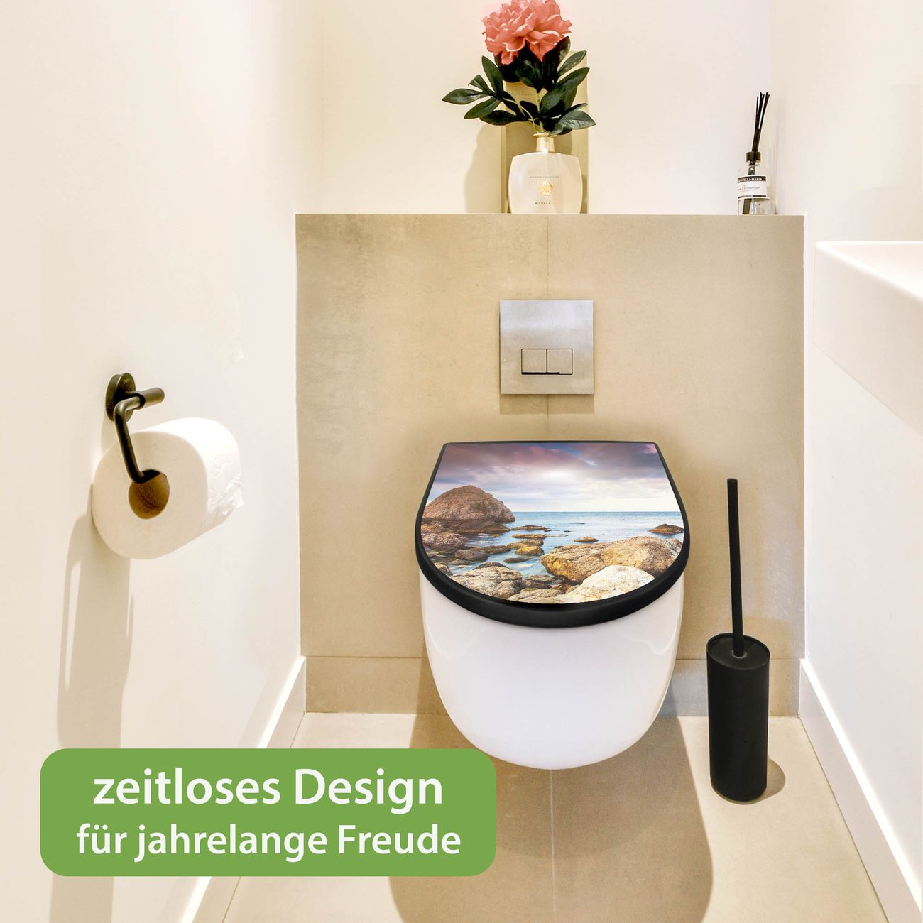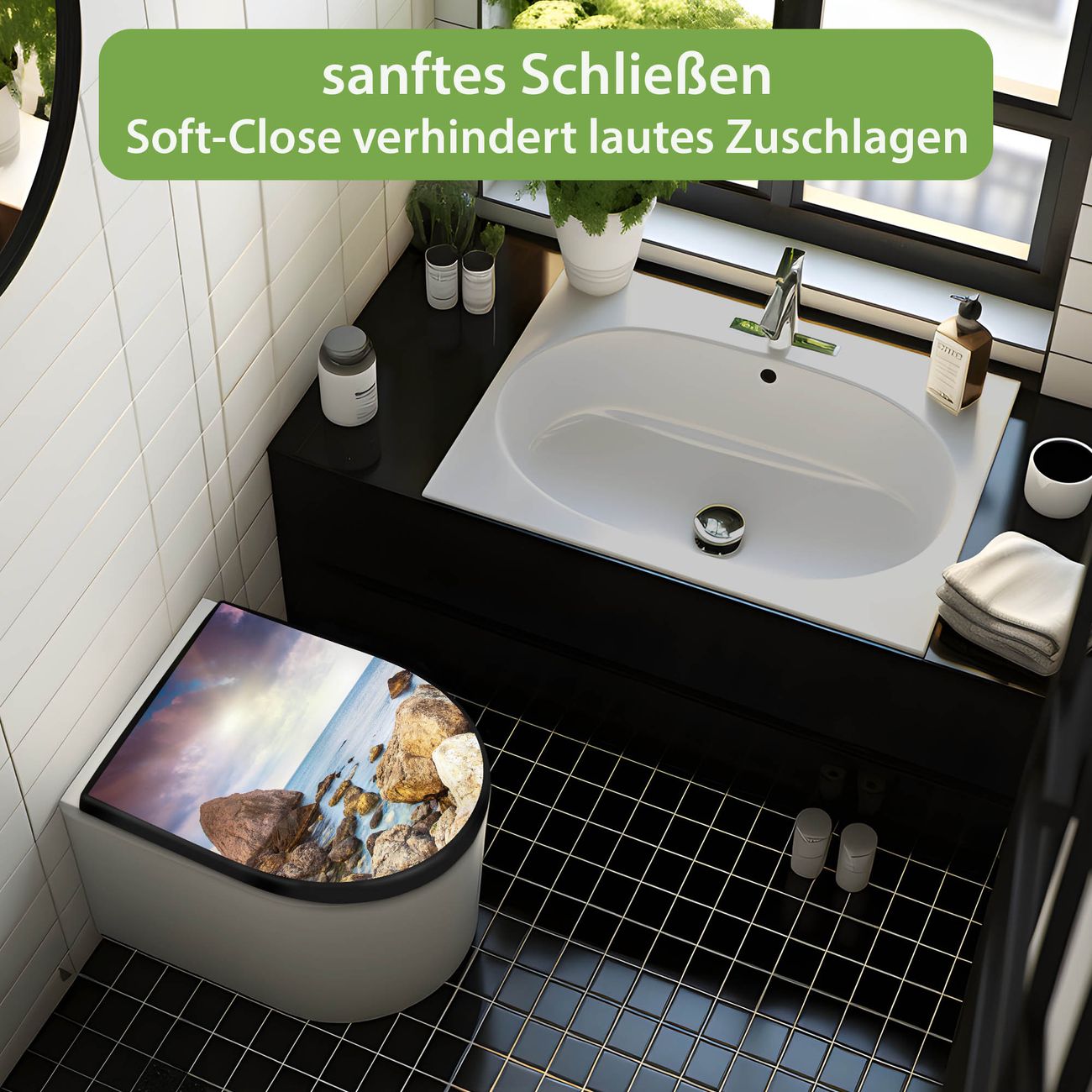 WC Sitz D-Form Schwarz mit Absenkautomatik Motiv Steinbucht