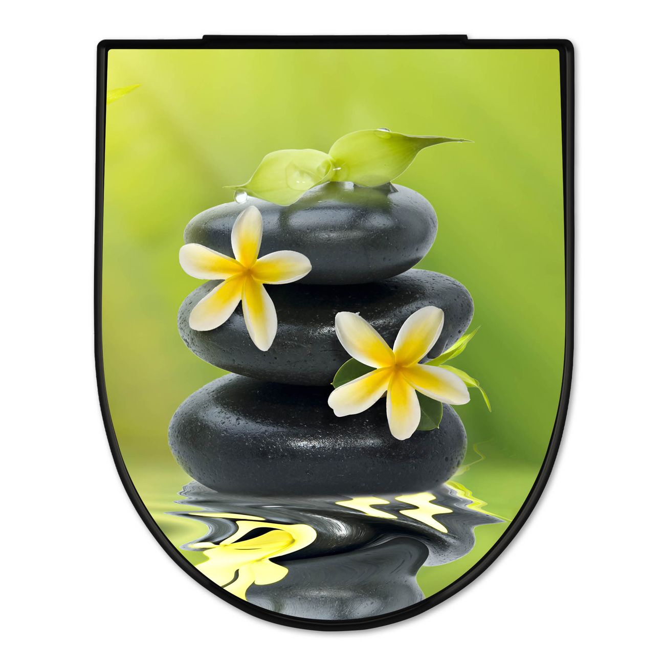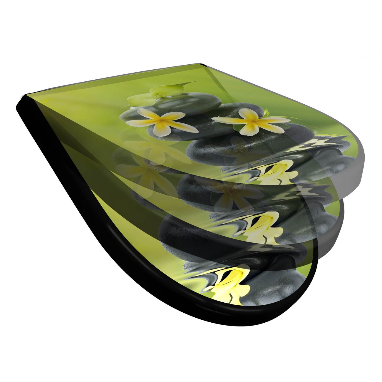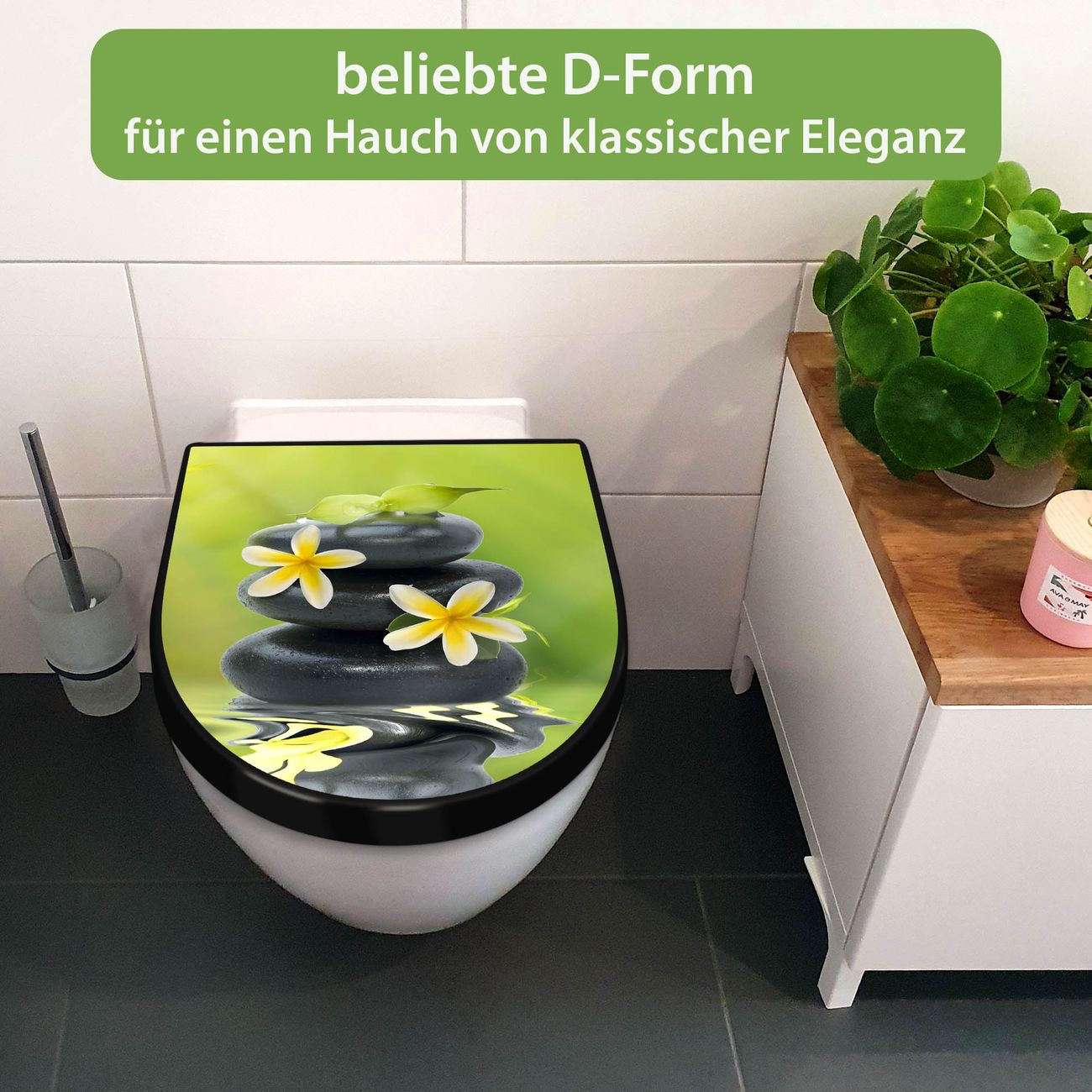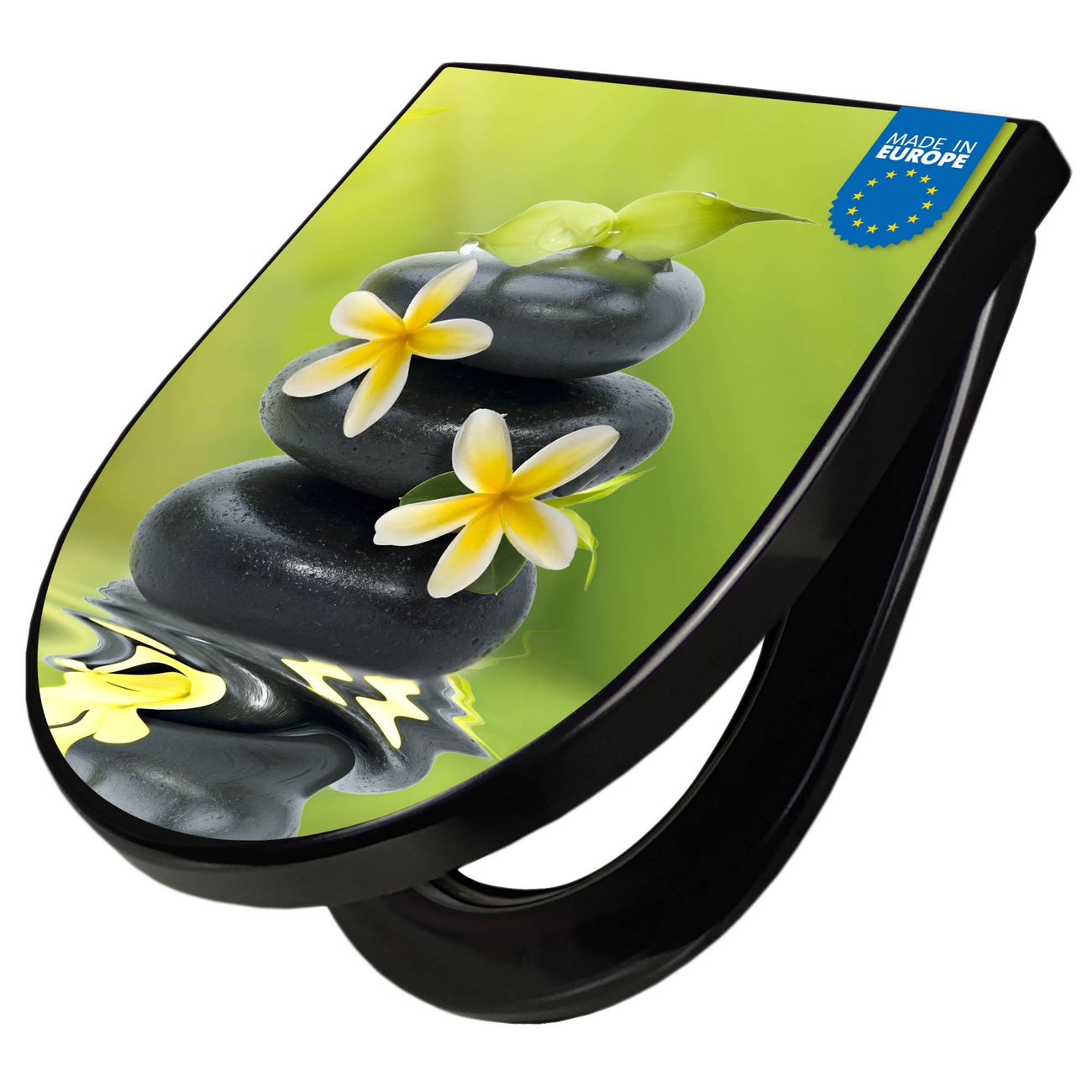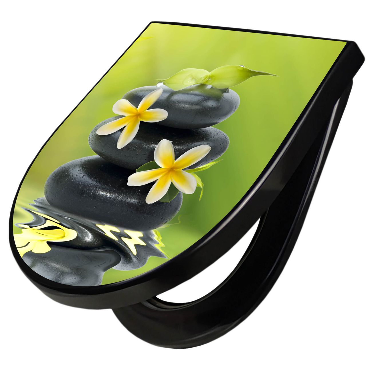 WC Sitz D-Form Schwarz mit Absenkautomatik Motiv Steine & Relax 4