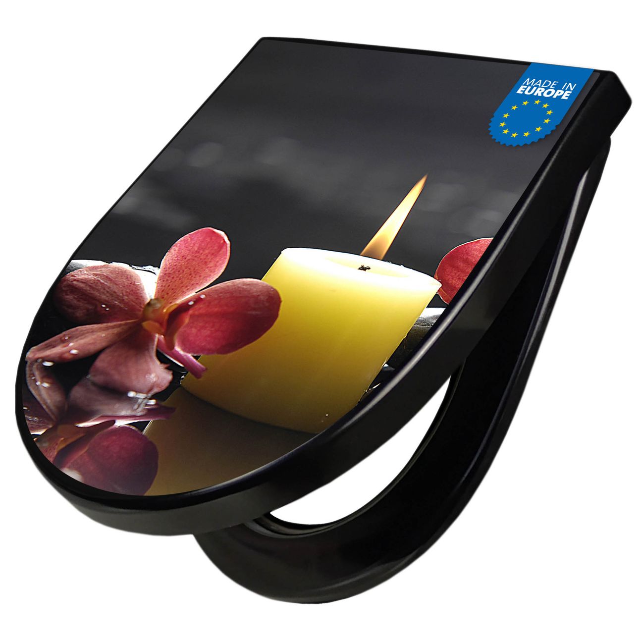 Der WC-Deckel wird in Europa gefertigt und im Herzen von Sachsen für Sie mit dem gewünschten Motiv veredelt. Die hierfür verwendete Folie ist lösungsmittelfrei und schutzlaminiert.