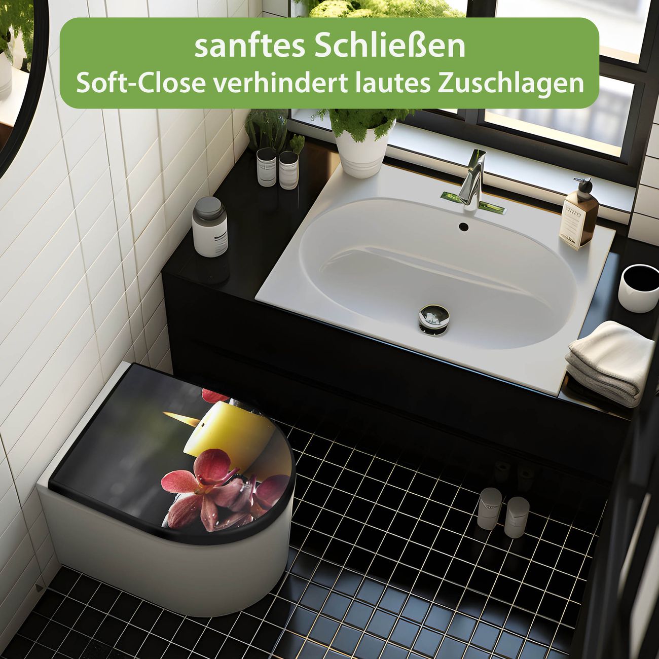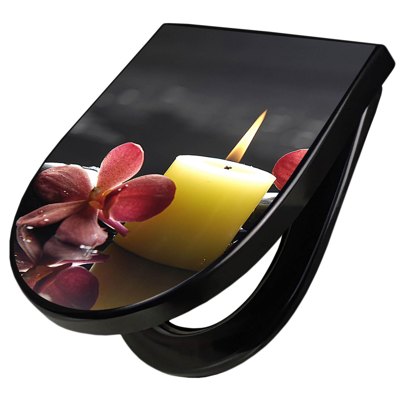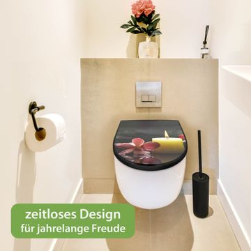WC Sitz D-Form Schwarz mit Absenkautomatik Motiv Steine & Relax 5