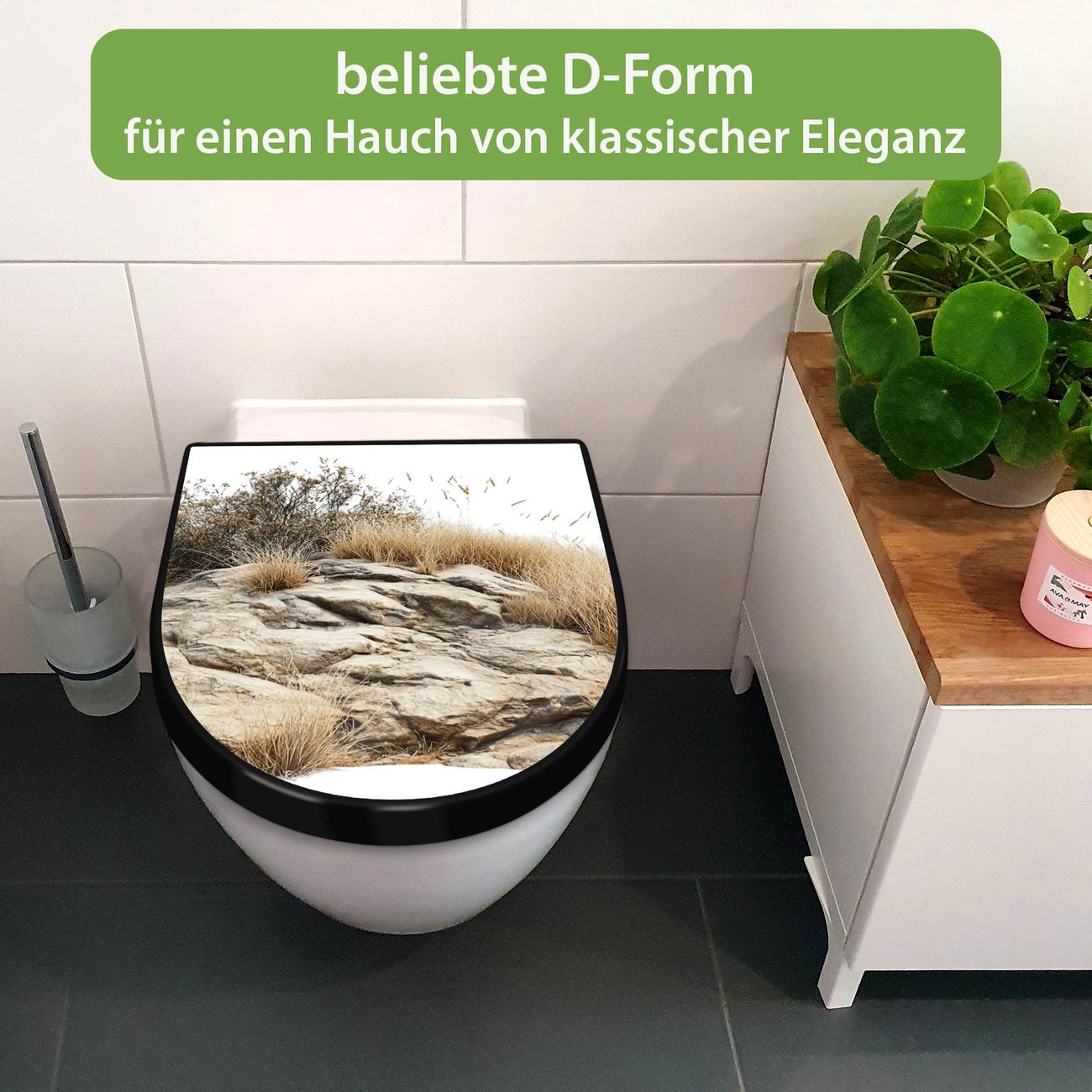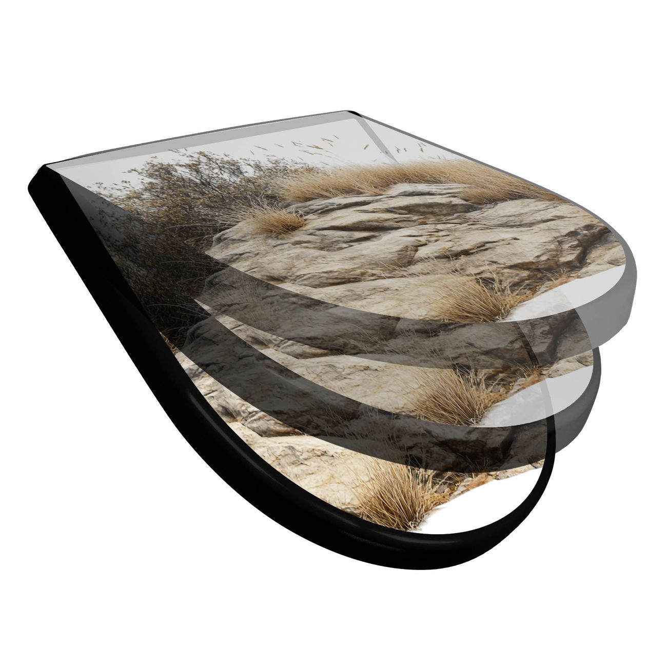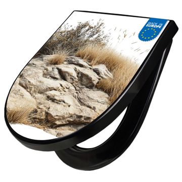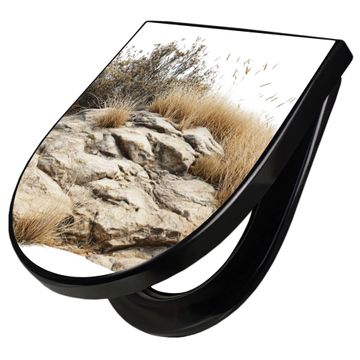 WC Sitz D-Form Schwarz mit Absenkautomatik Motiv Steinige Landschaft